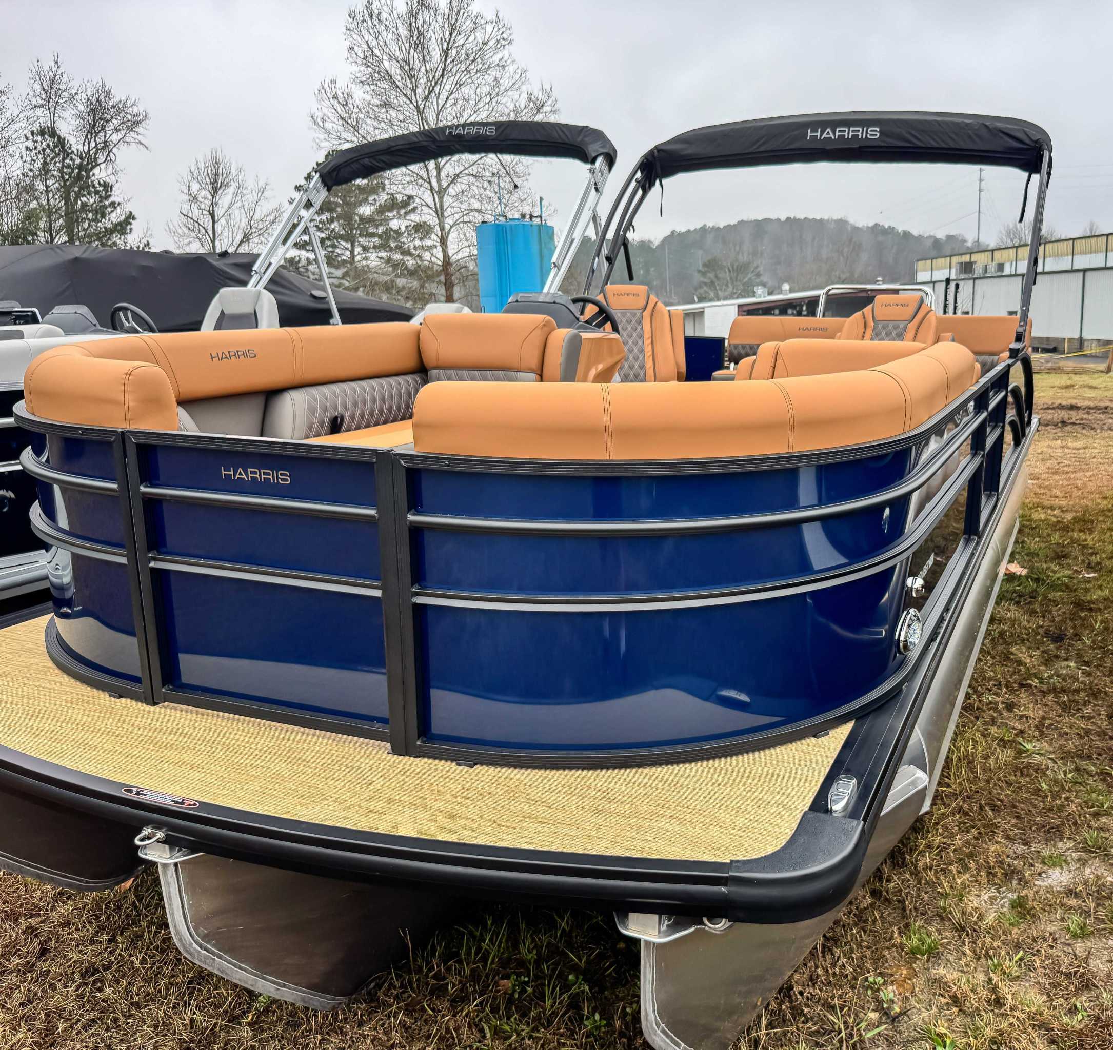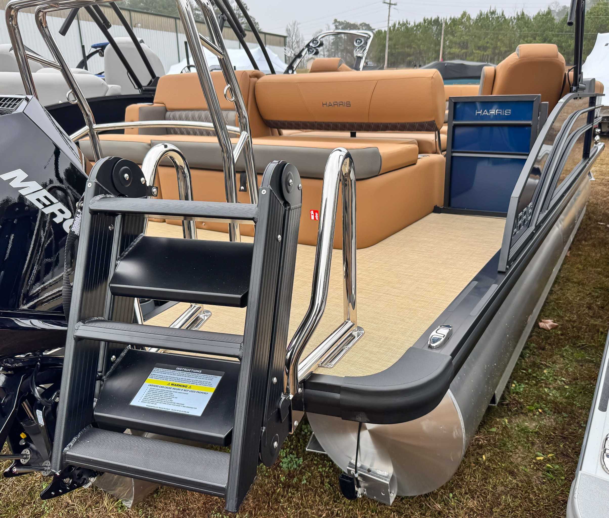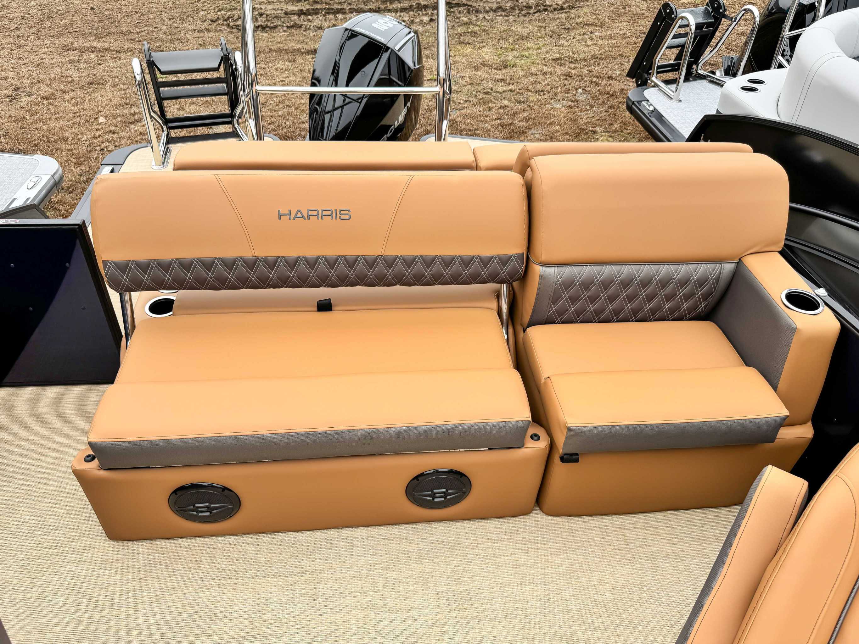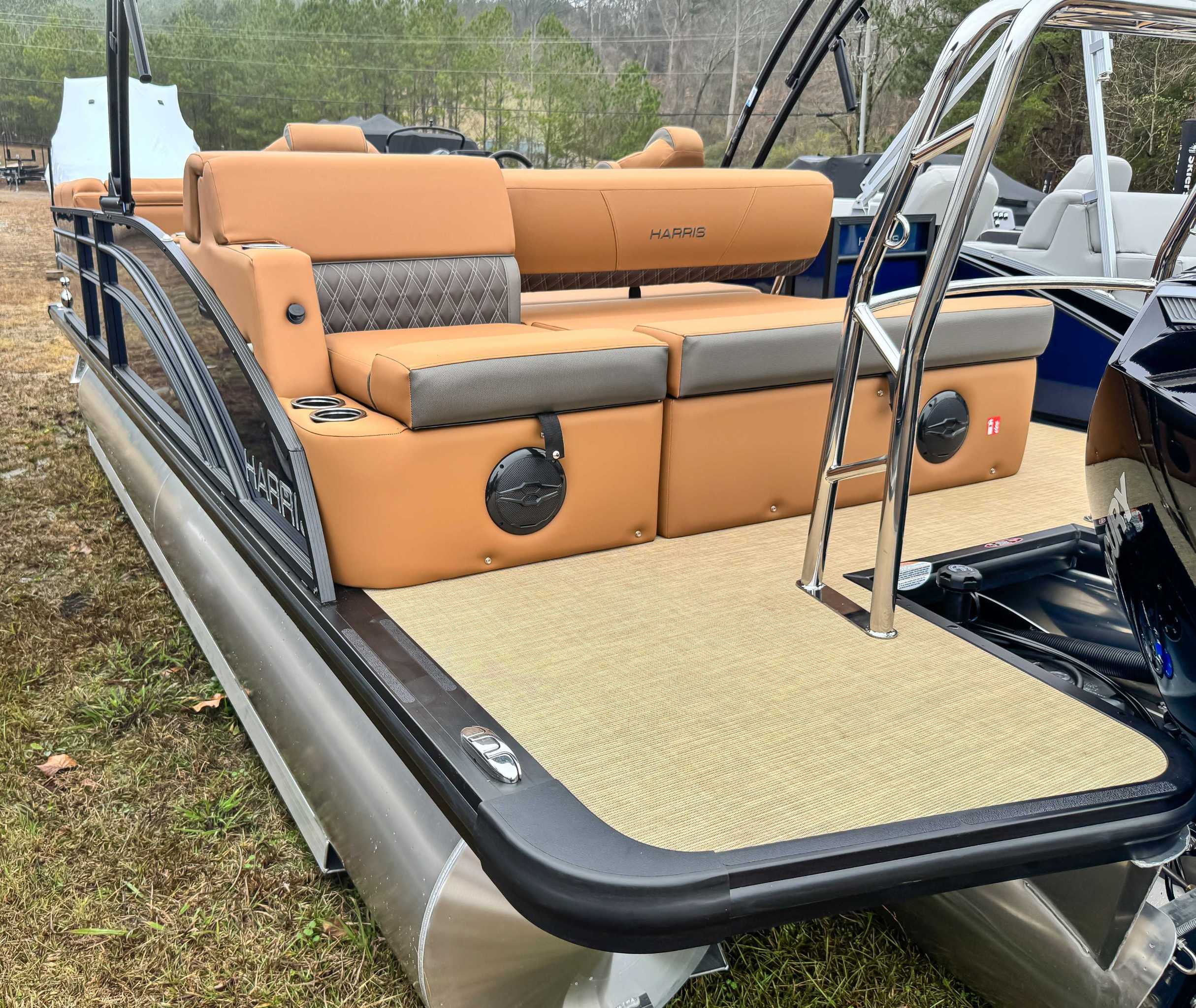 The 2026 Harris Cruiser pontoon is ideal for families and adventurers seeking a blend of performance, comfort, and durability. Key features include the signature RPM Technology chassis for a smooth, stable ride and better fuel efficiency, plush soft-touch seating, and versatile layouts like the single rear-facing lounger (SL) or dual helm (DH). Amenities such as a power Bimini top, integrated swim ladder, and available entertainment upgrades (Wetsounds audio, RGB lighting) elevate the experience. With rob
