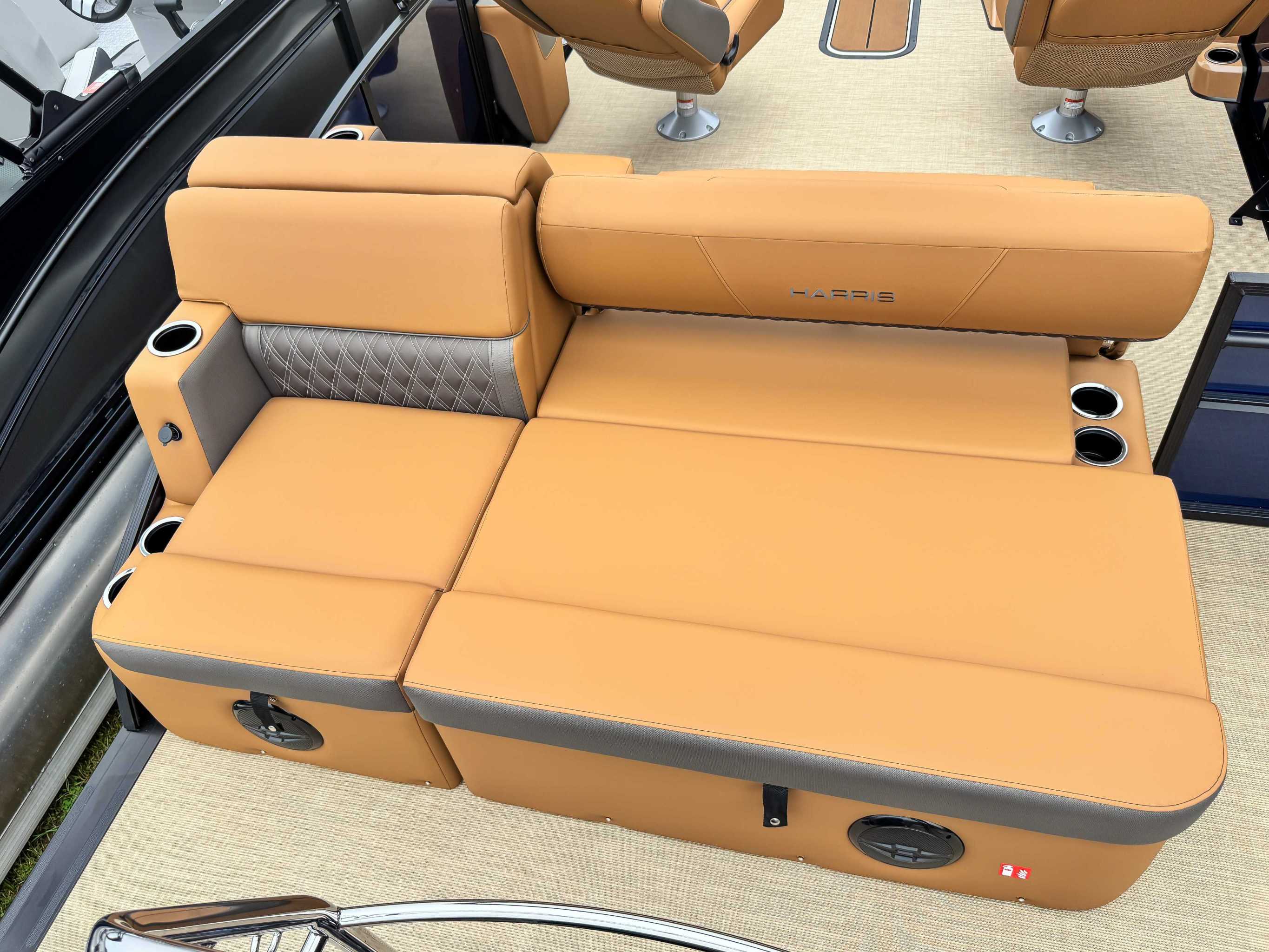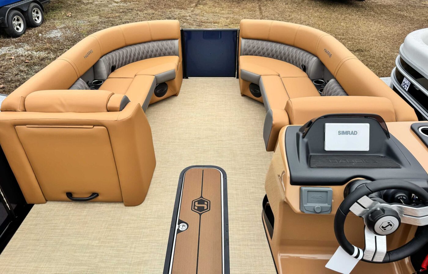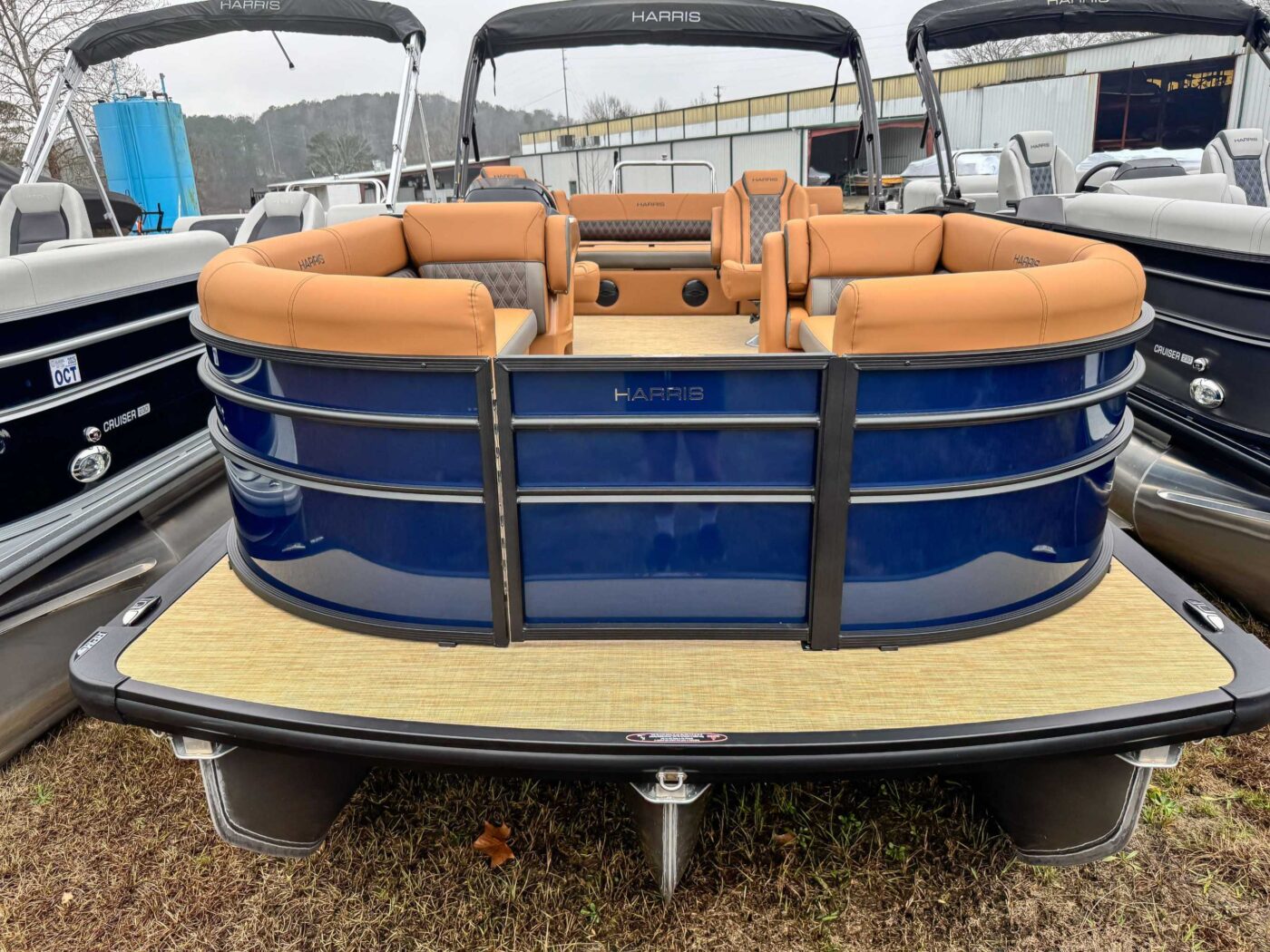 The 2026 Harris Cruiser pontoon is ideal for families and adventurers seeking a blend of performance, comfort, and durability. Key features include the signature RPM Technology chassis for a smooth, stable ride and better fuel efficiency, plush soft-touch seating, and versatile layouts like the single rear-facing lounger (SL) or dual helm (DH). Amenities such as a power Bimini top, integrated swim ladder, and available entertainment upgrades (Wetsounds audio, RGB lighting) elevate the experience. With rob