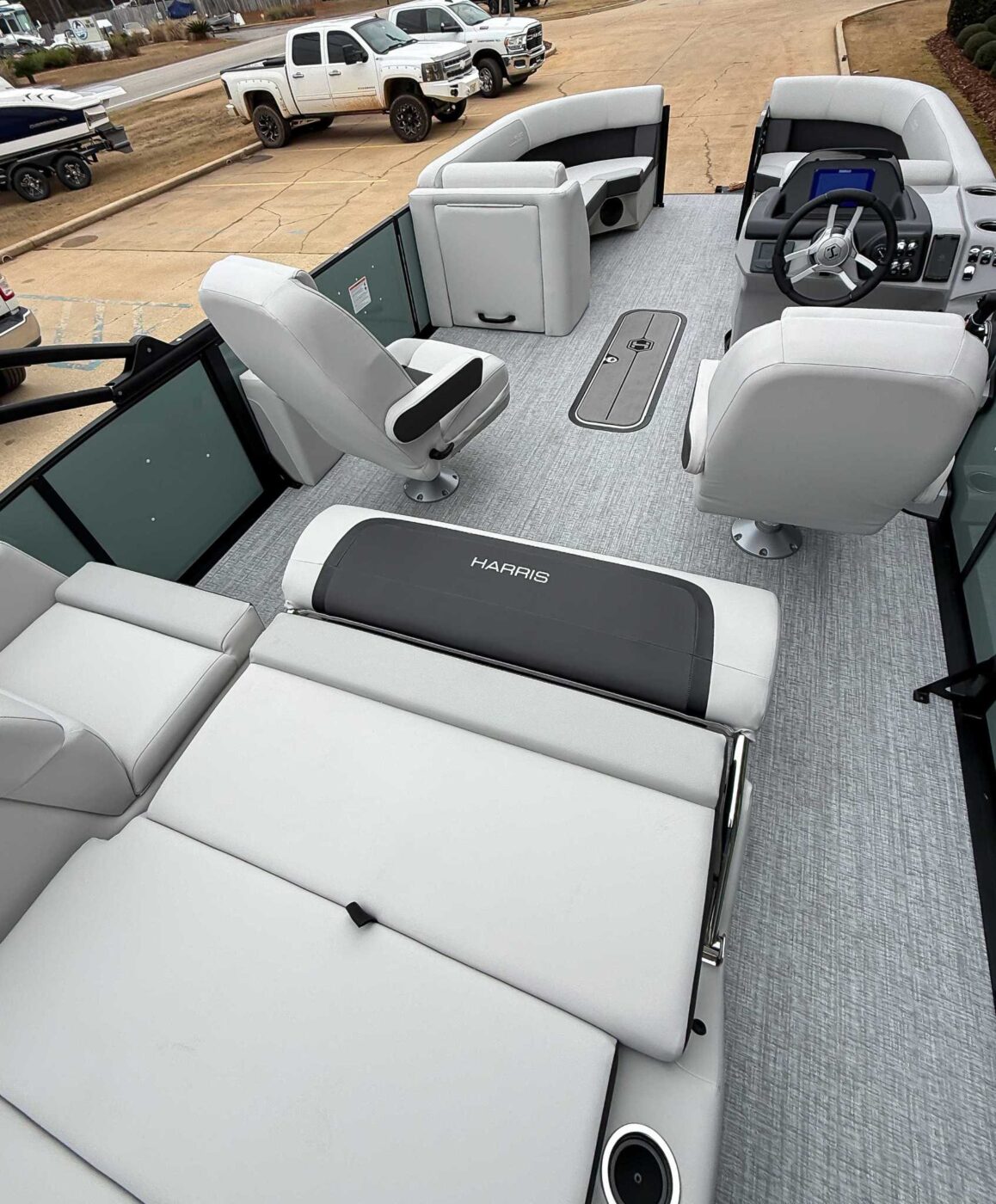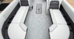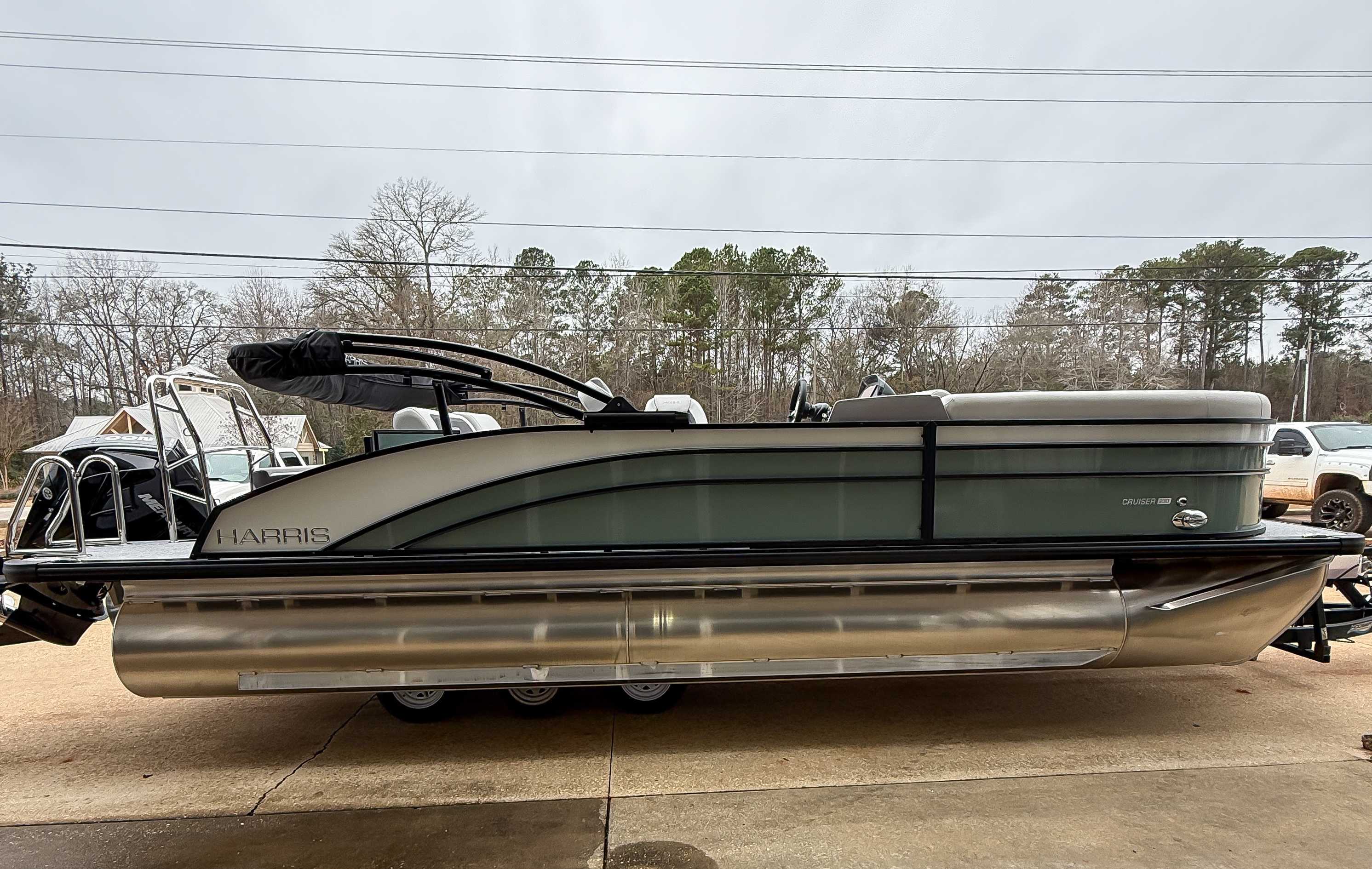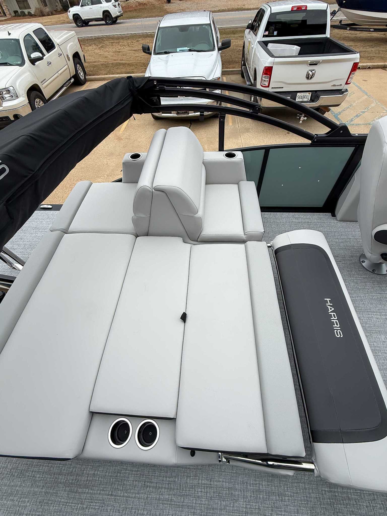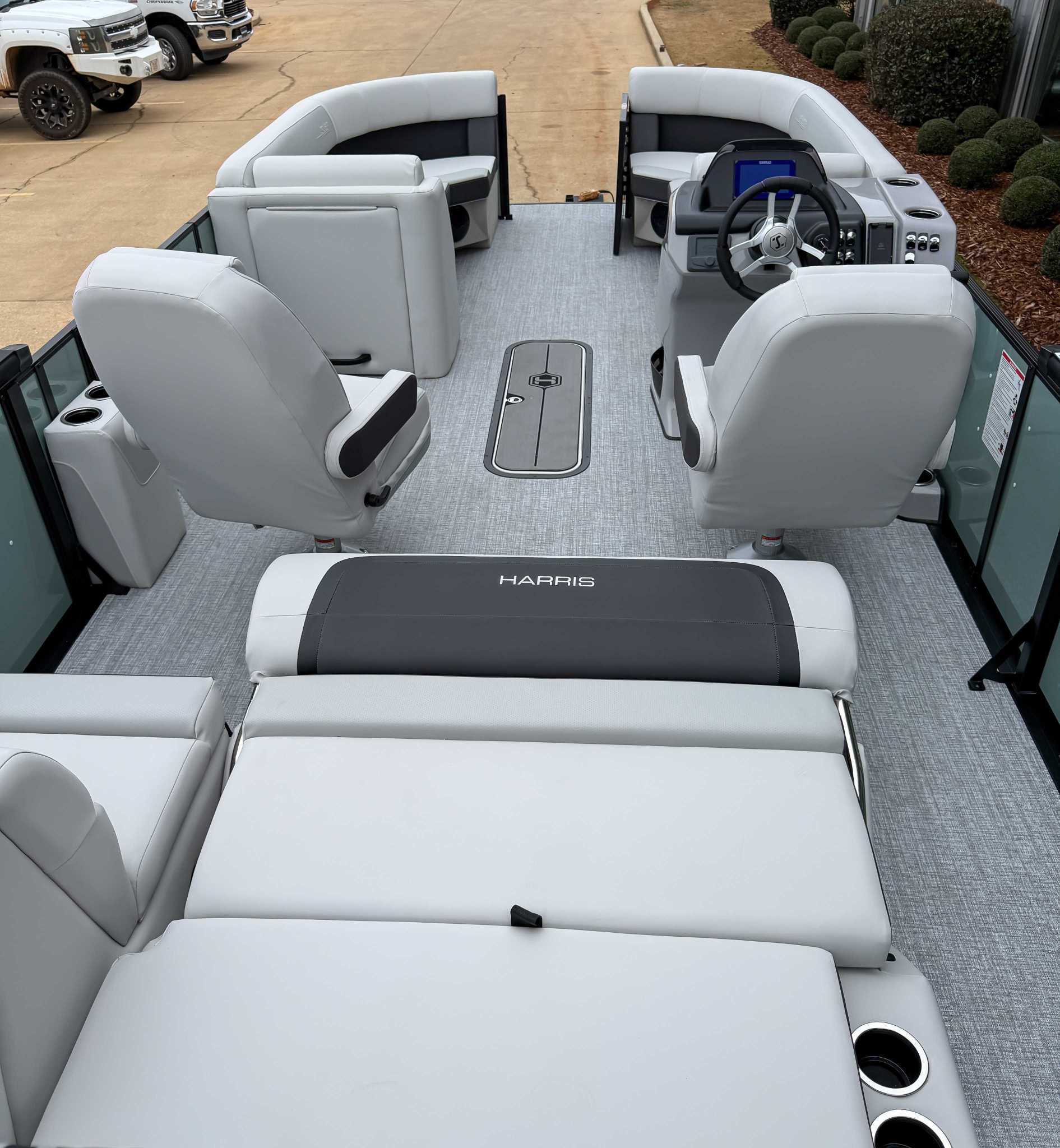 The 2026 Harris Cruiser pontoon is ideal for families and adventurers seeking a blend of performance, comfort, and durability. Key features include the signature RPM Technology chassis for a smooth, stable ride and better fuel efficiency, plush soft-touch seating, and versatile layouts like the single rear-facing lounger (SL) or dual helm (DH). Amenities such as a power Bimini top, integrated swim ladder, and available entertainment upgrades (Wetsounds audio, RGB lighting) elevate the experience. With rob
