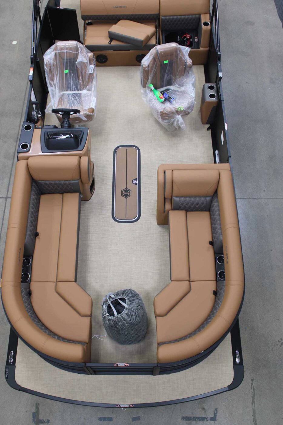 The 2026 Harris Cruiser pontoon is ideal for families and adventurers seeking a blend of performance, comfort, and durability. Key features include the signature RPM Technology chassis for a smooth, stable ride and better fuel efficiency, plush soft-touch seating, and versatile layouts like the single rear-facing lounger (SL) or dual helm (DH). Amenities such as a power Bimini top, integrated swim ladder, and available entertainment upgrades (Wetsounds audio, RGB lighting) elevate the experience. With rob