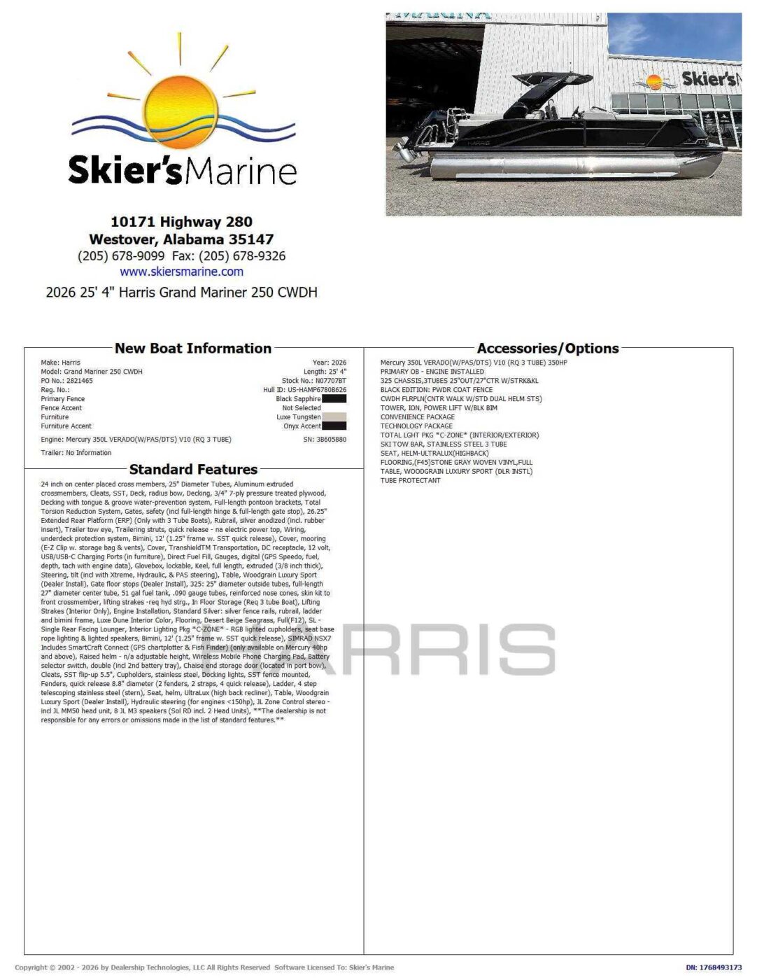 2026 Harris Grand Mariner 250 CWDH N07707BT