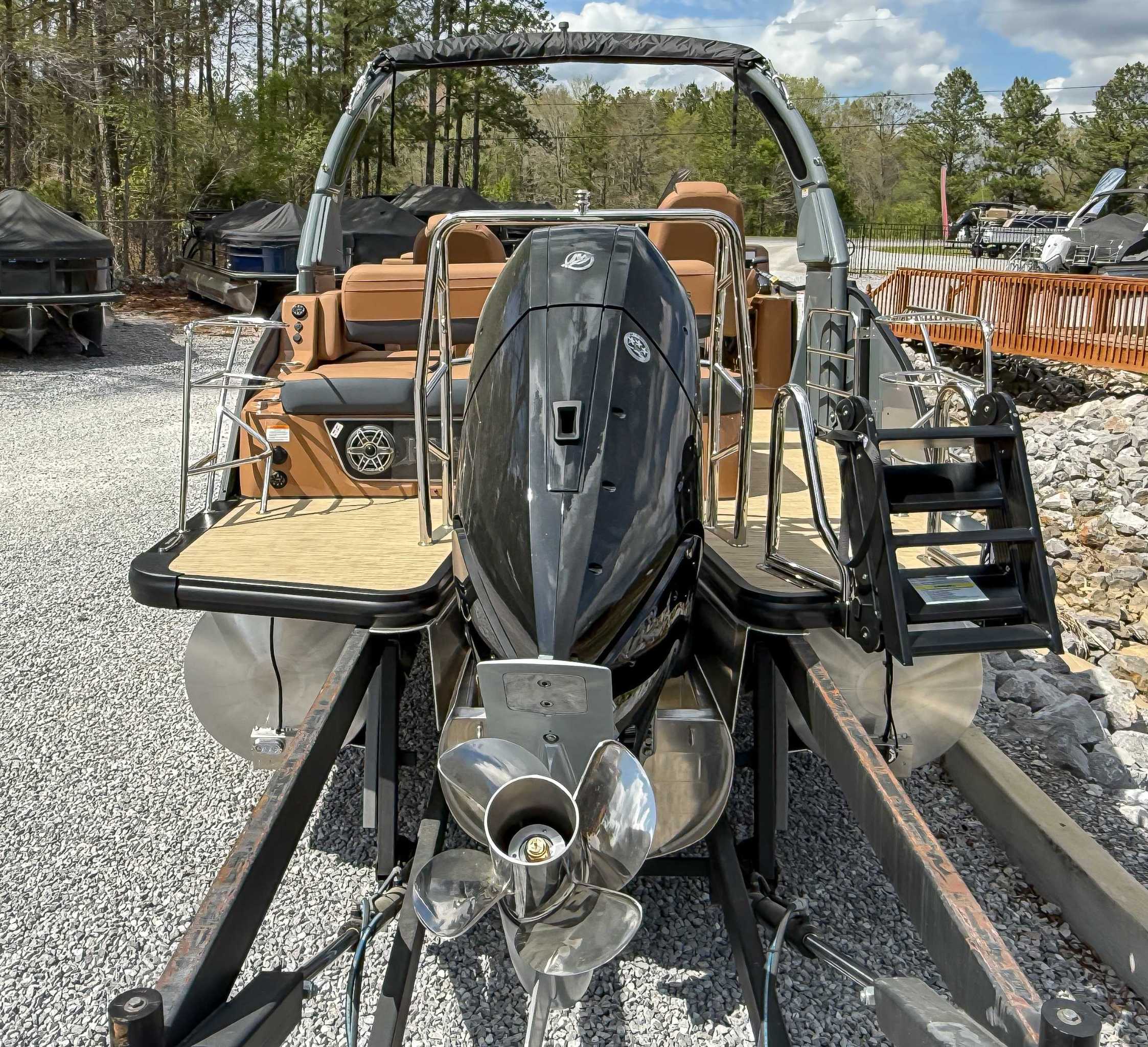 Standard Silver: silver fence rails, rubrail, ladder and bimini frame