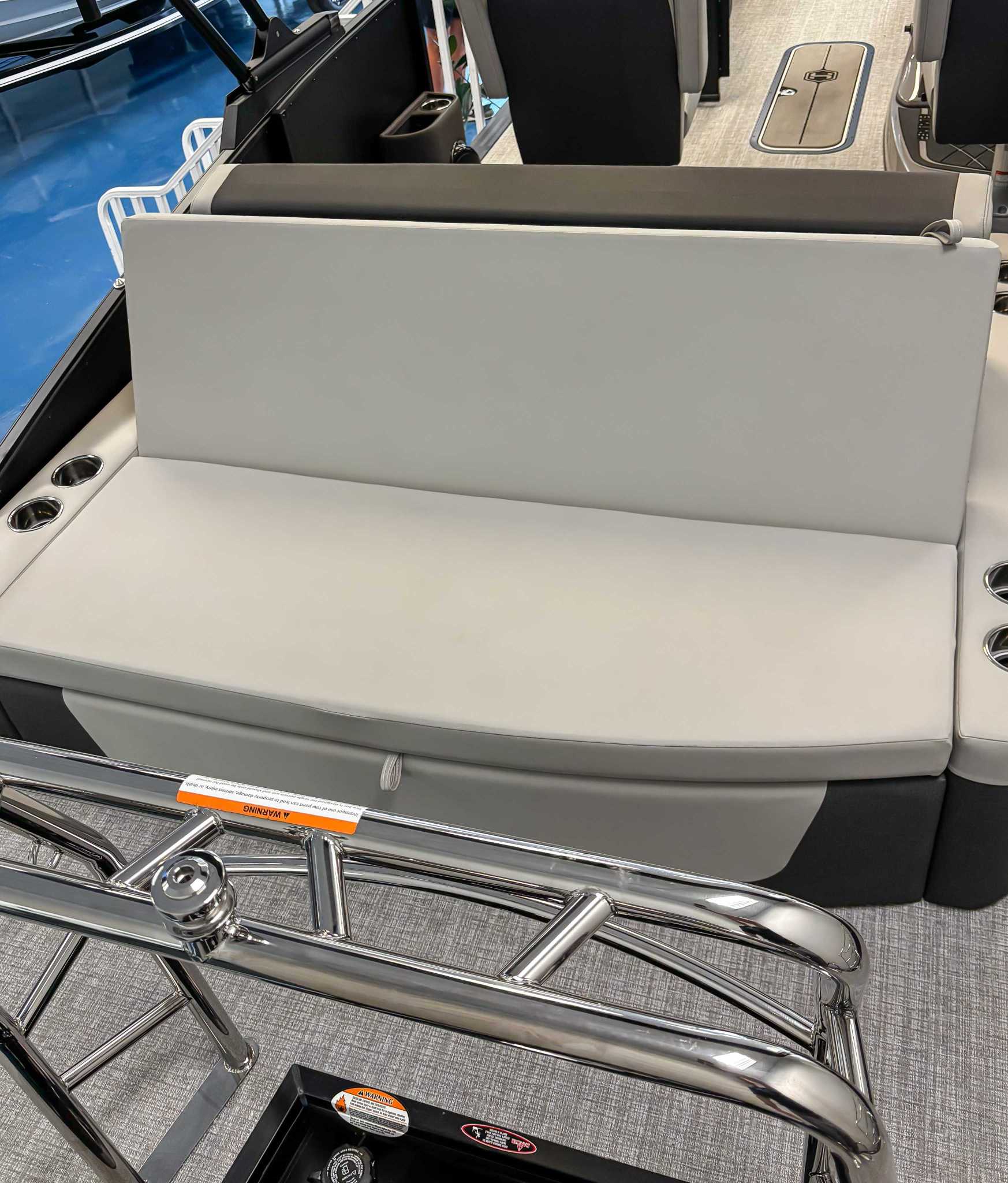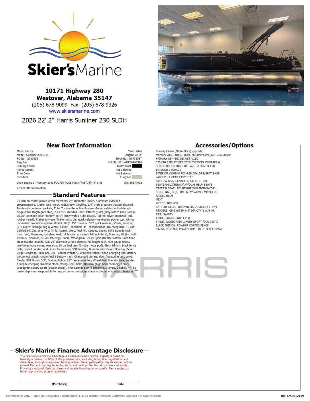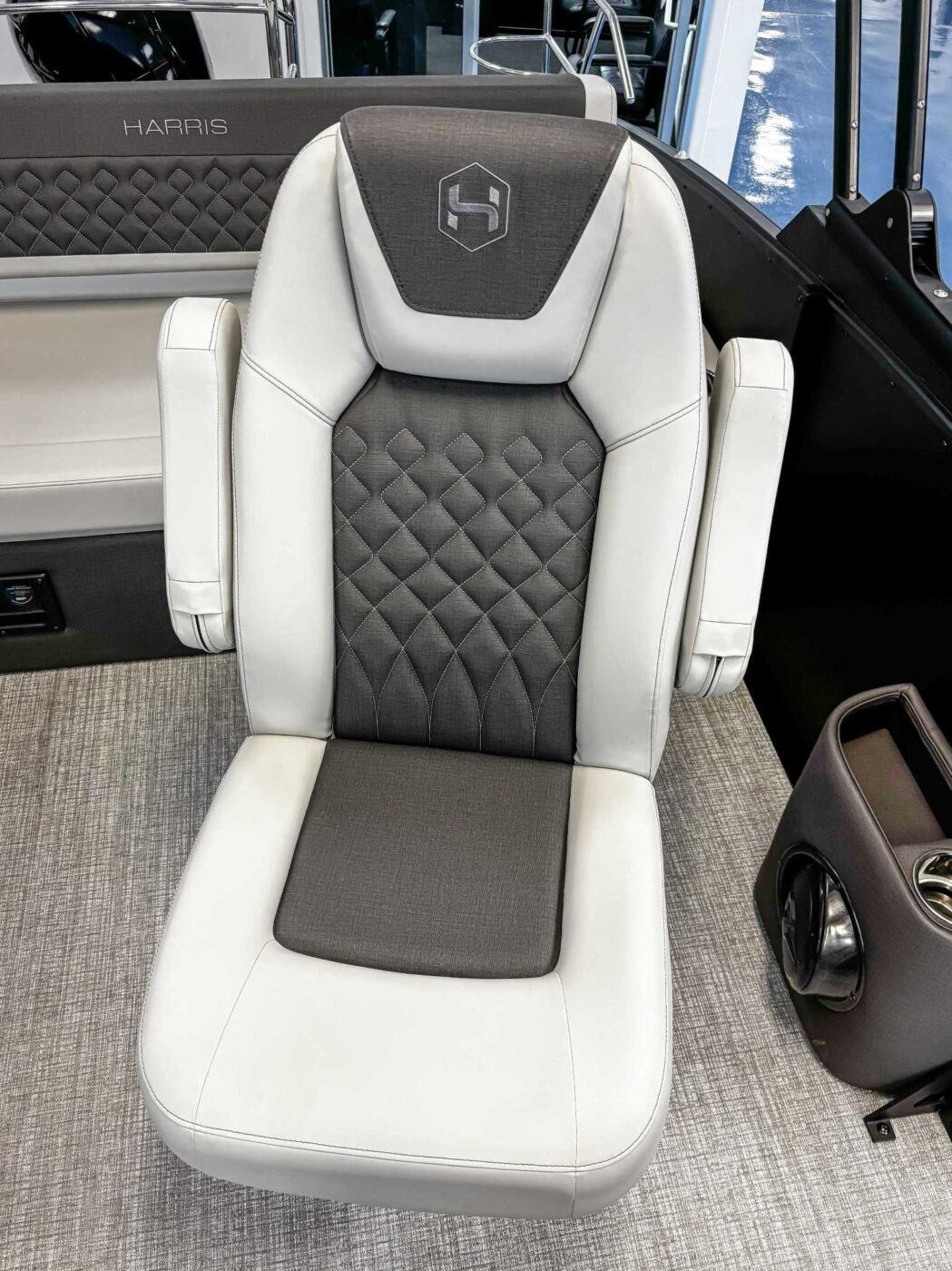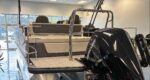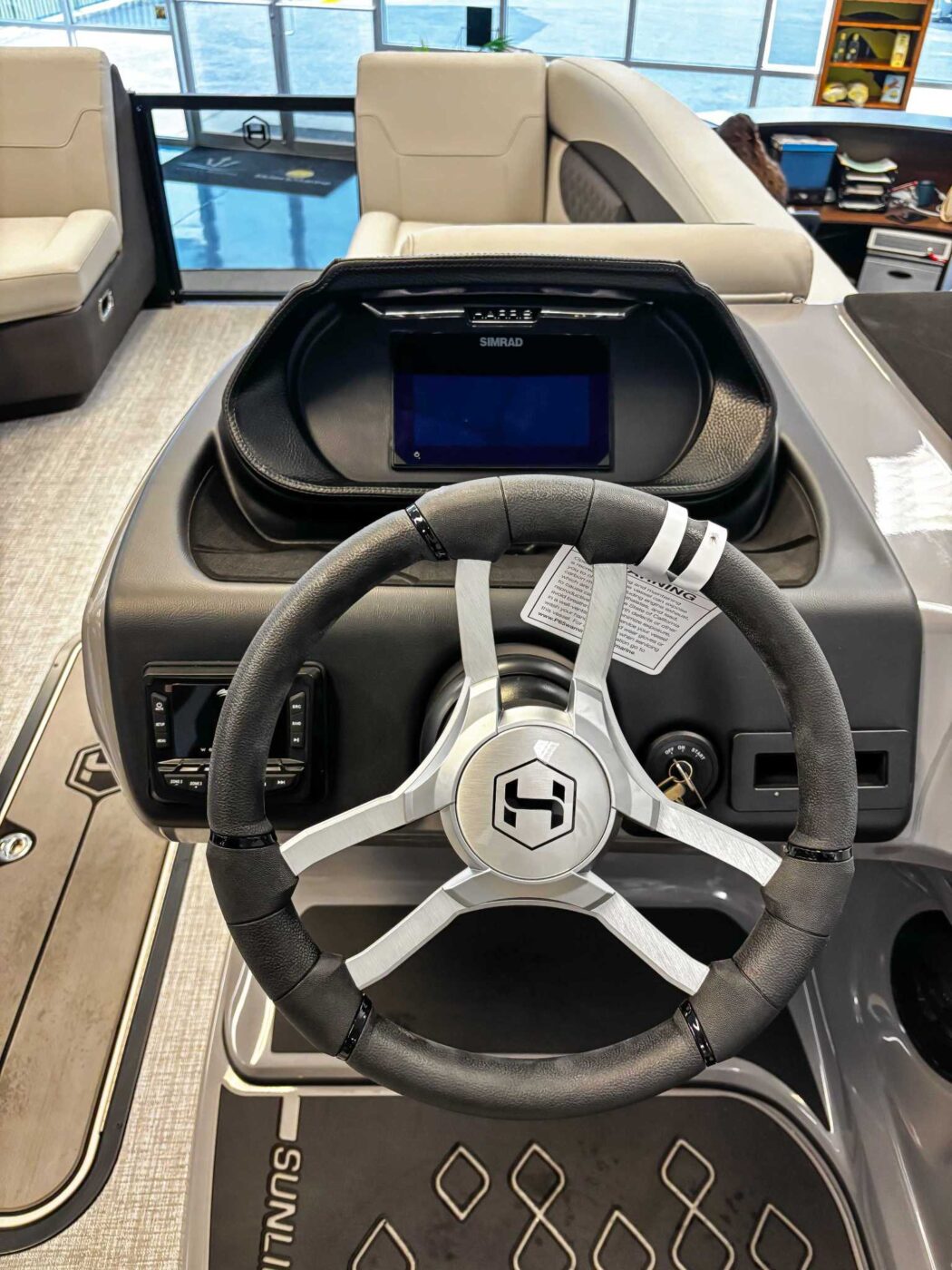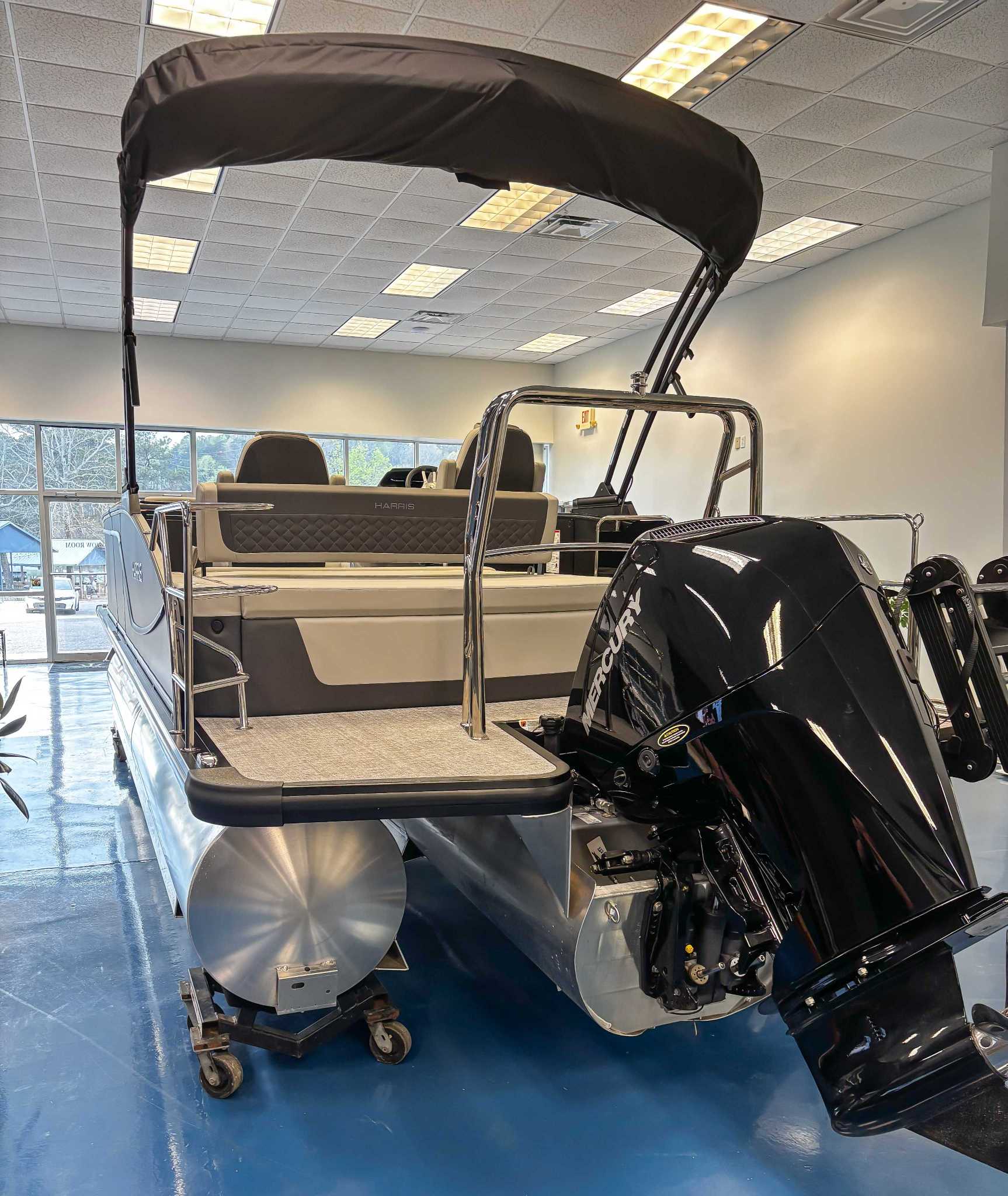 The 2026 Harris Sunliner 230 pontoon boat is an excellent choice due to its superior blend of versatility, comfort, and performance. It features innovative design elements like the proprietary RPM Chassis for a smoother, more stable ride and enhanced fuel efficiency. The boat boasts a completely redesigned interior with plush, durable, pillow-top vinyl upholstery and flexible seating, including multi-position loungers, to accommodate various activities from watersports to relaxed cruising.