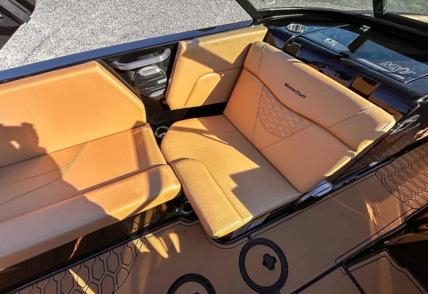 The 2026 MasterCraft NXT22 delivers premium performance and versatile fun in a perfectly sized 22-foot package. It features the SurfStar system for customizable wakes, a powerful Ilmor 5.3L GDI engine, and seating for up to 14 people. The interior boasts new styling, CoolFeel vinyl, a 7-inch touchscreen helm with wireless charging, and an all-new SoundStage audio system for an effortless and unforgettable day on the water.