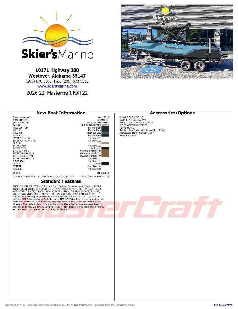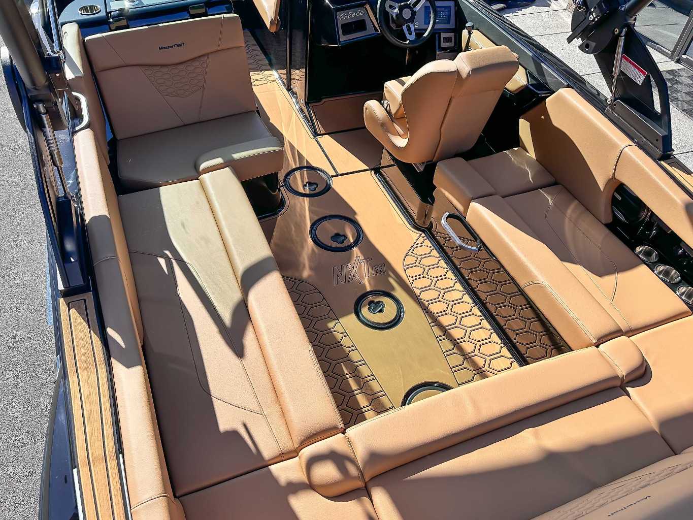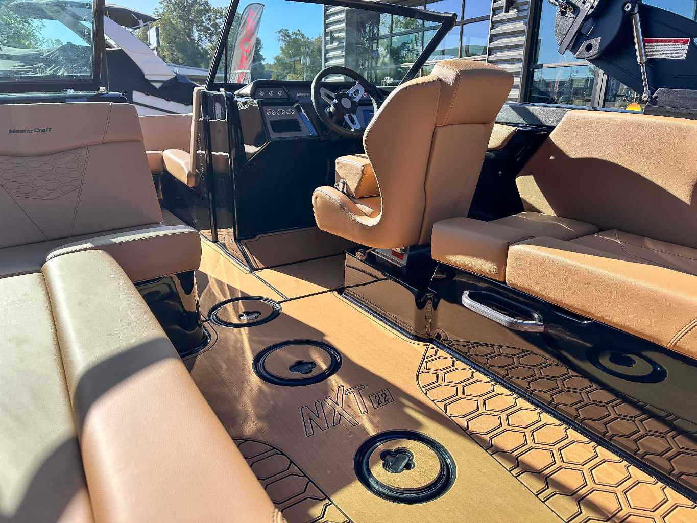 The 2026 MasterCraft NXT22 delivers premium performance and versatile fun in a perfectly sized 22-foot package. It features the SurfStar system for customizable wakes, a powerful Ilmor 5.3L GDI engine, and seating for up to 14 people. The interior boasts new styling, CoolFeel vinyl, a 7-inch touchscreen helm with wireless charging, and an all-new SoundStage audio system for an effortless and unforgettable day on the water.