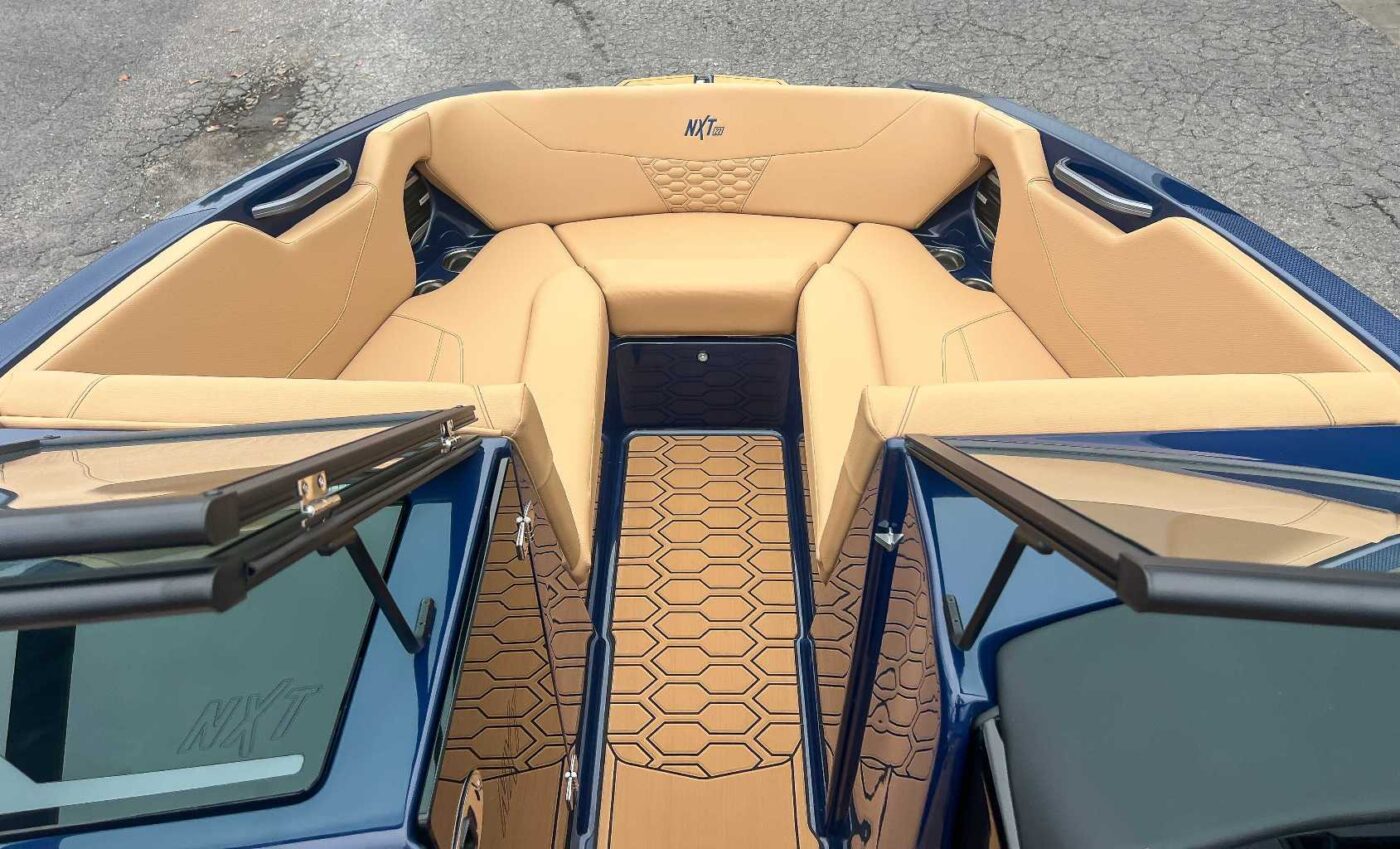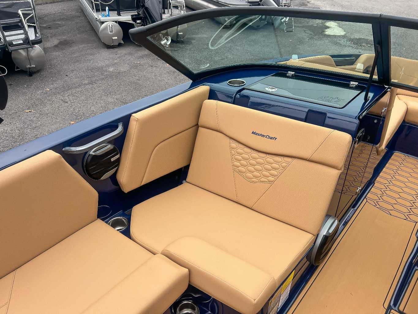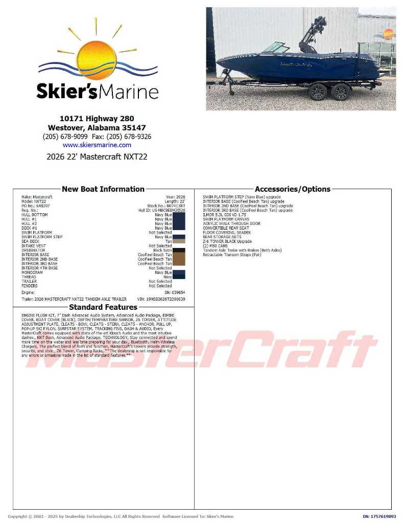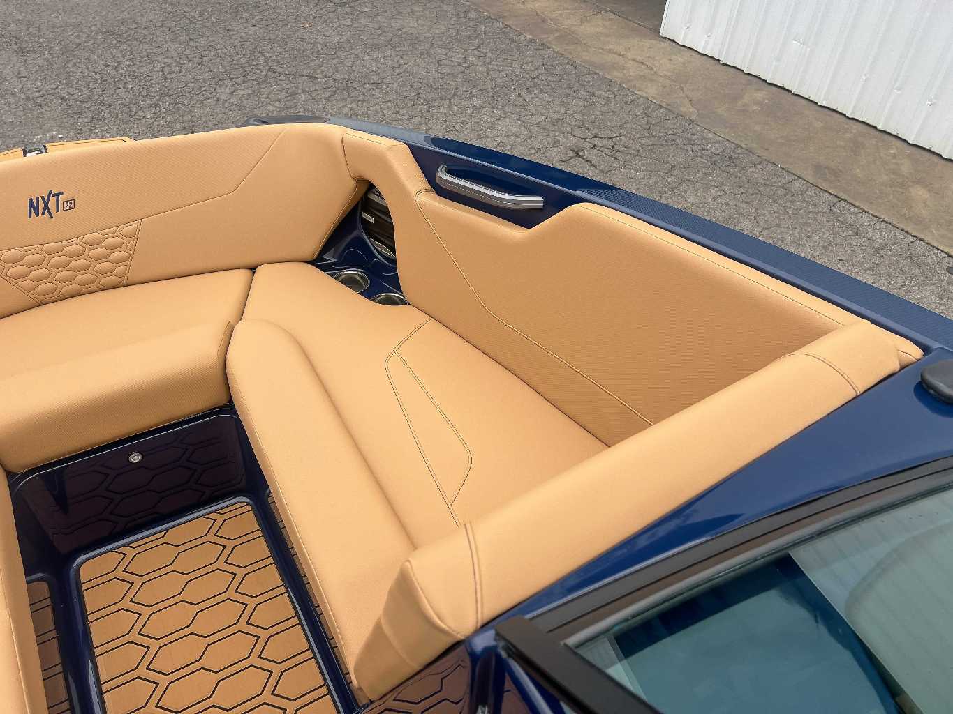 The 2026 MasterCraft NXT22 delivers premium performance and versatile fun in a perfectly sized 22-foot package. It features the SurfStar system for customizable wakes, a powerful Ilmor 5.3L GDI engine, and seating for up to 14 people. The interior boasts new styling, CoolFeel vinyl, a 7-inch touchscreen helm with wireless charging, and an all-new SoundStage audio system for an effortless and unforgettable day on the water.