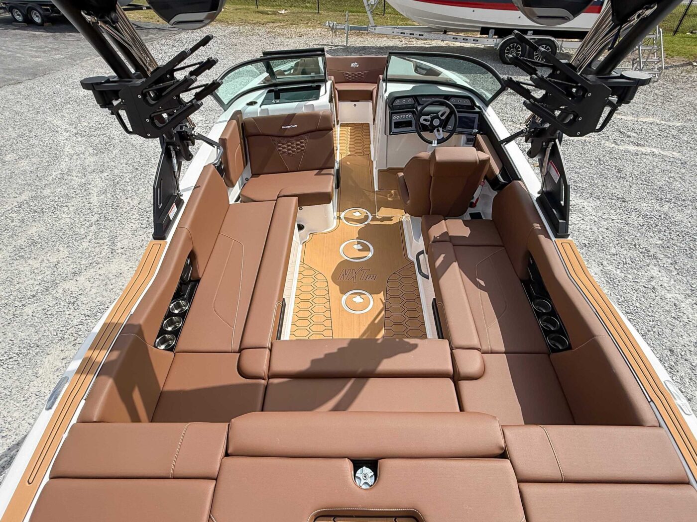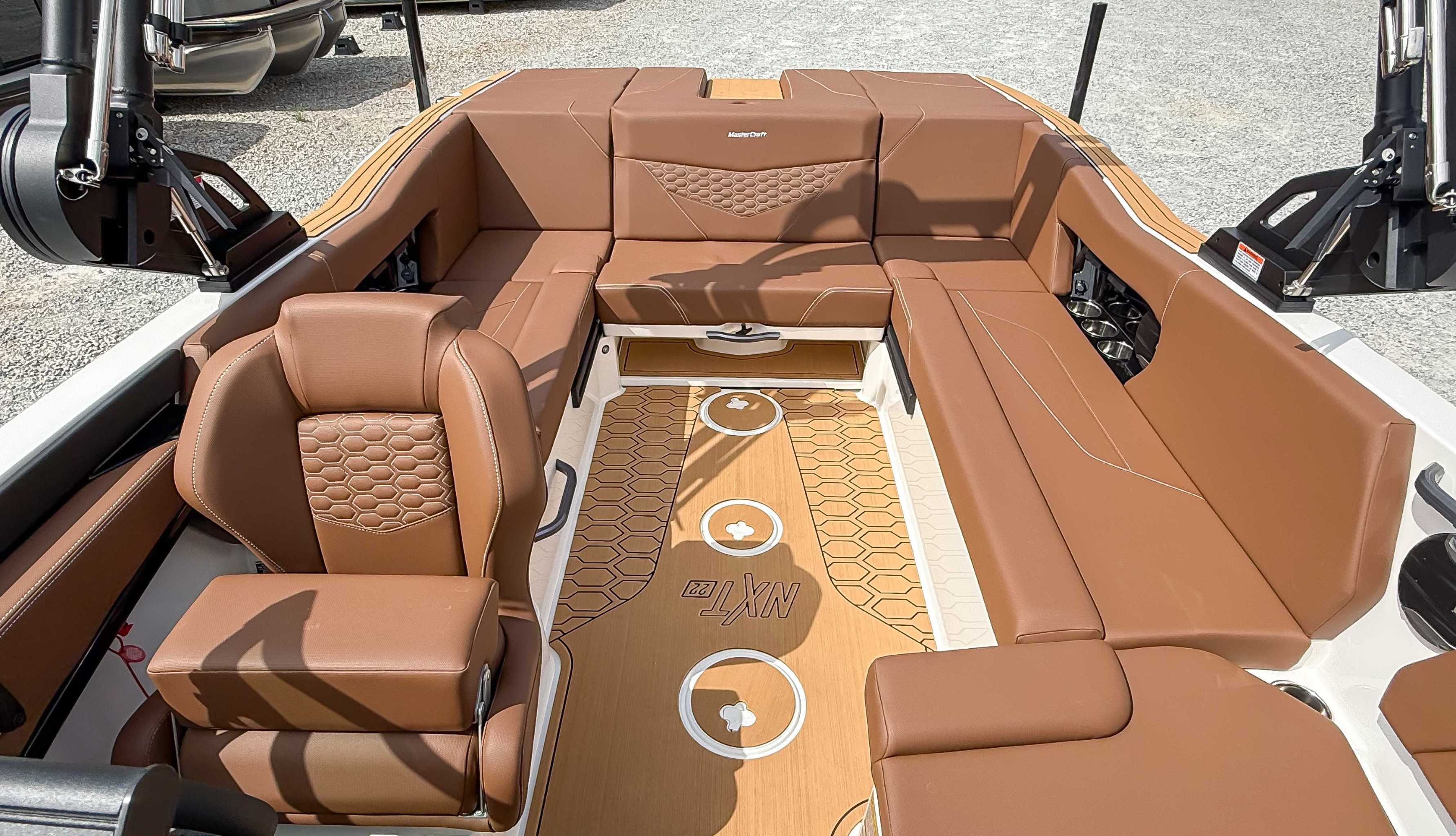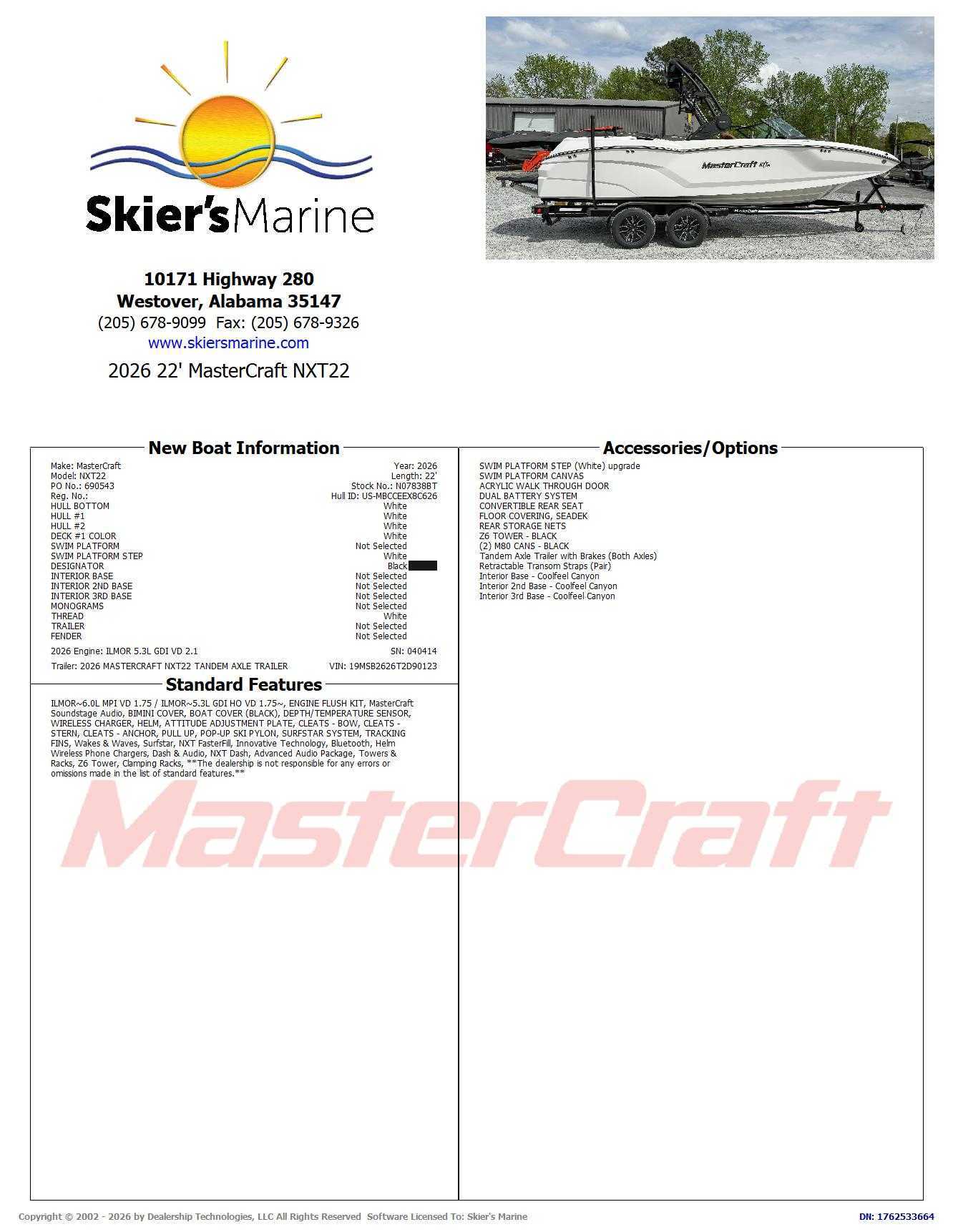 The 2026 MasterCraft NXT22 delivers premium performance and versatile fun in a perfectly sized 22-foot package. It features the SurfStar system for customizable wakes, a powerful Ilmor 5.3L GDI engine, and seating for up to 14 people. The interior boasts new styling, CoolFeel vinyl, a 7-inch touchscreen helm with wireless charging, and an all-new SoundStage audio system for an effortless and unforgettable day on the water.