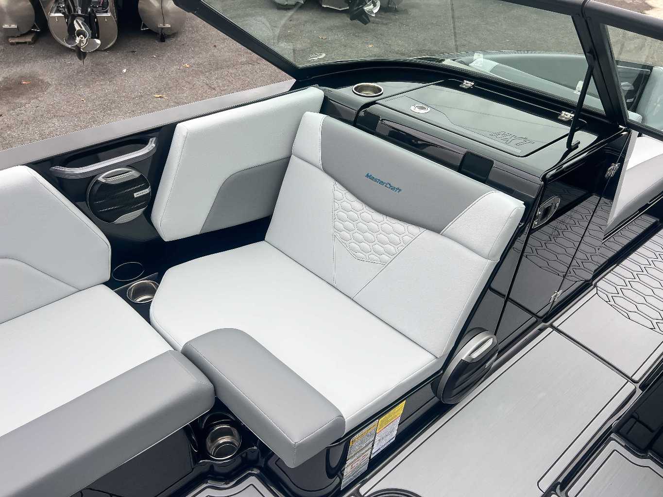 The 2026 MasterCraft NXT23 is a 23-foot wake boat designed for families and riders who want a blend of performance, comfort, and value. It comes standard with the SurfStar system for customizable wakes and waves, a 7-inch touchscreen dash, and a seating capacity for up to 16 people.