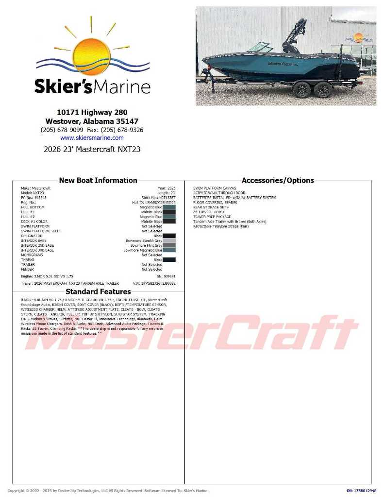 Skier's Marine is an award-winning ski boat, pontoon boat, and runabout sport boat dealer for brands like MasterCraft, Supra, Moomba, Chaparral, Harris, Premier, and Boston Whaler. We are not responsible for any pricing, options, specifications, or other listing errors on our site. Please contact us to confirm all details.