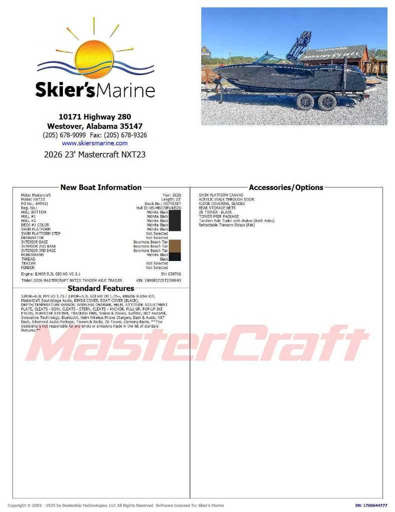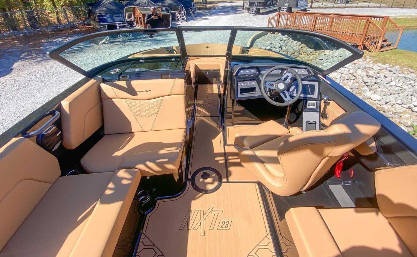 The 2026 MasterCraft NXT23 is a 23-foot wake boat designed for families and riders who want a blend of performance, comfort, and value. It comes standard with the SurfStar system for customizable wakes and waves, a 7-inch touchscreen dash, and a seating capacity for up to 16 people.