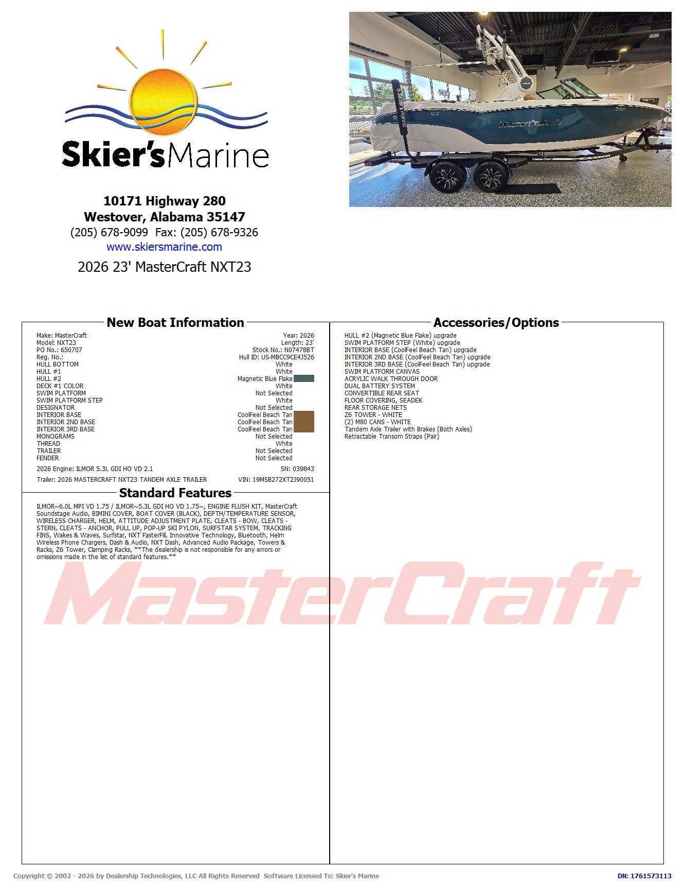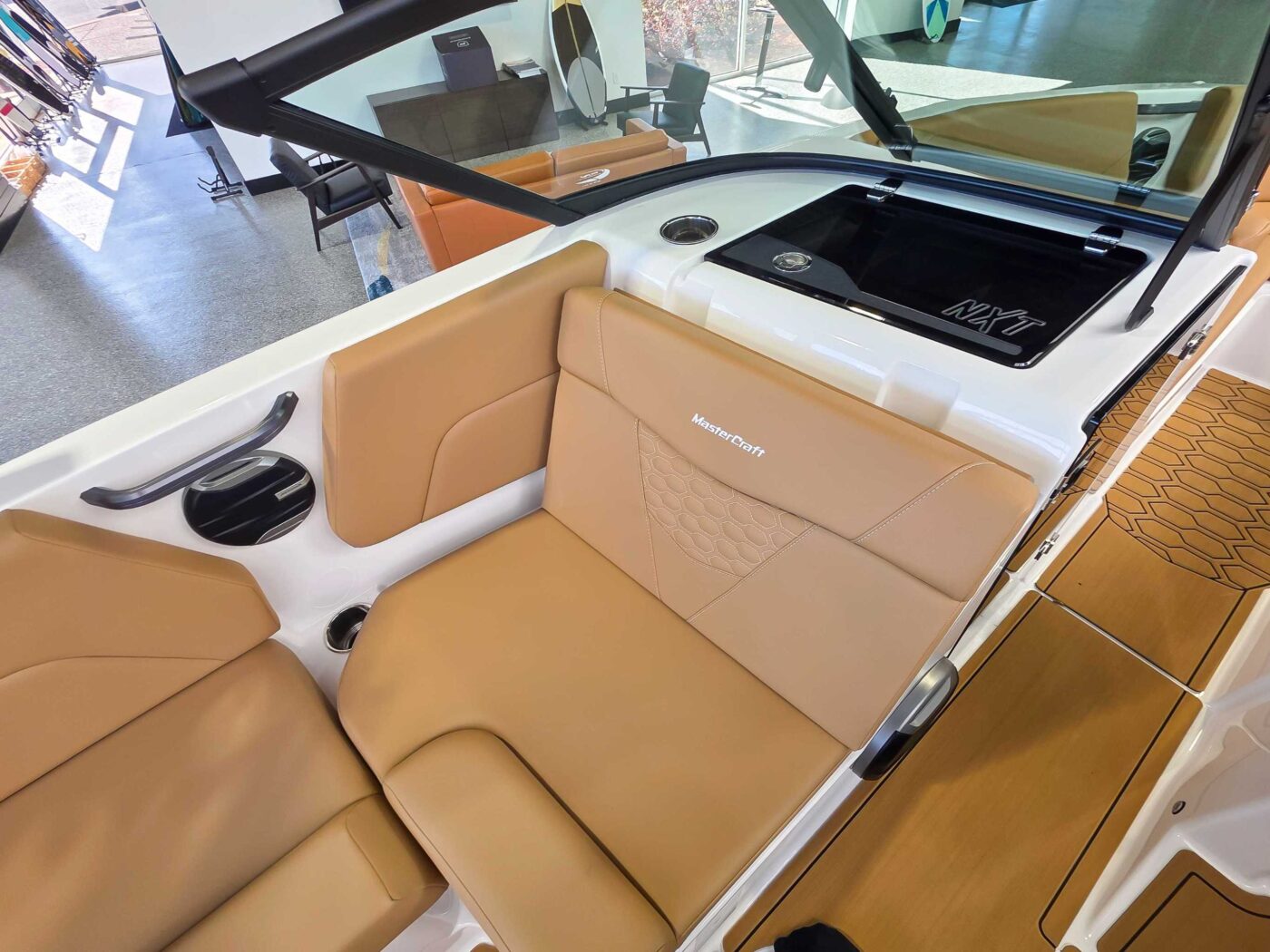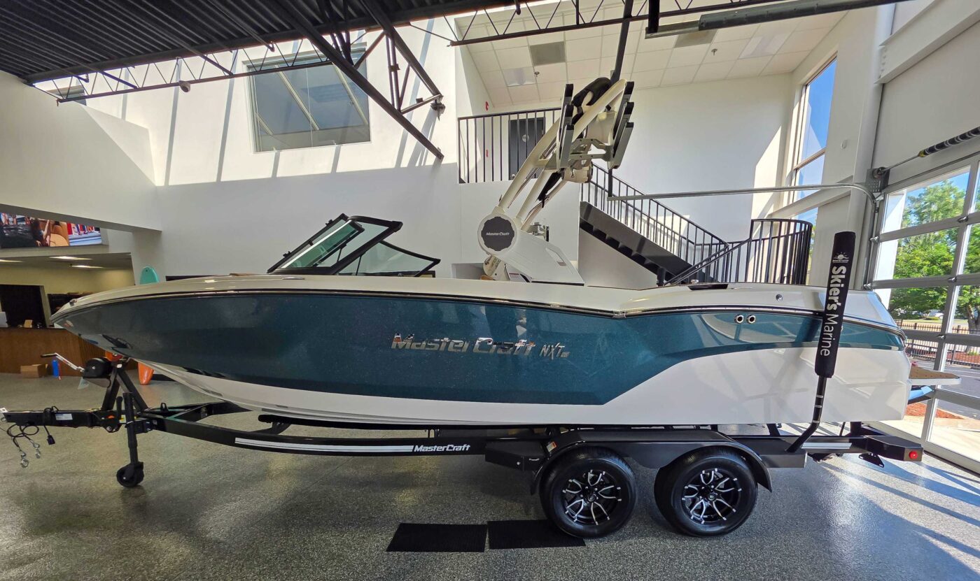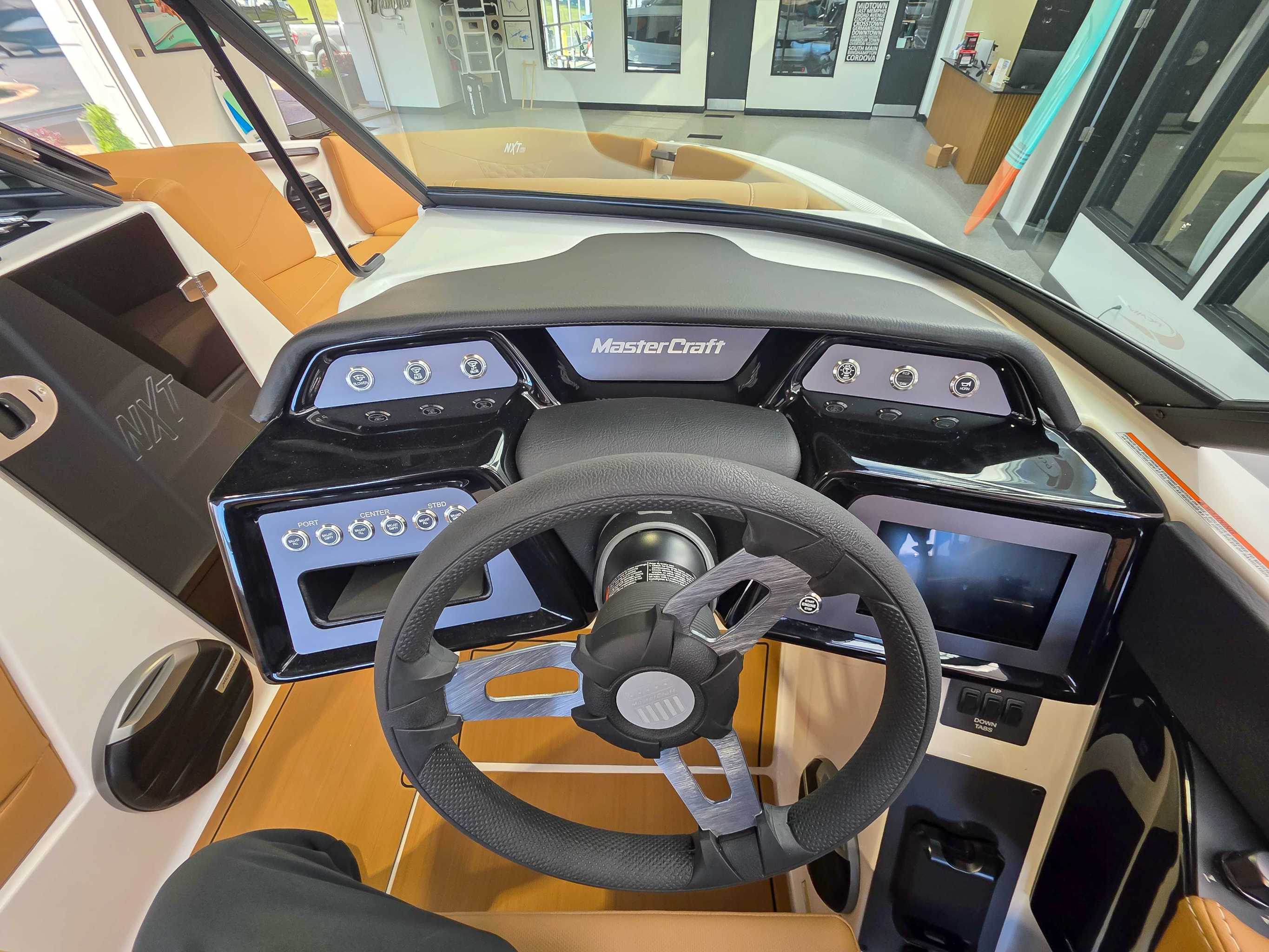 The 2026 MasterCraft NXT23 is a 23-foot wake boat designed for families and riders who want a blend of performance, comfort, and value. It comes standard with the SurfStar system for customizable wakes and waves, a 7-inch touchscreen dash, and a seating capacity for up to 16 people.