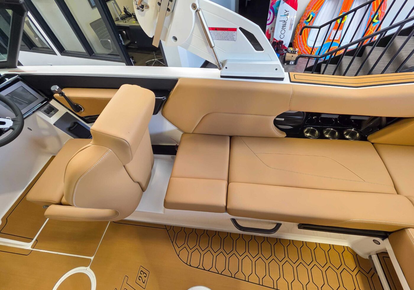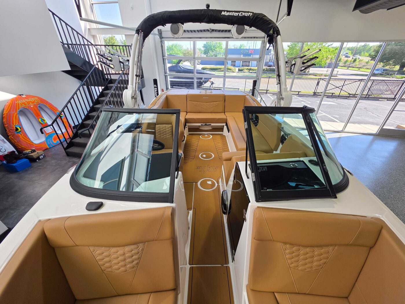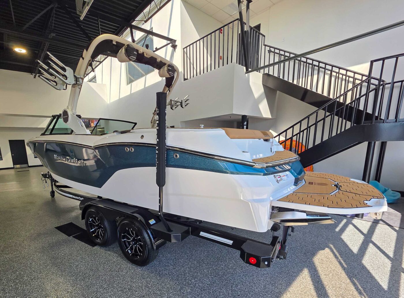 The 2026 MasterCraft NXT23 is a 23-foot wake boat designed for families and riders who want a blend of performance, comfort, and value. It comes standard with the SurfStar system for customizable wakes and waves, a 7-inch touchscreen dash, and a seating capacity for up to 16 people.