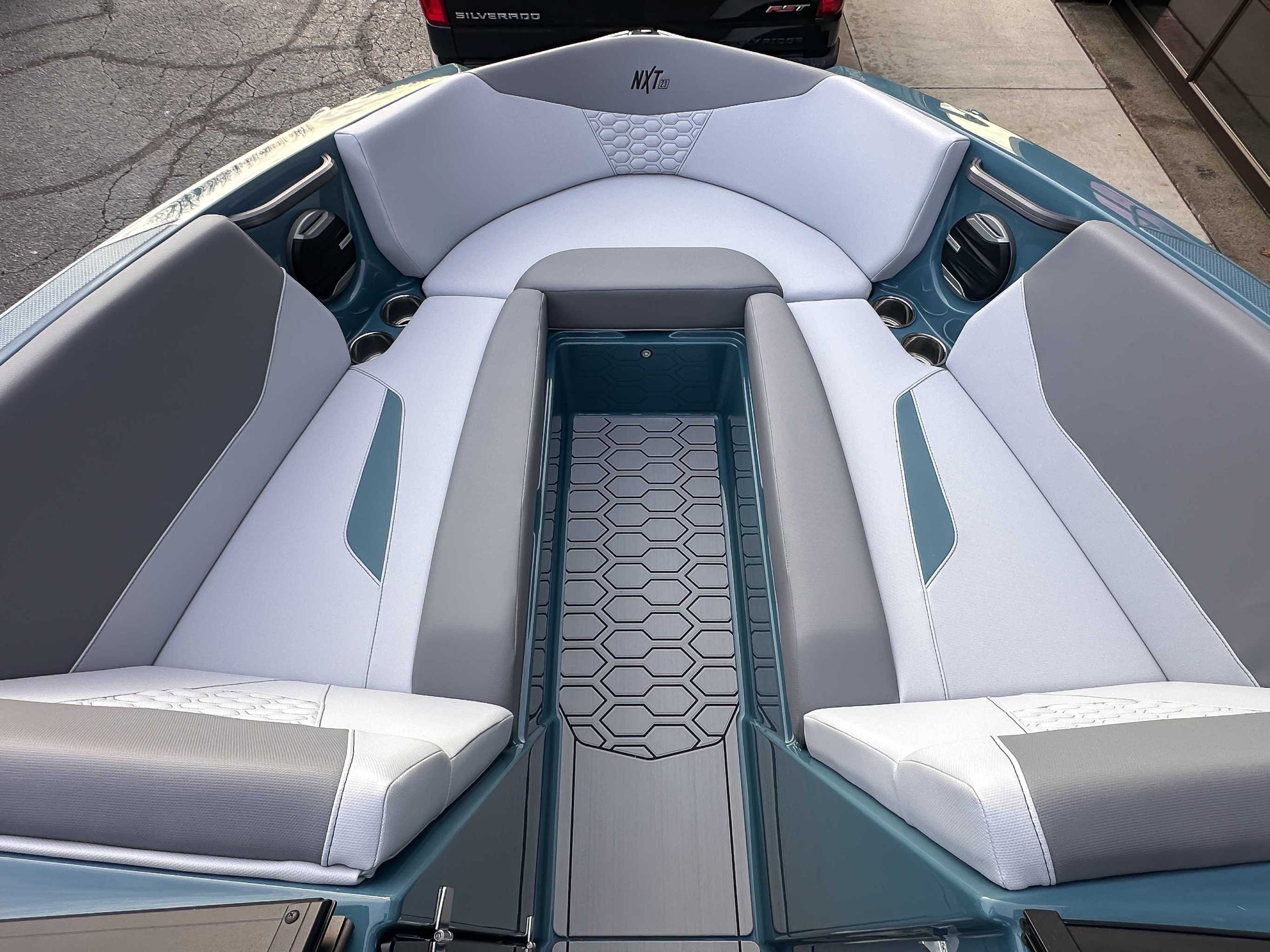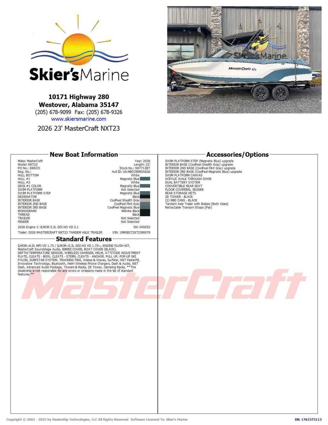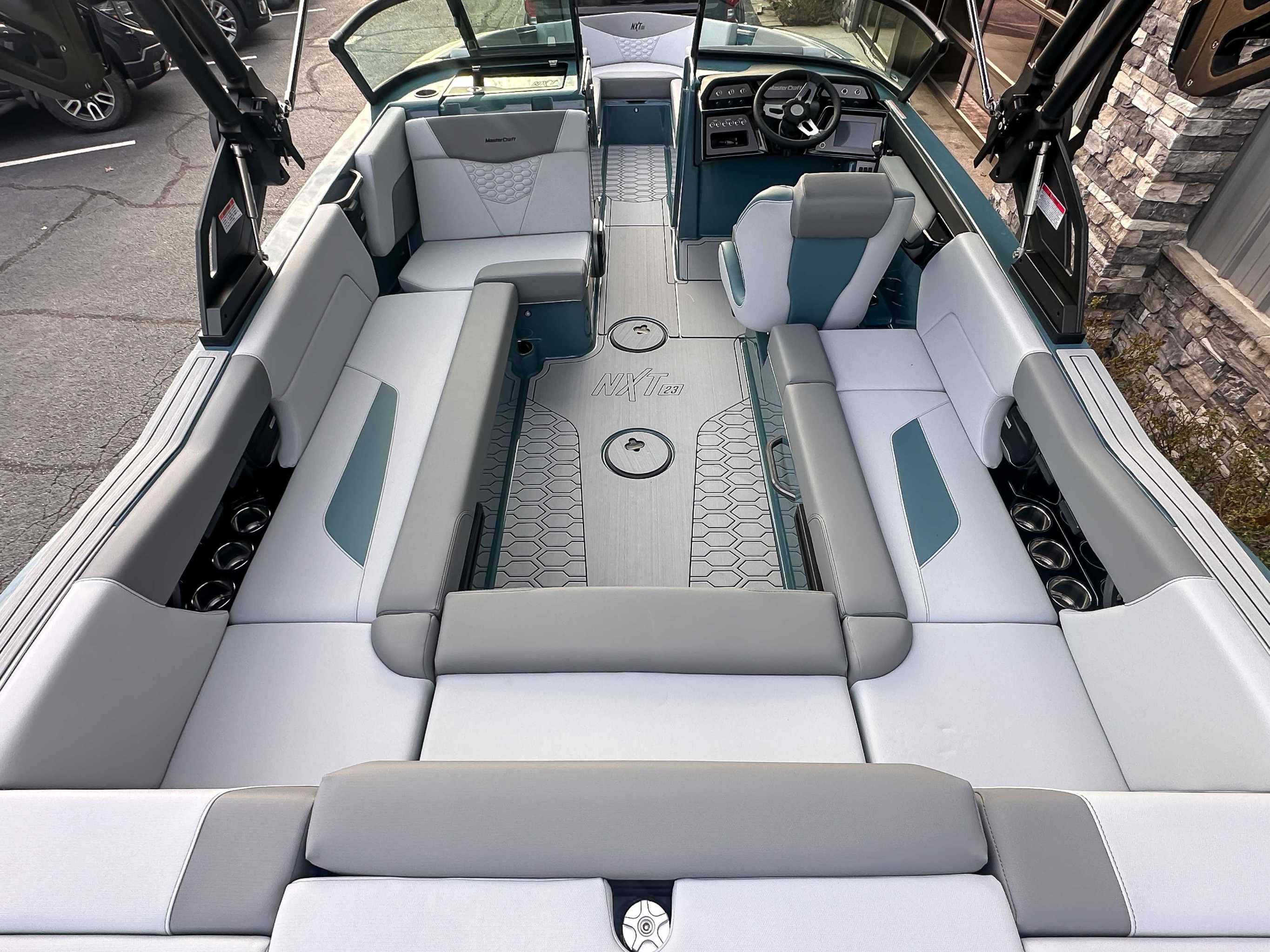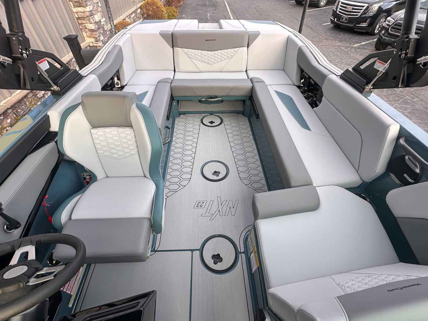 The 2026 MasterCraft NXT23 is a 23-foot wake boat designed for families and riders who want a blend of performance, comfort, and value. It comes standard with the SurfStar system for customizable wakes and waves, a 7-inch touchscreen dash, and a seating capacity for up to 16 people.