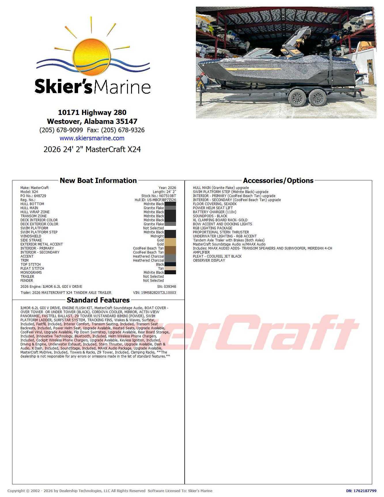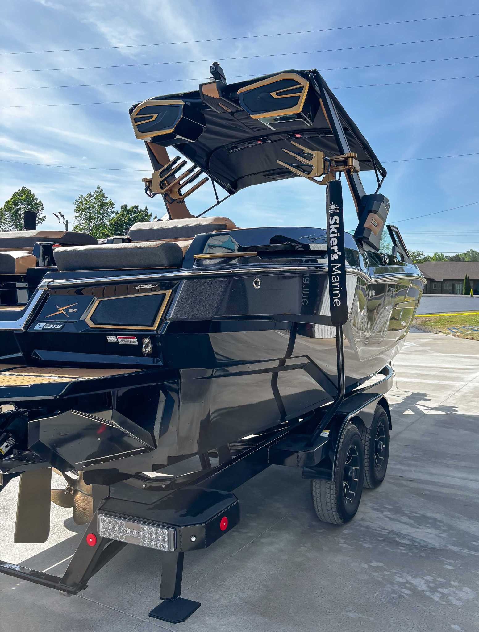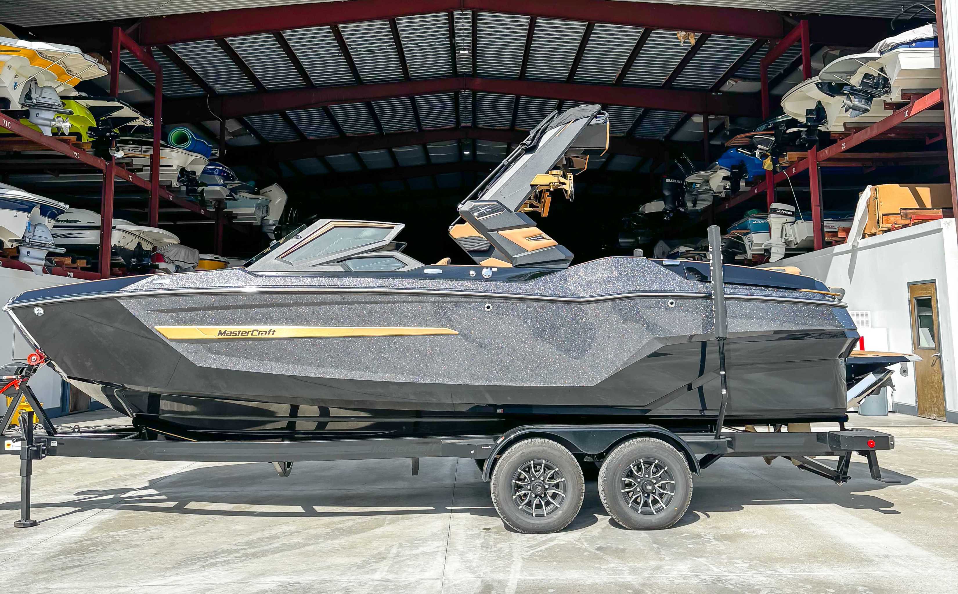 The 2026 MasterCraft X24 is a completely redesigned, premium wake and surf boat that blends aggressive performance with luxury. It features a reengineered hull for world-class wakes and waves via the advanced SurfStar system, up to 4,300 lbs of ballast, and an available supercharged 6.2L Ilmor engine.