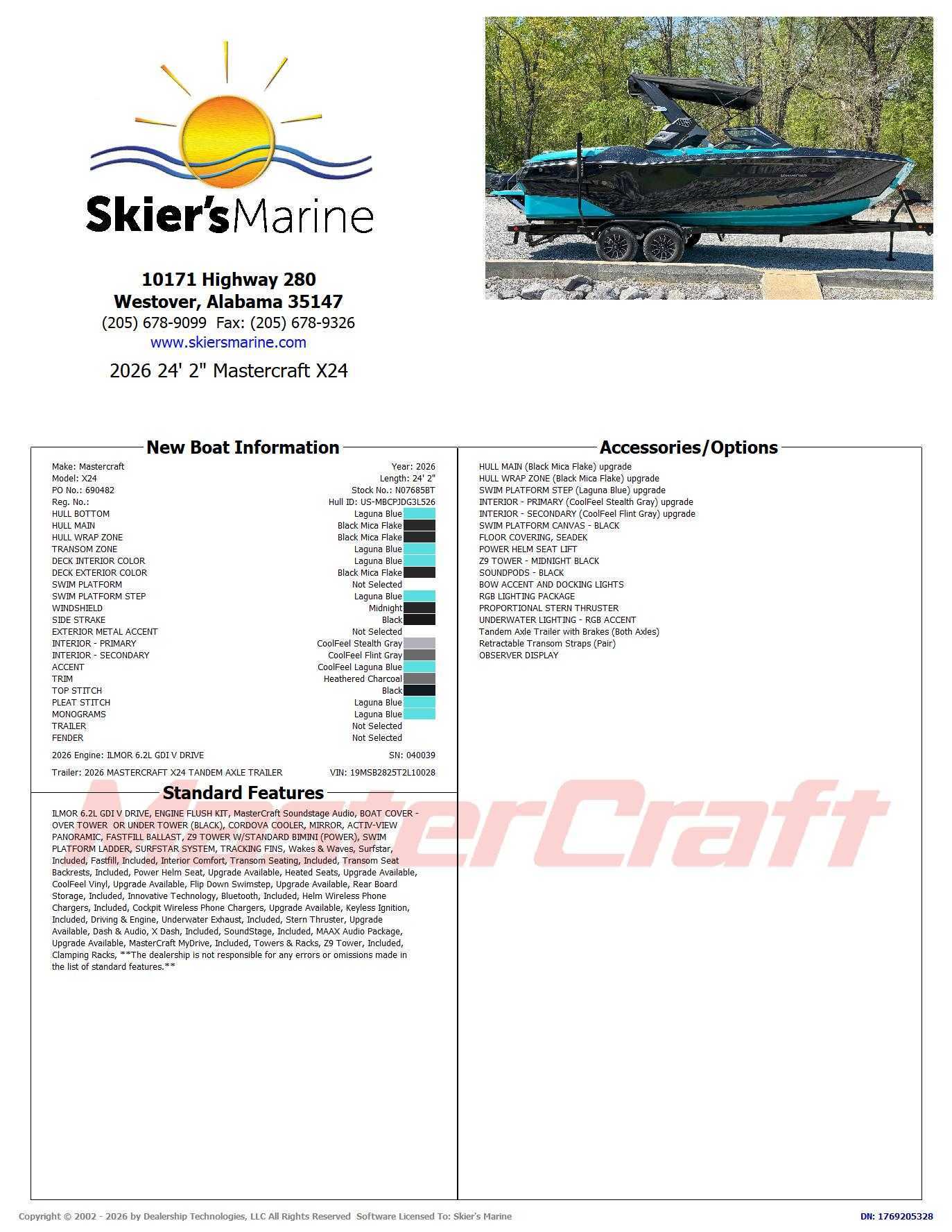 Skier's Marine is an award-winning ski boat, pontoon boat, and runabout sport boat dealer for brands like MasterCraft, Supra, Moomba, Chaparral, Harris, Premier, and Boston Whaler. We are not responsible for any pricing, options, specifications, or other listing errors on our site. Please contact us to confirm all details.