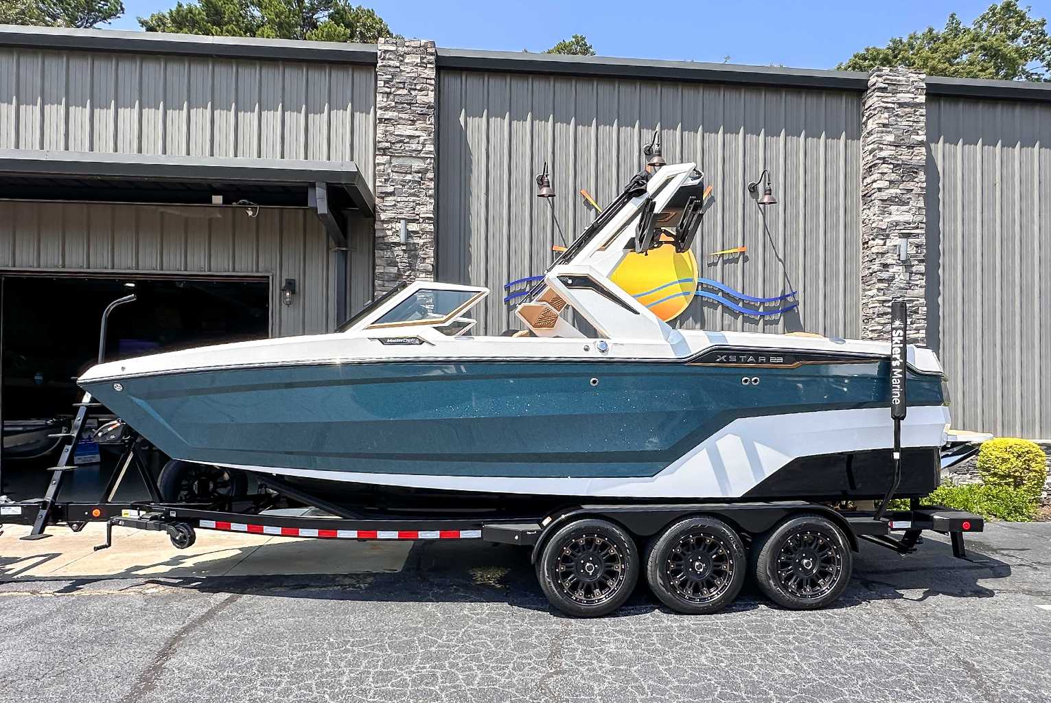The 2026 MasterCraft XStar 23 is a flagship surf and wake boat blending iconic design with cutting-edge technology and top-tier comfort. Powered by the robust Ilmor Supercharged 6.2L engine, it delivers unparalleled performance. The innovative SurfStar system and 3,850 lbs of ballast create powerful, customizable wakes and waves for all skill levels.