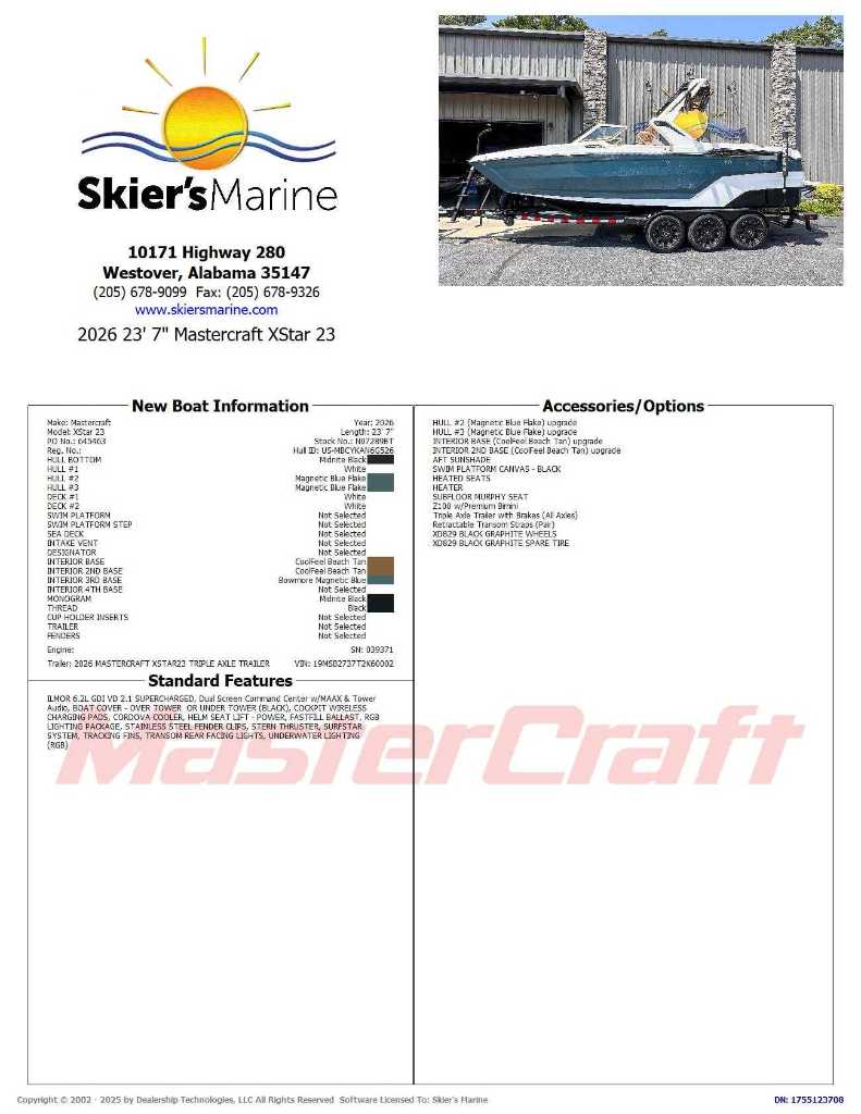 Skier's Marine is an award-winning ski boat, pontoon boat, and runabout sport boat dealer for brands like MasterCraft, Supra, Moomba, Chaparral, Harris, Premier, and Boston Whaler. We are not responsible for any pricing, options, specifications, or other listing errors on our site. Please contact us to confirm all details.