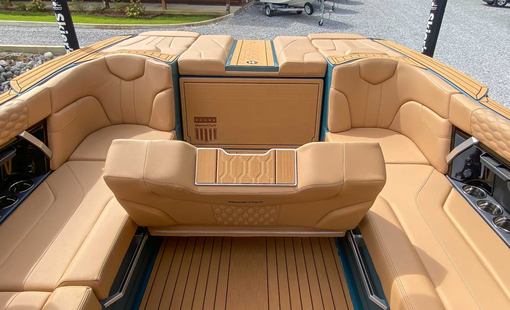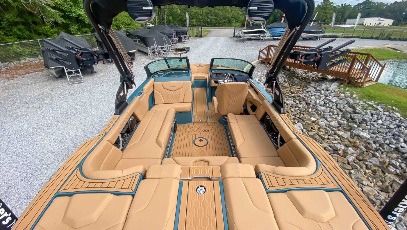 The 2026 MasterCraft XT23 is a 23-foot towboat that blends performance, luxury, and advanced technology to create world-class wakes and waves for all skill levels. It features the SurfStar system with available FastFill ballast for customizable waves and is powered by an Ilmor 5.3L GDI HO engine. The redesigned helm includes an intuitive 12" touchscreen and MyDrive control, complemented by the immersive MasterCraft SoundStage audio system. The interior comfortably seats 16 with deep storage and premium mat