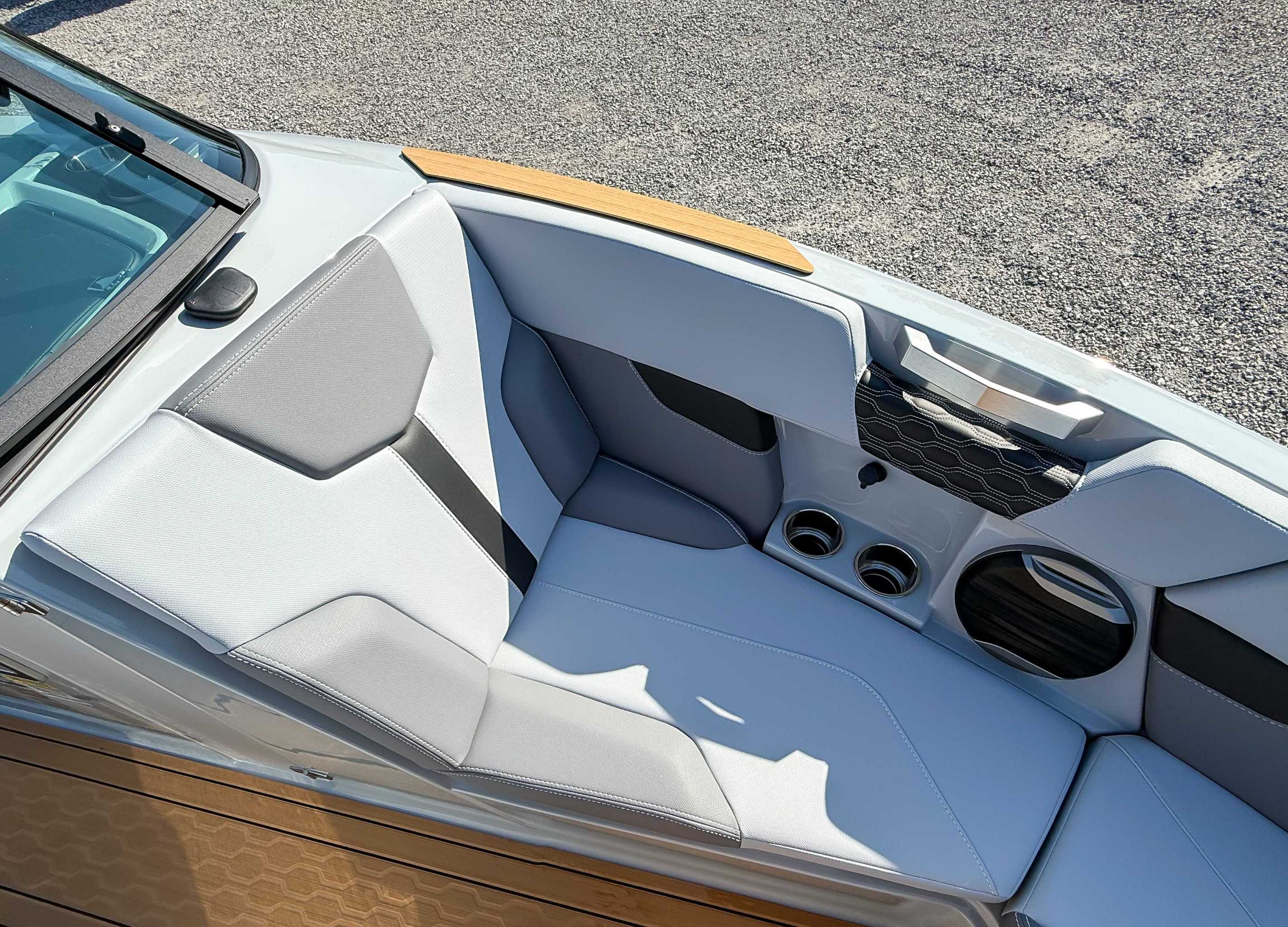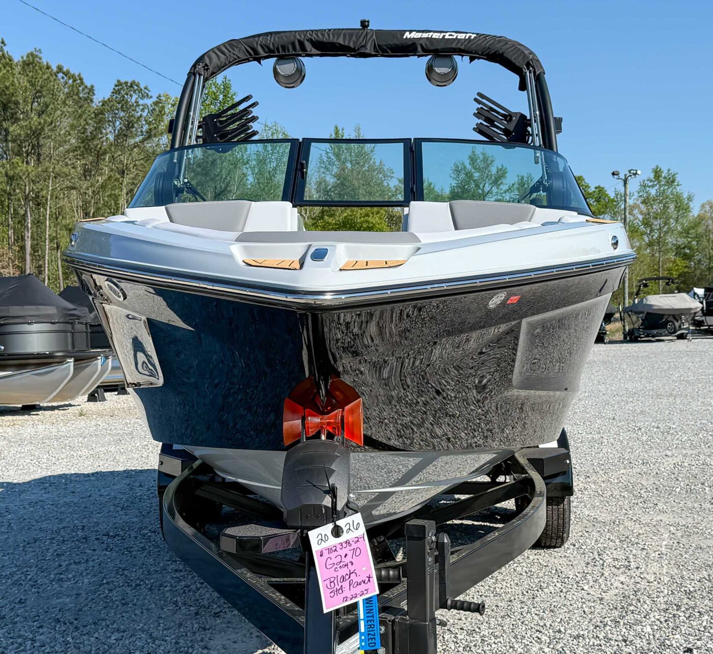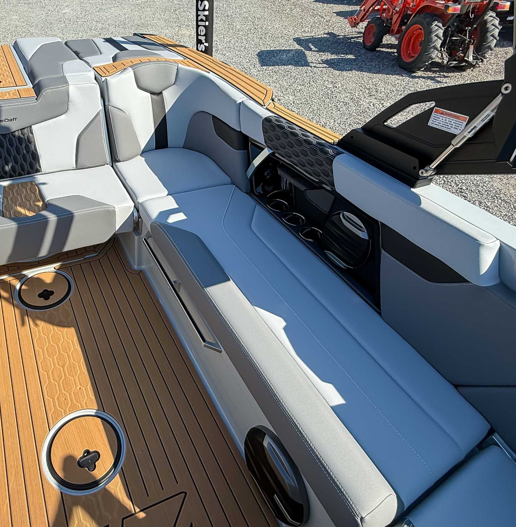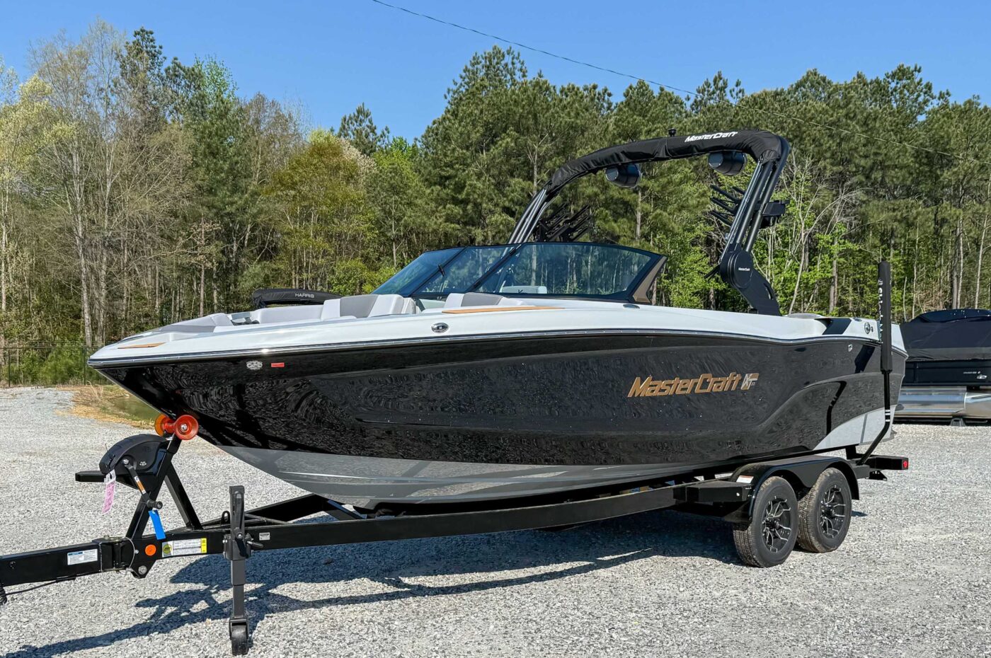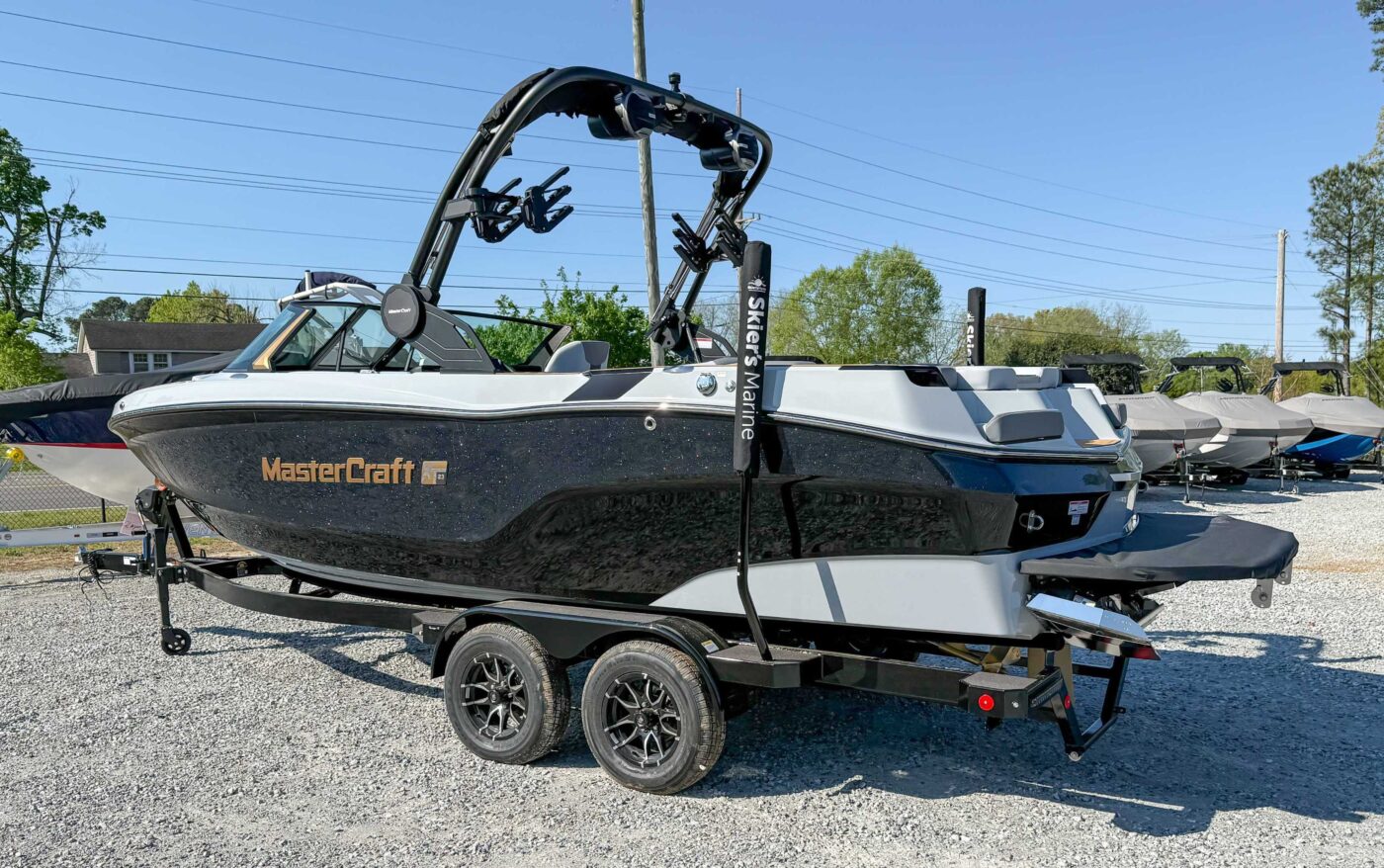 The 2026 MasterCraft XT23 is a 23-foot towboat that blends performance, luxury, and advanced technology to create world-class wakes and waves for all skill levels. It features the SurfStar system with available FastFill ballast for customizable waves and is powered by an Ilmor 5.3L GDI HO engine. The redesigned helm includes an intuitive 12" touchscreen and MyDrive control, complemented by the immersive MasterCraft SoundStage audio system. The interior comfortably seats 16 with deep storage and premium mat