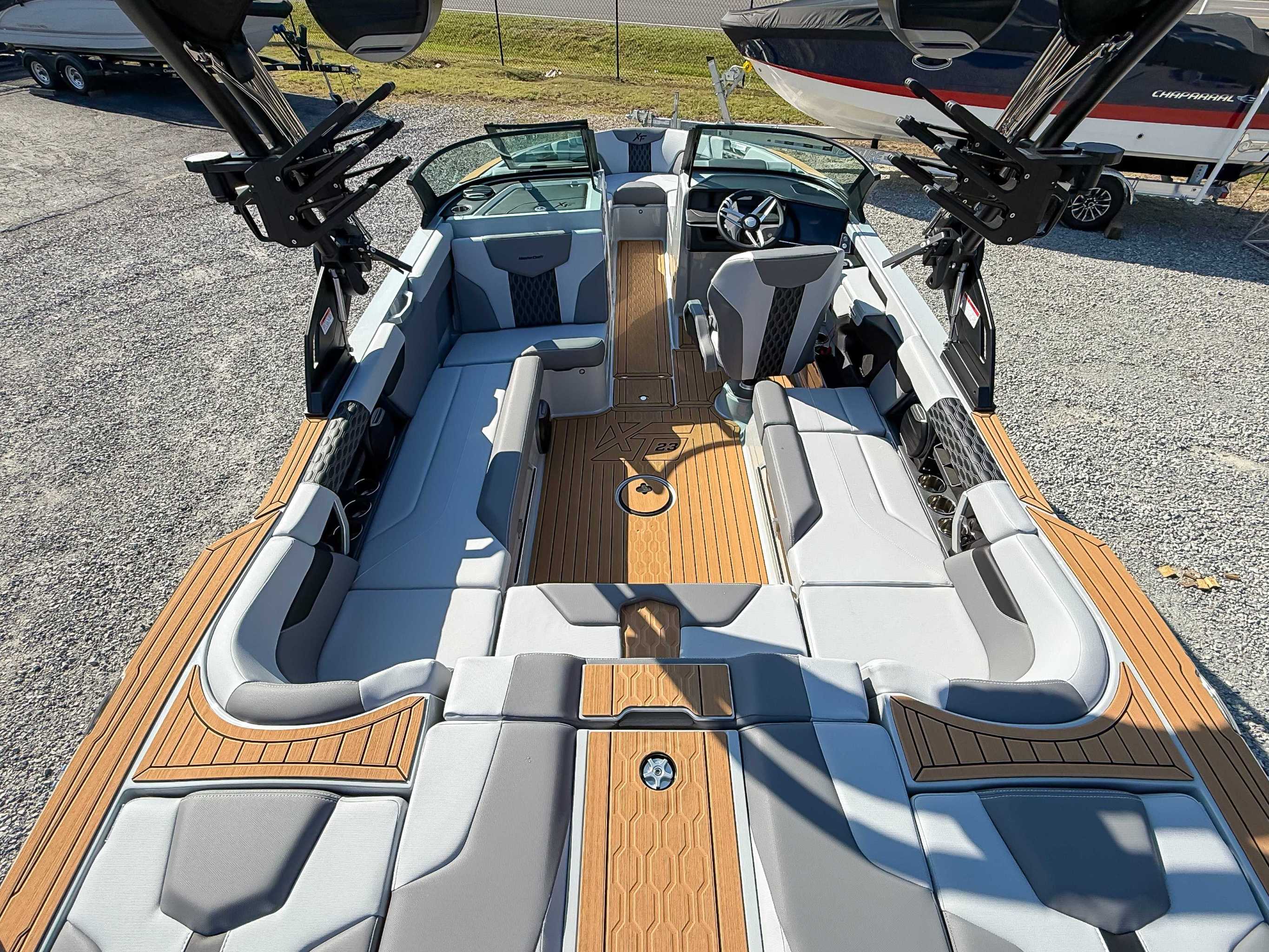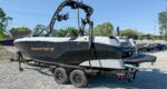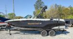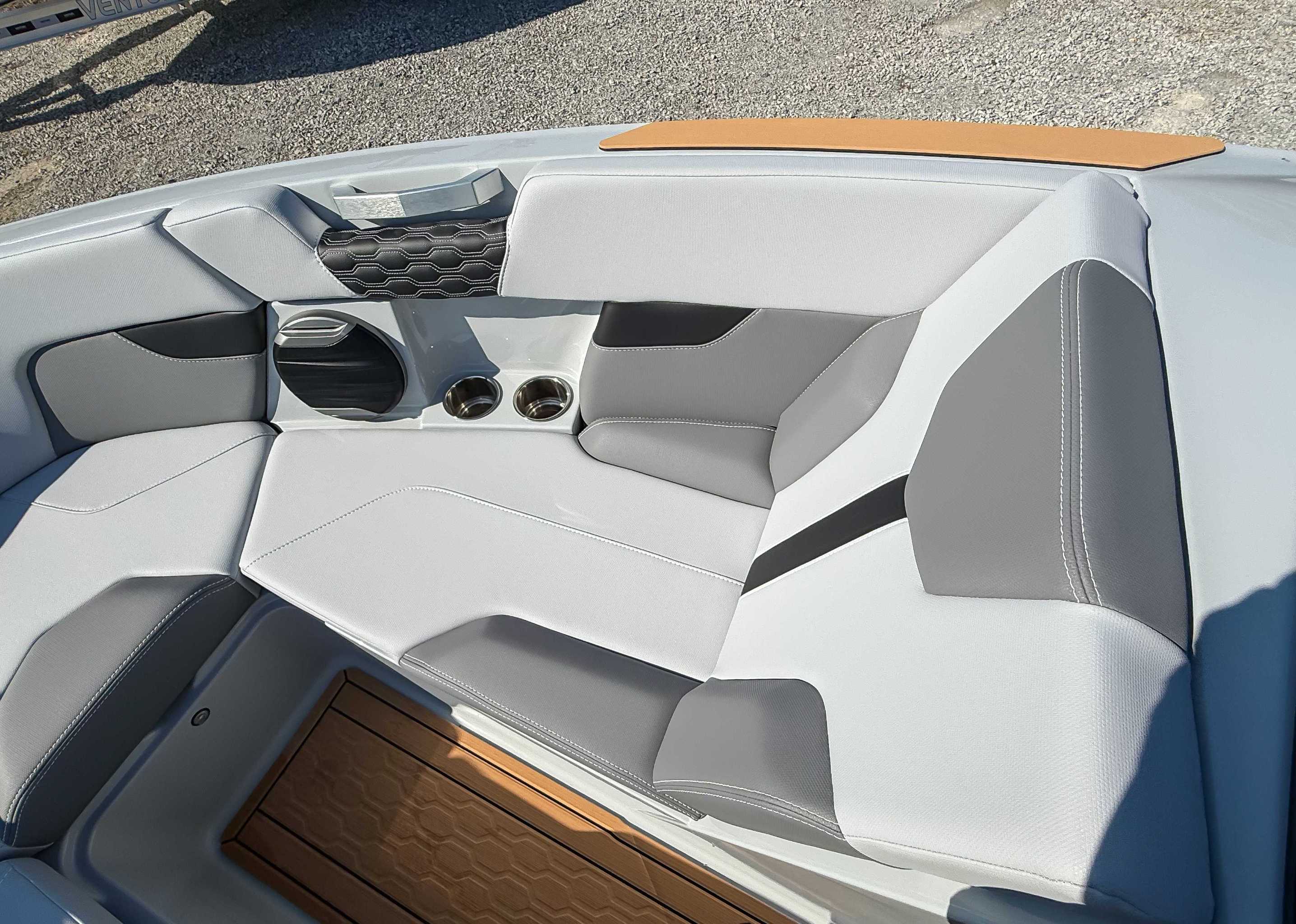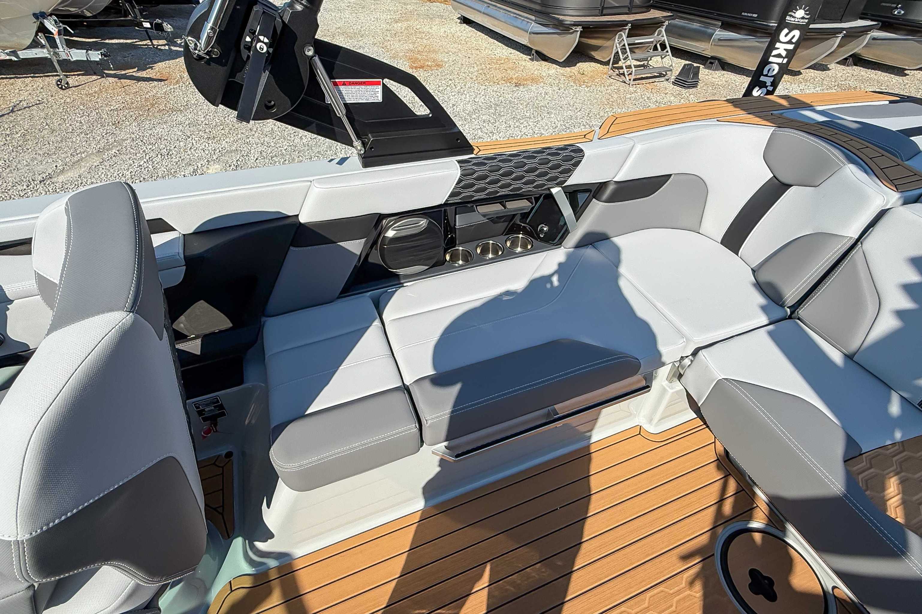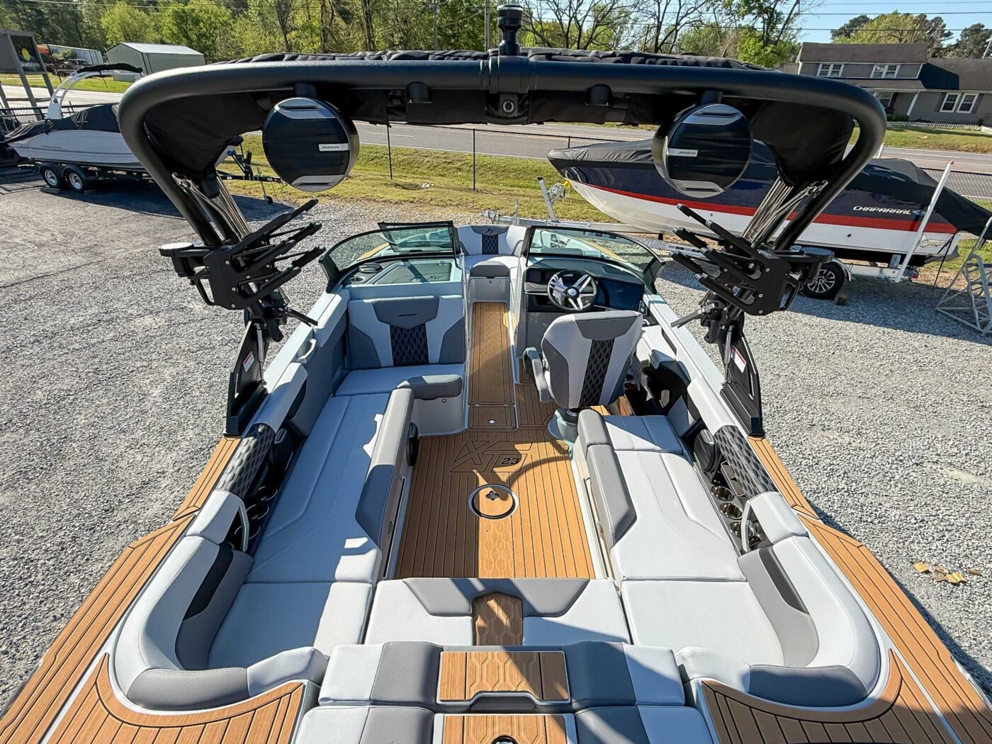 The 2026 MasterCraft XT23 is a 23-foot towboat that blends performance, luxury, and advanced technology to create world-class wakes and waves for all skill levels. It features the SurfStar system with available FastFill ballast for customizable waves and is powered by an Ilmor 5.3L GDI HO engine. The redesigned helm includes an intuitive 12" touchscreen and MyDrive control, complemented by the immersive MasterCraft SoundStage audio system. The interior comfortably seats 16 with deep storage and premium mat