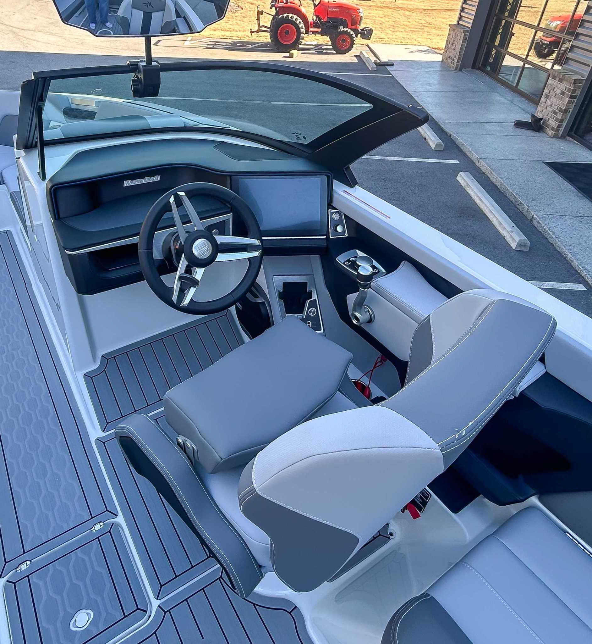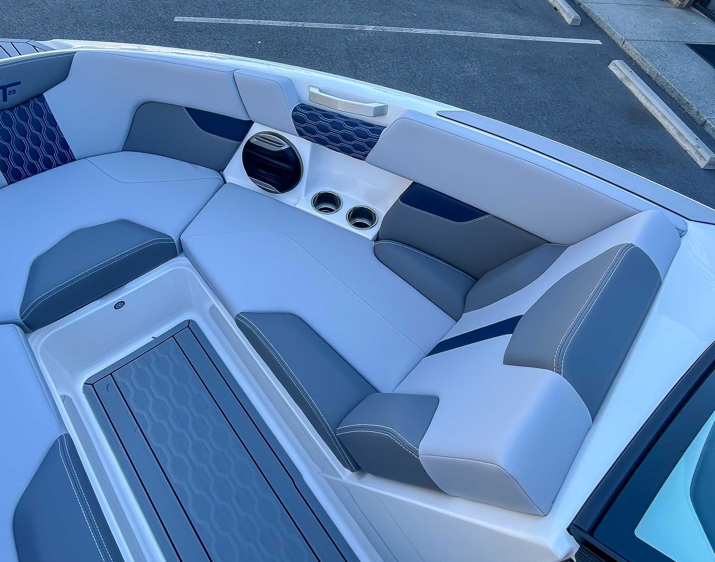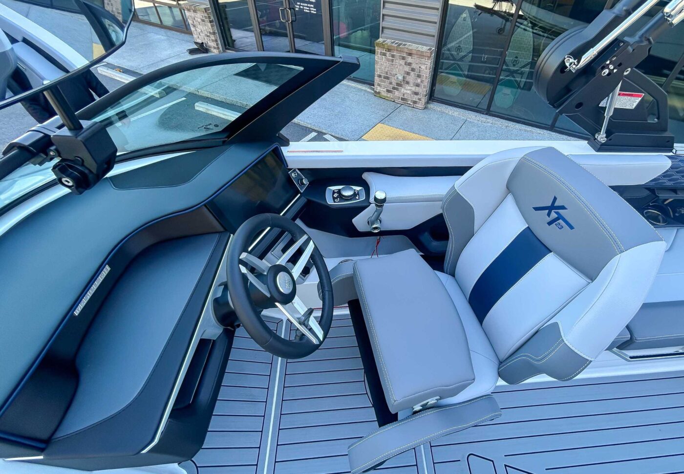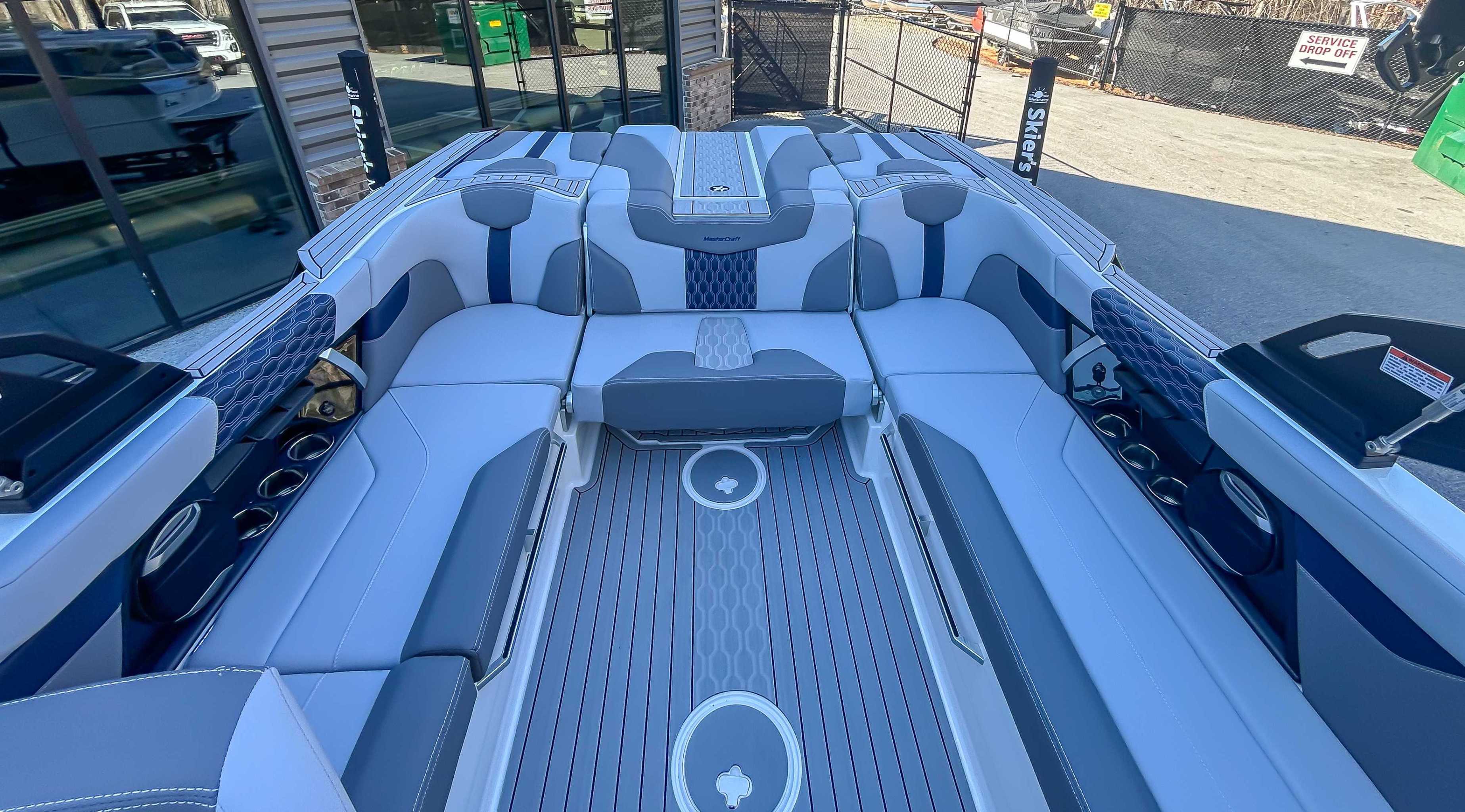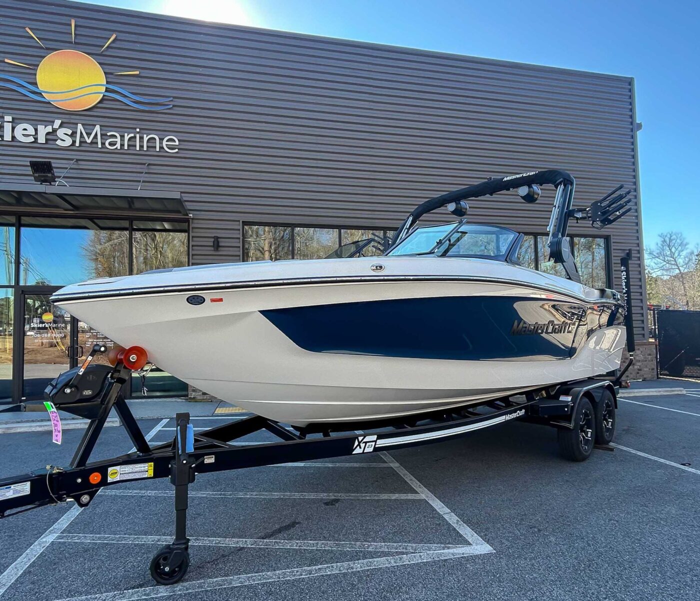 The 2026 MasterCraft XT23 is a 23-foot towboat that blends performance, luxury, and advanced technology to create world-class wakes and waves for all skill levels. It features the SurfStar system with available FastFill ballast for customizable waves and is powered by an Ilmor 5.3L GDI HO engine. The redesigned helm includes an intuitive 12" touchscreen and MyDrive control, complemented by the immersive MasterCraft SoundStage audio system. The interior comfortably seats 16 with deep storage and premium mat