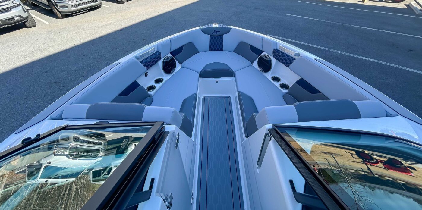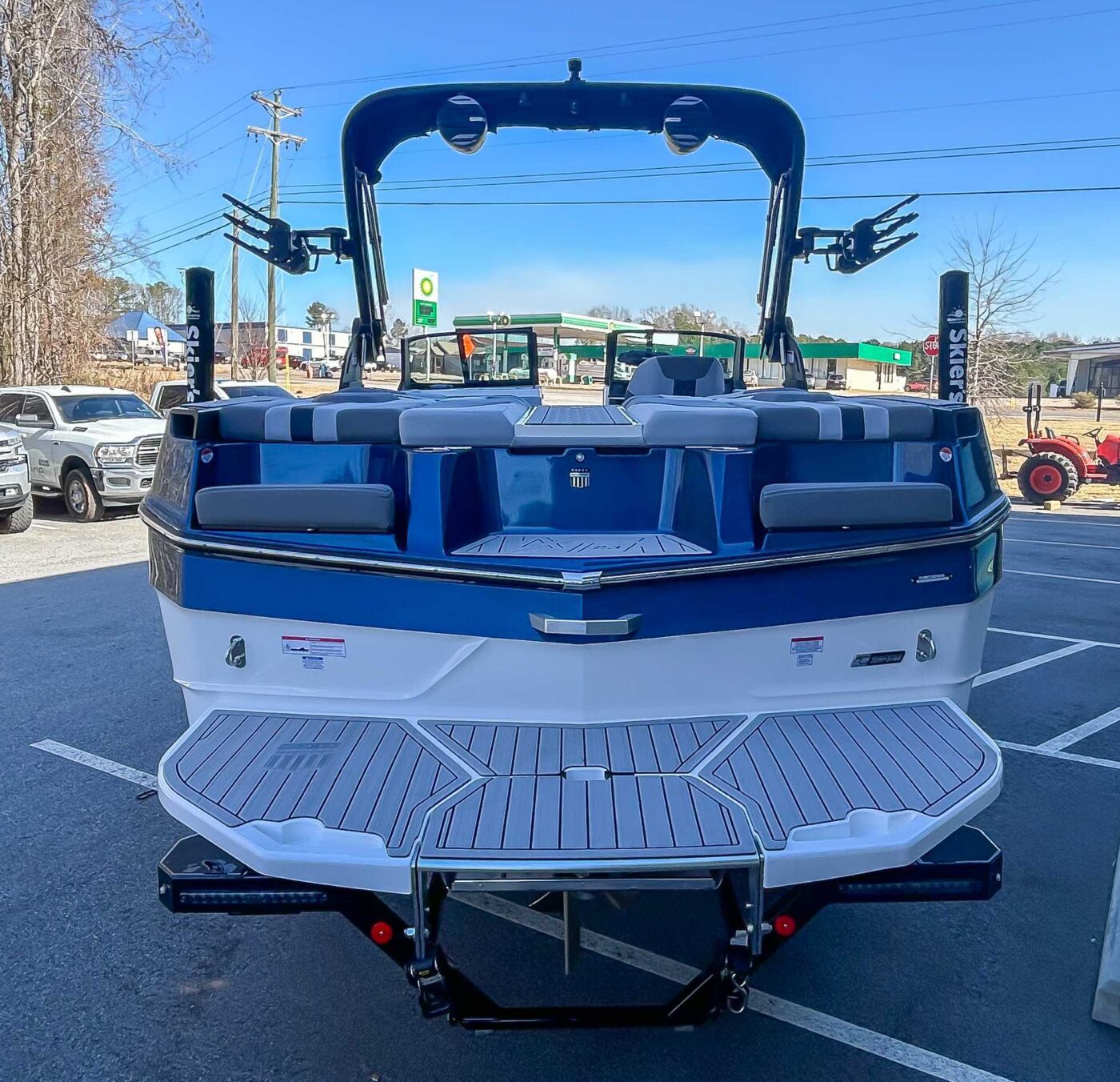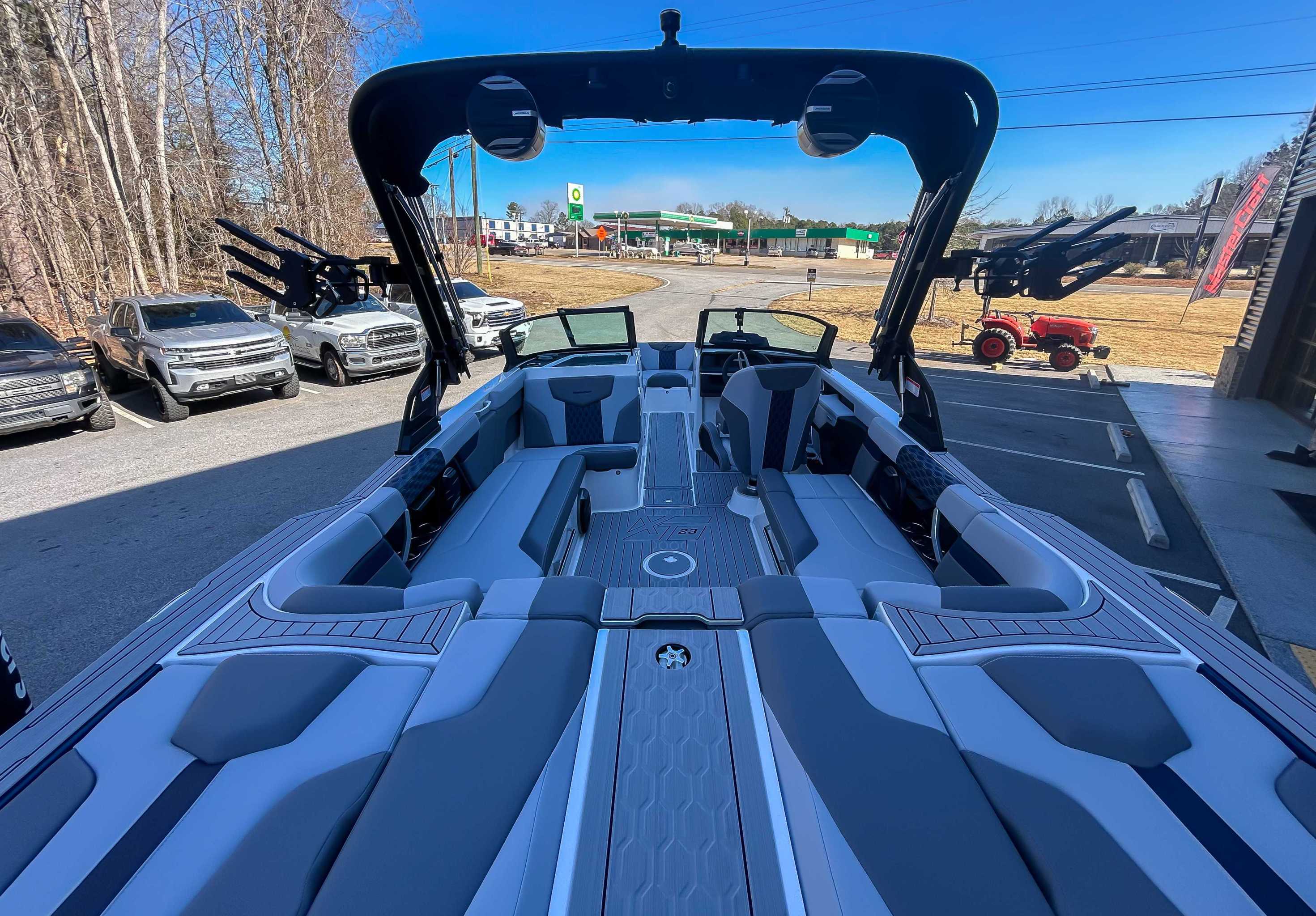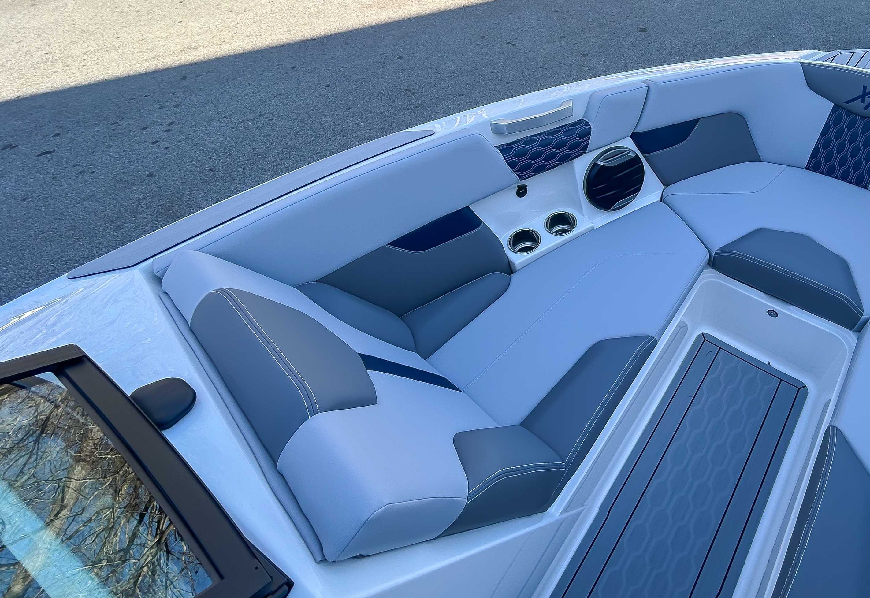 The 2026 MasterCraft XT23 is a 23-foot towboat that blends performance, luxury, and advanced technology to create world-class wakes and waves for all skill levels. It features the SurfStar system with available FastFill ballast for customizable waves and is powered by an Ilmor 5.3L GDI HO engine. The redesigned helm includes an intuitive 12" touchscreen and MyDrive control, complemented by the immersive MasterCraft SoundStage audio system. The interior comfortably seats 16 with deep storage and premium mat
