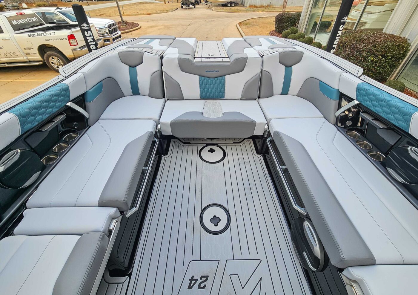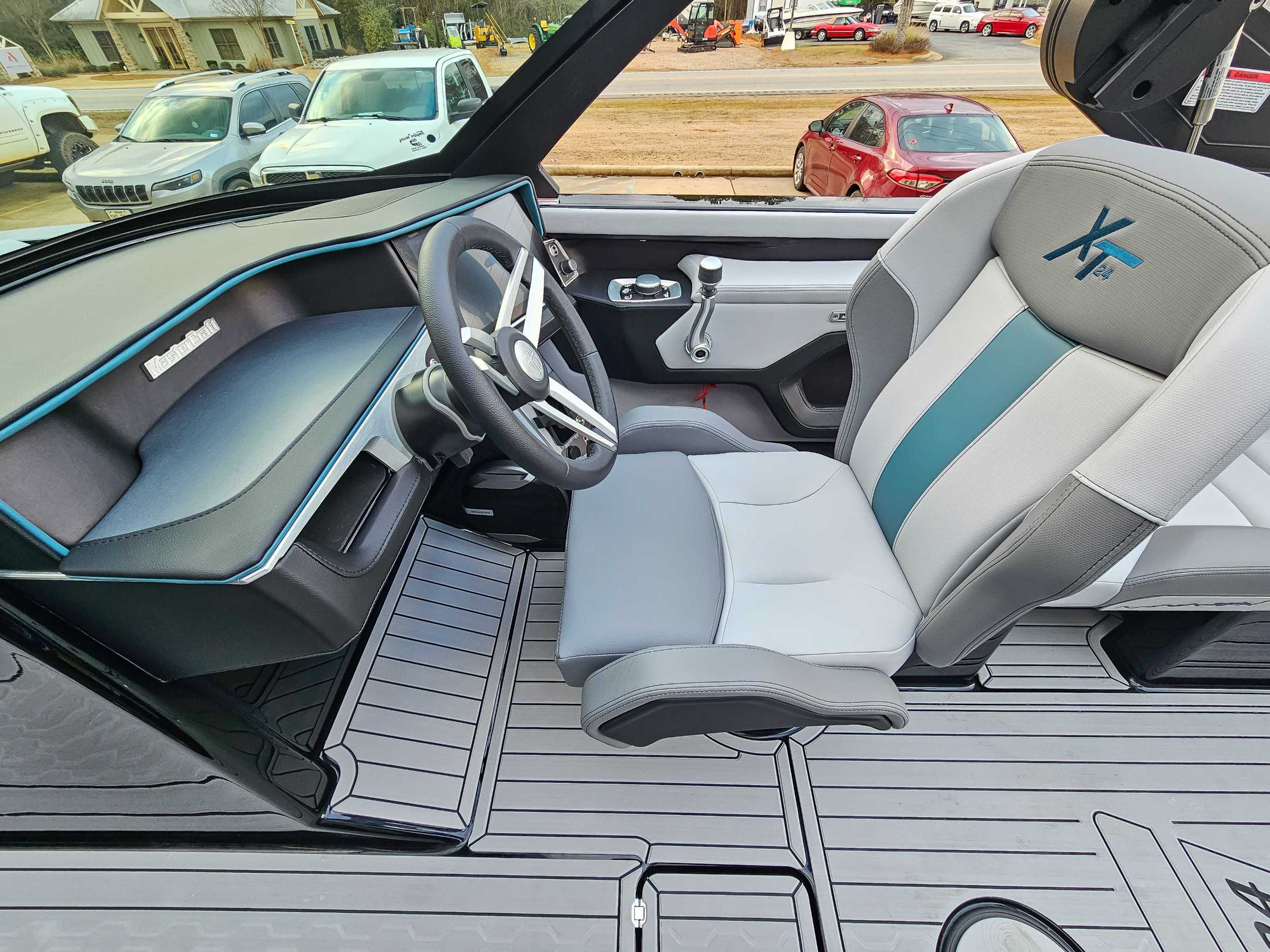The 2026 MasterCraft XT24 is a 24-foot luxury towboat combining power, comfort, and style for up to 17 people. It delivers massive, customizable surf waves via the advanced SurfStar system and up to 3,600 lbs of ballast. Key features for 2026 include a redesigned helm with a 12-inch touchscreen and new keyless entry, plus the all-new, immersive MasterCraft SoundStage audio system powered by Meridian Audio. A new Ilmor-powered stern thruster option and CoolFeel vinyl seating enhance control and comfort. Po