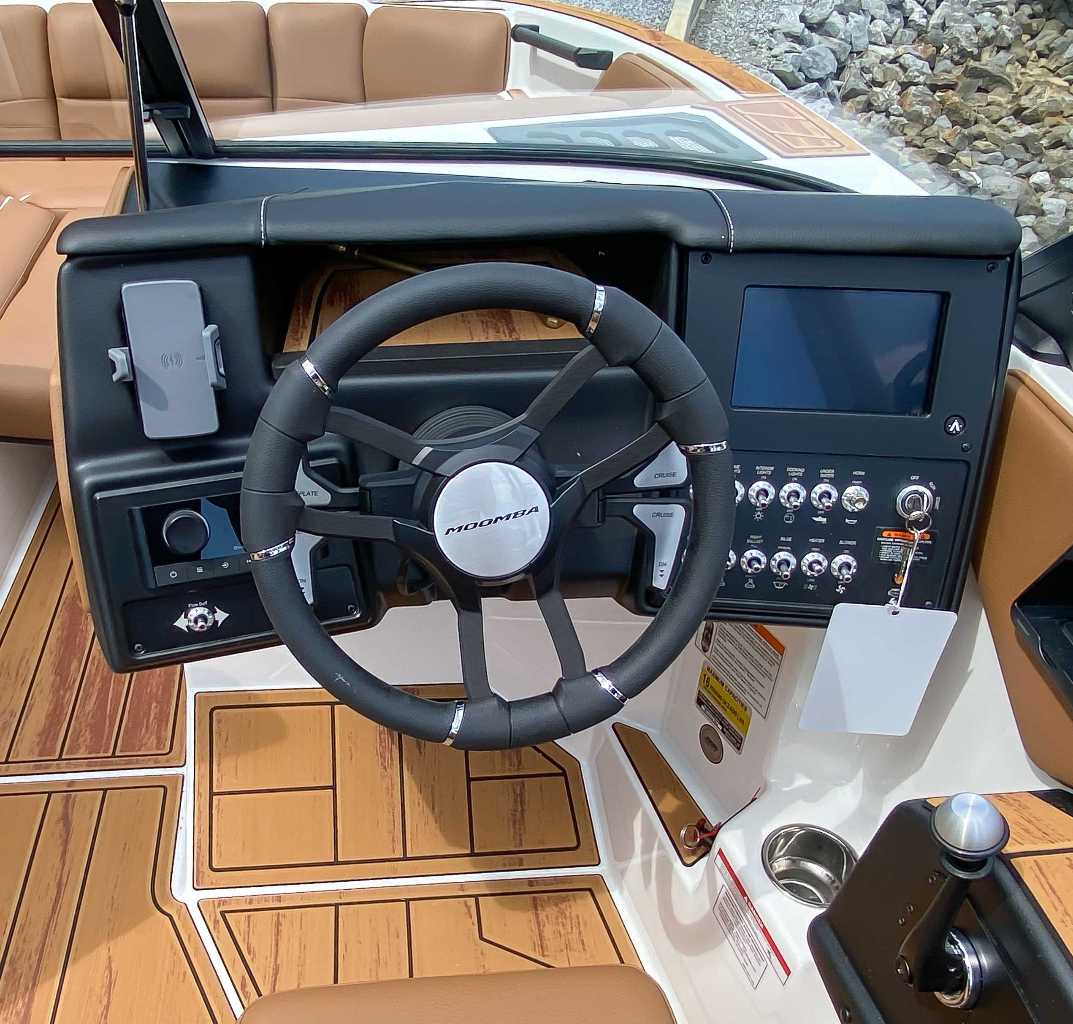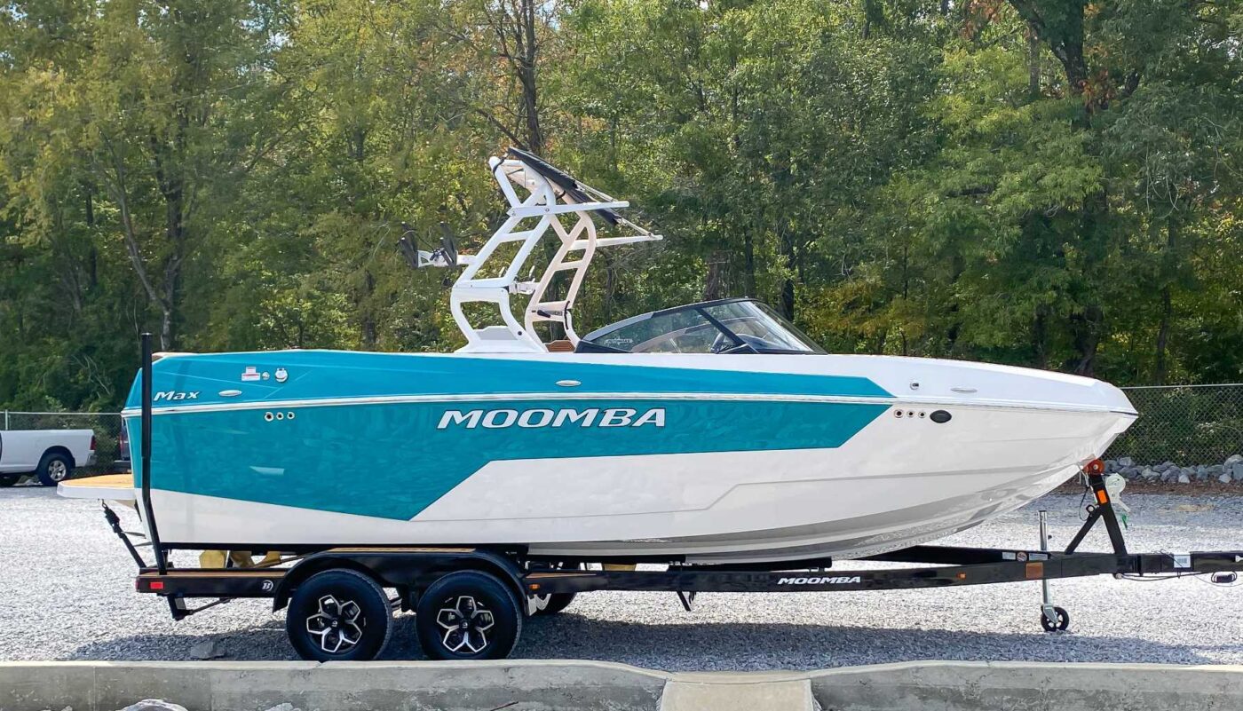 The 2026 Moomba Max is a 22-foot wake boat designed for massive fun and performance with a crew of up to 16. Powered by a robust 6.2L Indmar Raptor V8 engine, it features standard 5,000 lbs of ballast, the Flow Surf System, and AutoWake technology to create customizable waves for all skill levels. The boat includes a spacious layout, an intuitive touchscreen dash, and durable GatorStep non-skid flooring, combining value, power, and comfort for unforgettable days on the water.