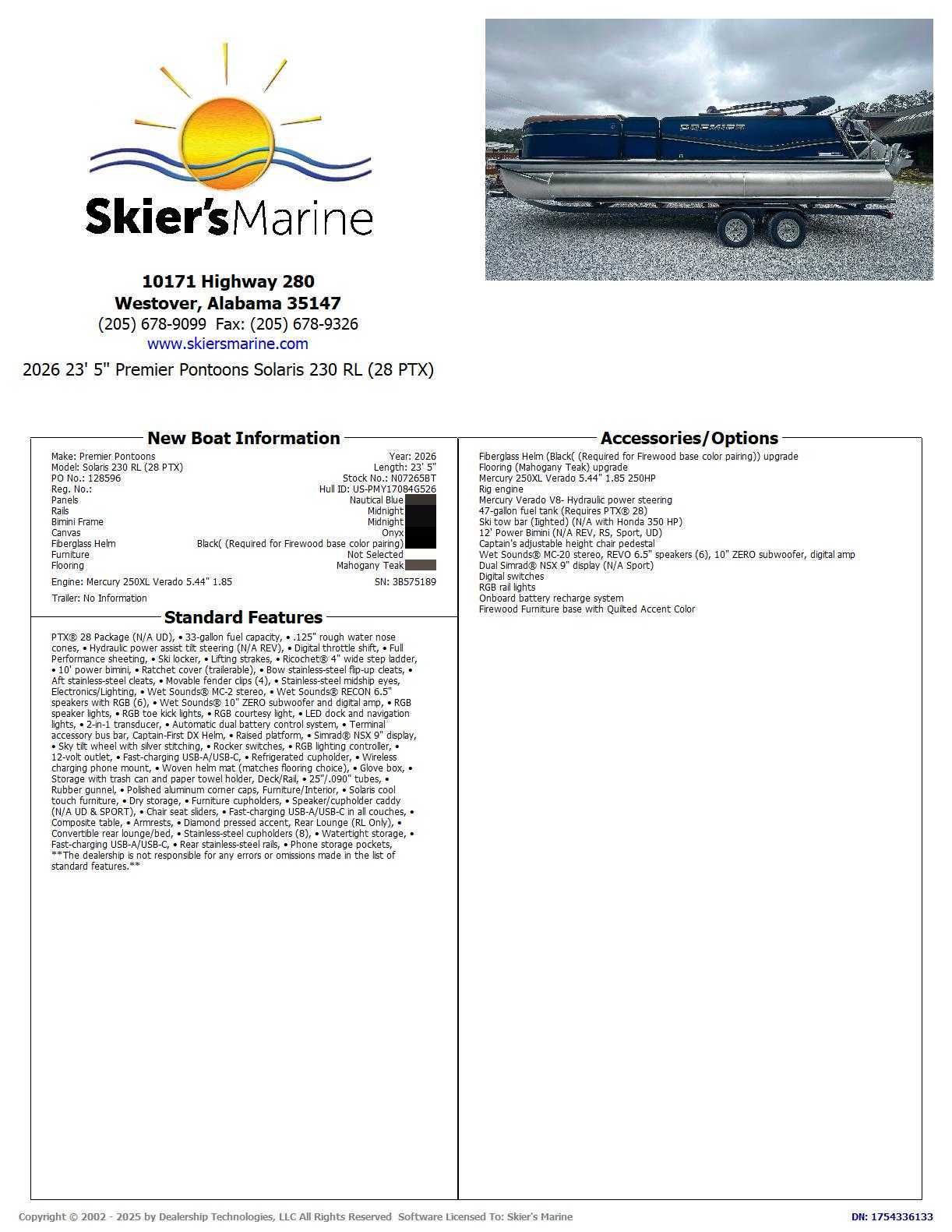 2026 Premier Pontoons Solaris 230 RL (28 PTX) N07740BT