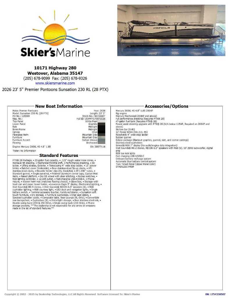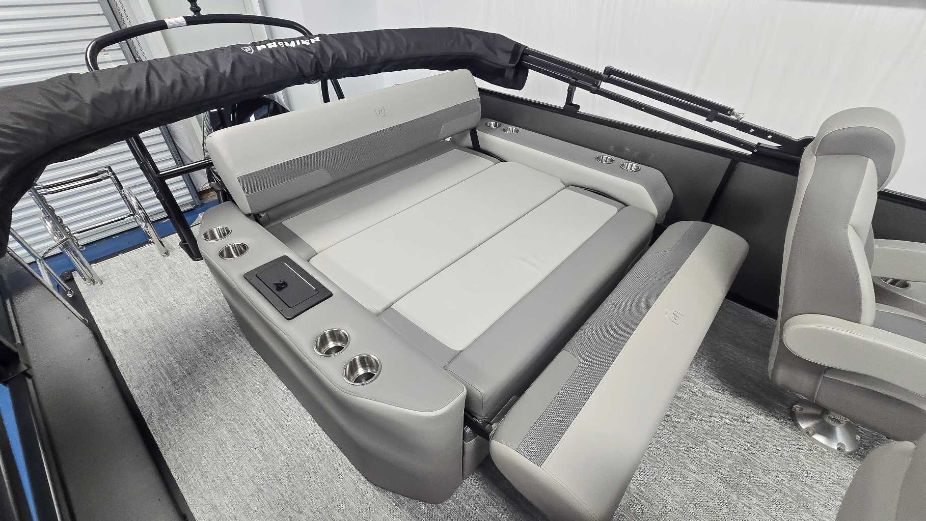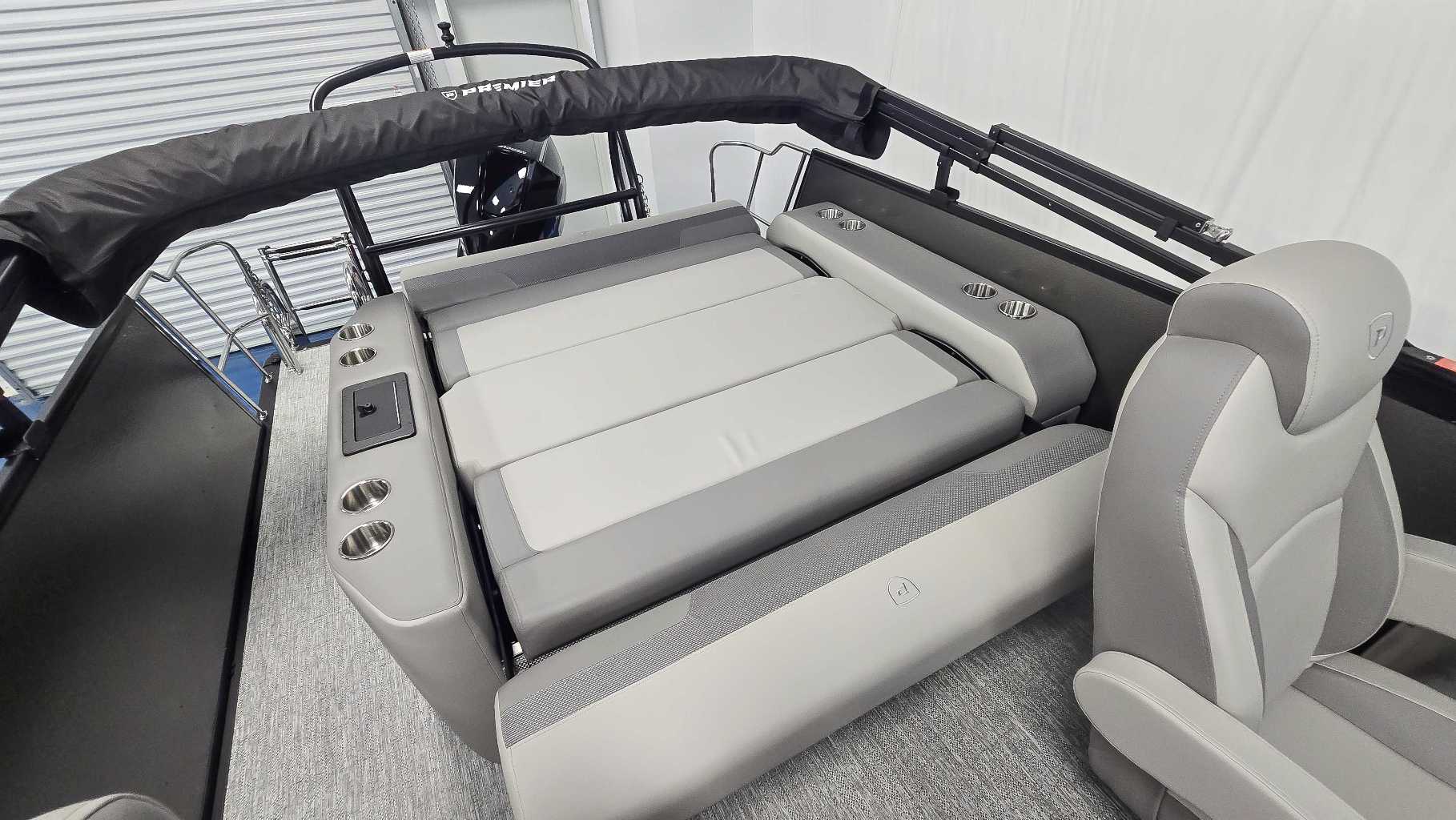 The 2026 Premier Sunsation 230 is a versatile, 23-foot pontoon boat known for blending luxury with high performance. Built on Premier's innovative PTX tritoon chassis, it offers a smooth, agile ride more akin to a runabout than a traditional pontoon, with enhanced stability and handling even in rougher water.