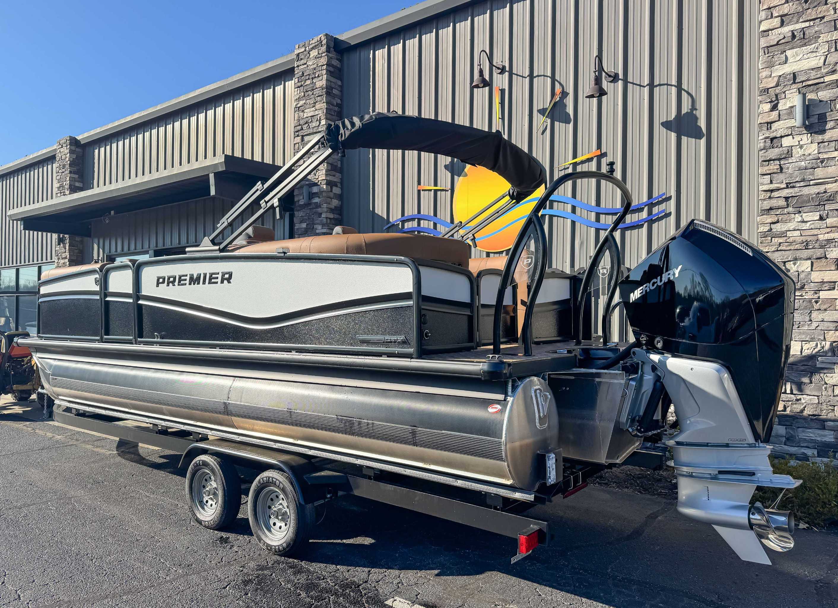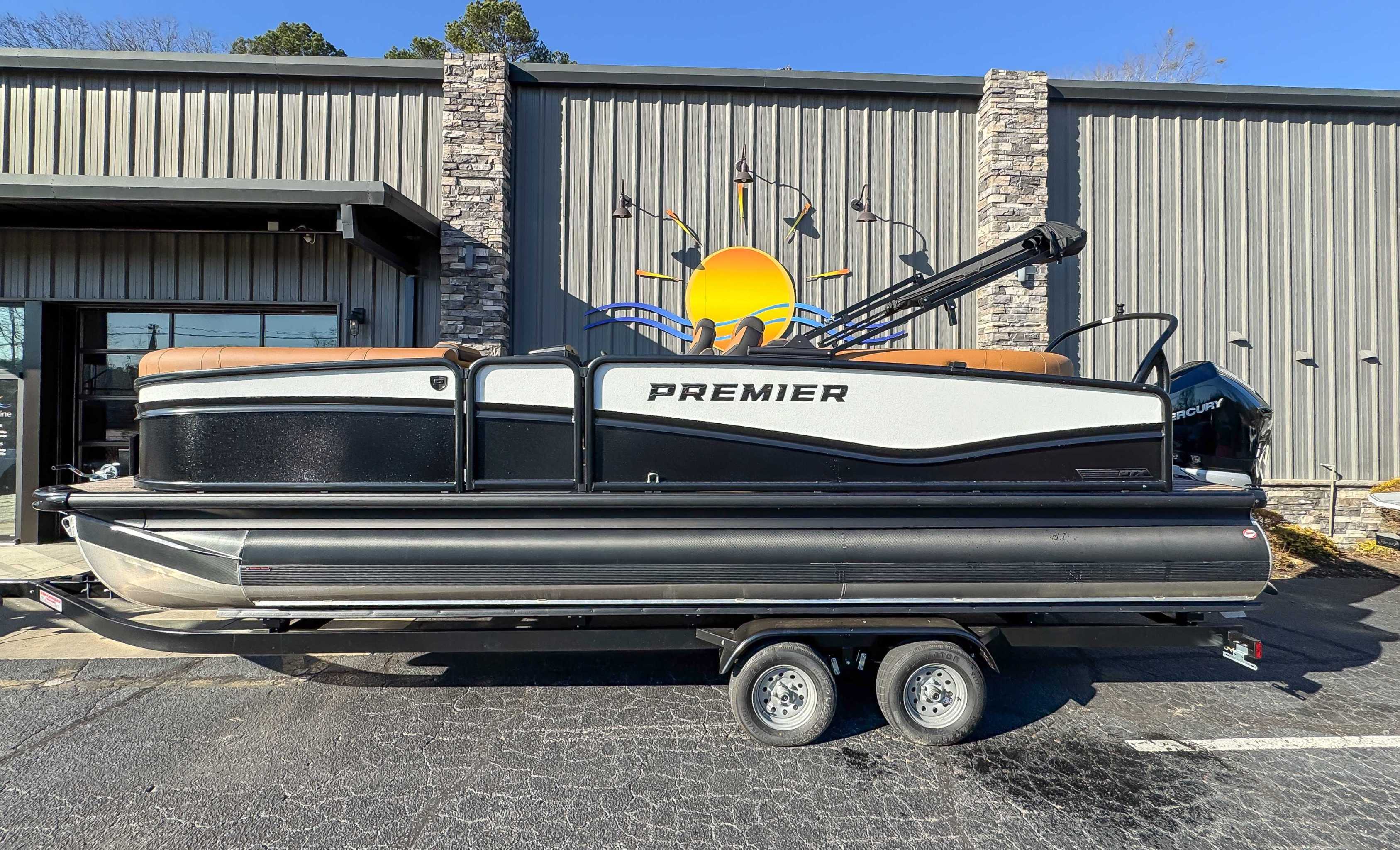The 2026 Premier 230 Solaris pontoon boat combines modern luxury and performance, featuring a supercharged PTX chassis for superior handling and a smooth ride. Key highlights include new "Cool-Touch" furniture that stays cooler in direct sunlight, a Captain-First helm with a Simrad 9" display, and a transparent bow gate. It offers various floor plans and can be powered by high-performance engines up to 250 HP.