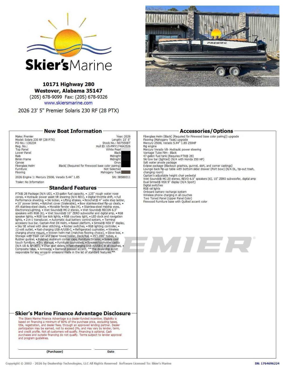 2026 Premier Solaris 230 RF (28 PTX) N07550BT
