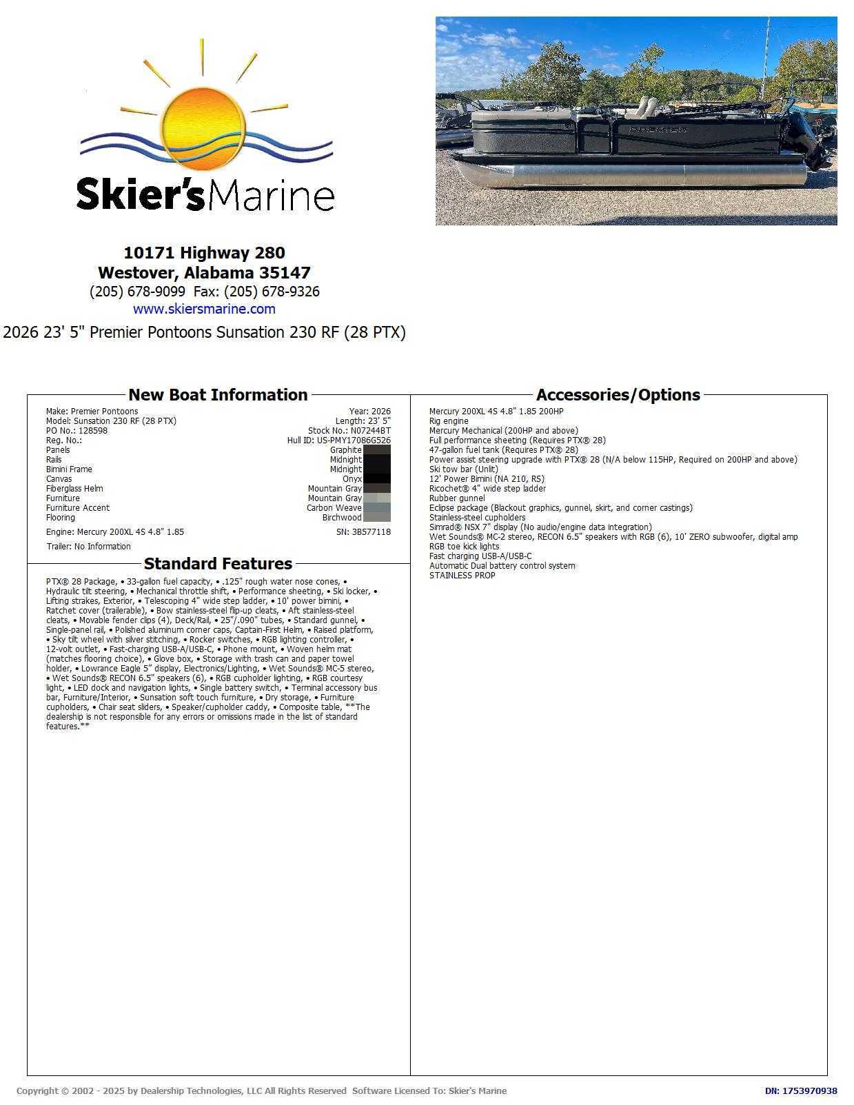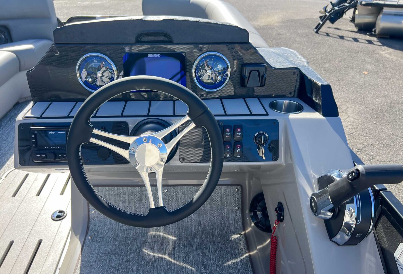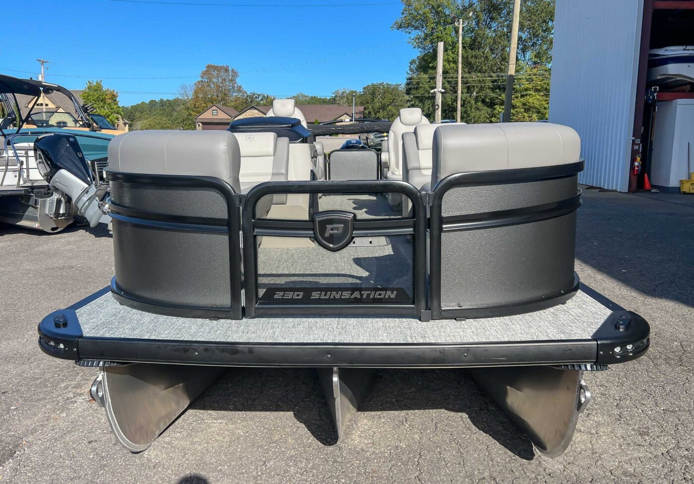 The 2026 Premier Sunsation 230 is a versatile, 23-foot pontoon boat known for blending luxury with high performance. Built on Premier's innovative PTX tritoon chassis, it offers a smooth, agile ride more akin to a runabout than a traditional pontoon, with enhanced stability and handling even in rougher water.