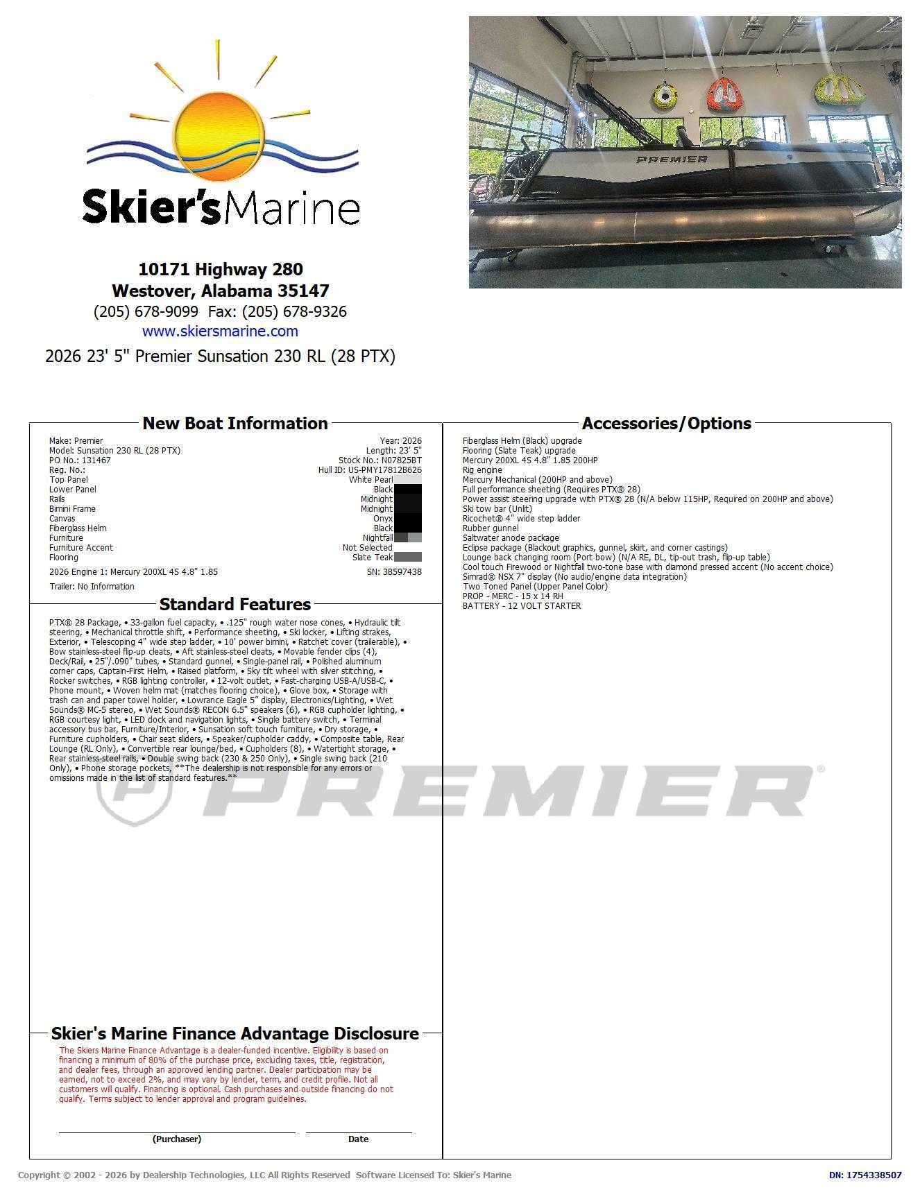 Skier's Marine is an award-winning ski boat, pontoon boat, and runabout sport boat dealer for brands like MasterCraft, Supra, Moomba, Chaparral, Harris, Premier, and Boston Whaler. We are not responsible for any pricing, options, specifications, or other listing errors on our site. Please contact us to confirm all details.