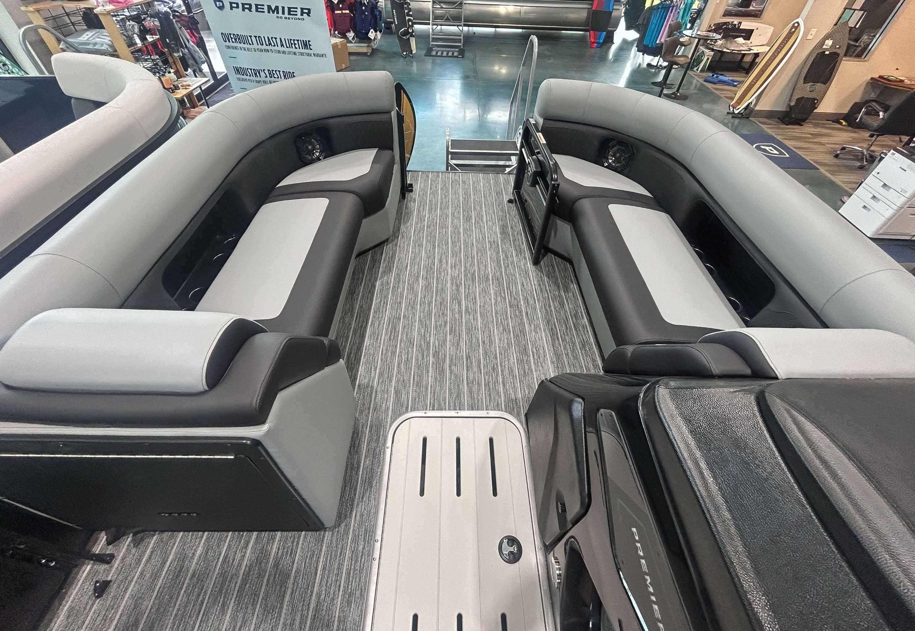 The 2026 Premier Sunsation 230 is a versatile, 23-foot pontoon boat known for blending luxury with high performance. Built on Premier's innovative PTX tritoon chassis, it offers a smooth, agile ride more akin to a runabout than a traditional pontoon, with enhanced stability and handling even in rougher water.