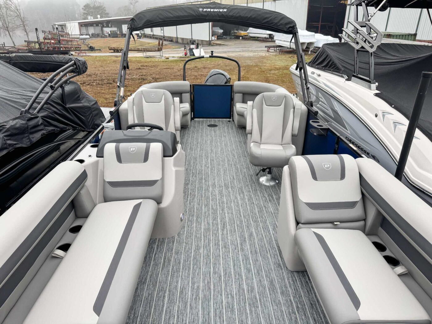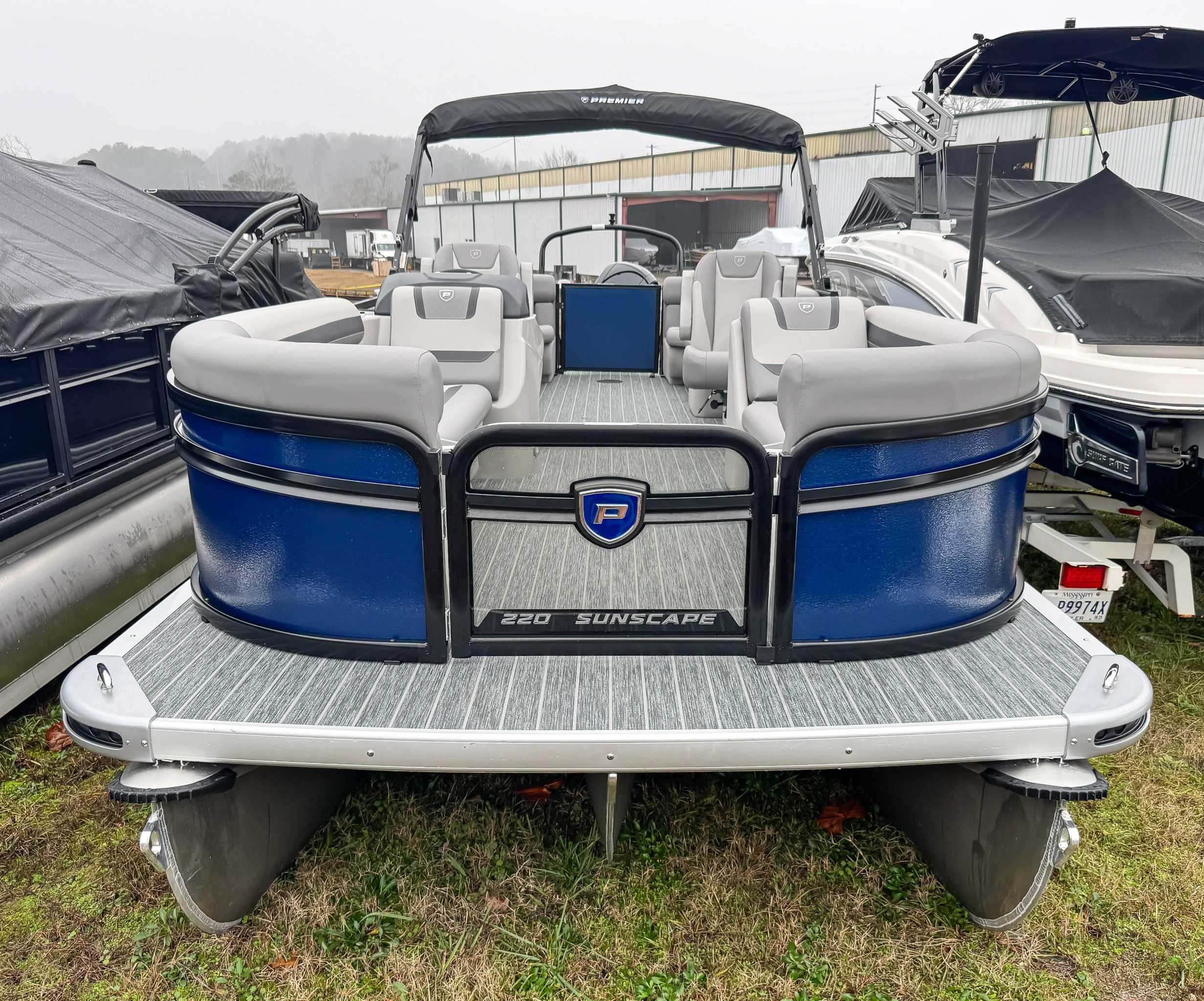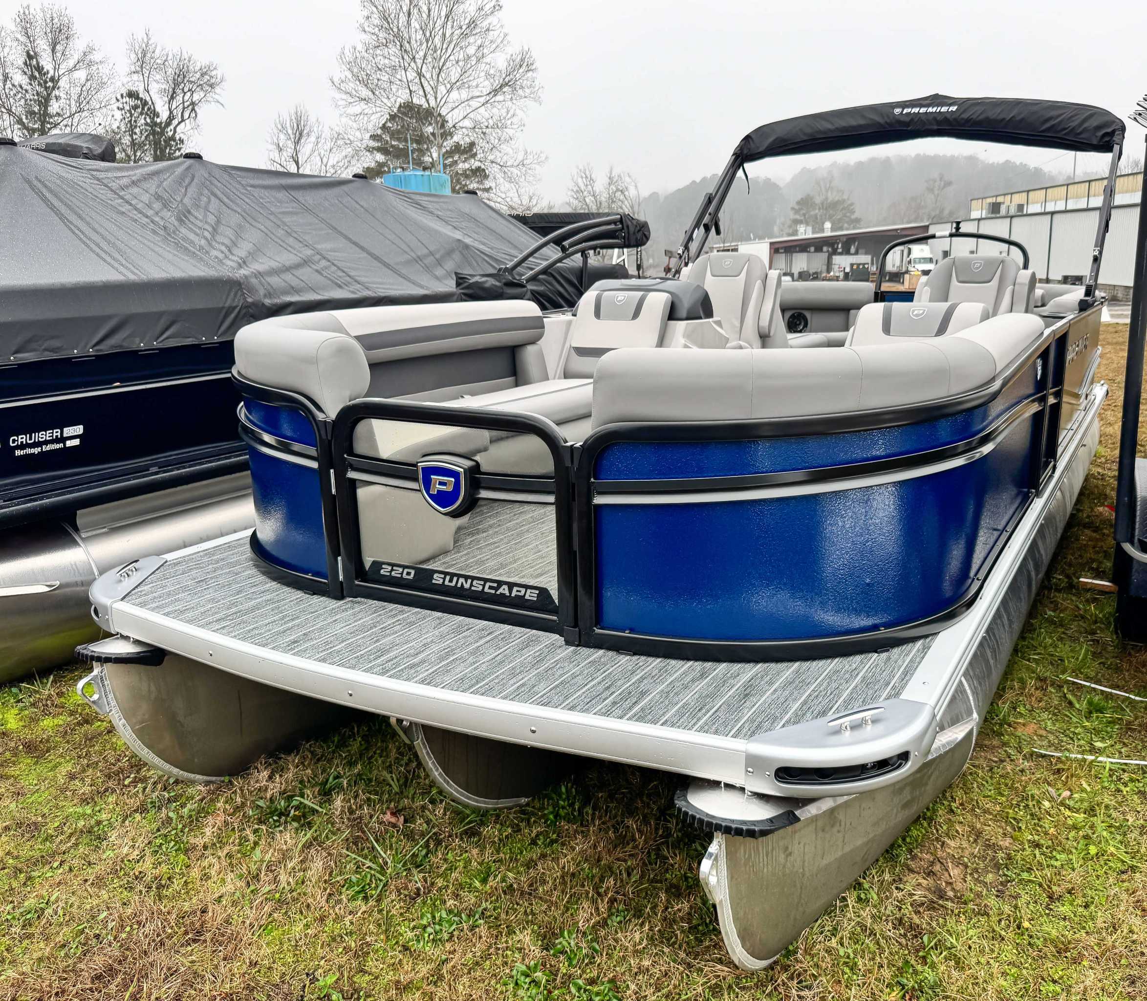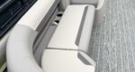 The 2026 Premier Sunscape 220 offers a compelling value proposition by including many sought-after amenities as standard features, breaking the traditional value mold. The pontoon is built with "built-for-battle" construction and luxurious Soft-Touch furniture designed for longevity and comfort. Key standard features include a 10' power bimini top for sun protection, a Wet Sounds audio system with four speakers for entertainment, and a telescoping four-step ladder for easy water access. These thoughtful in