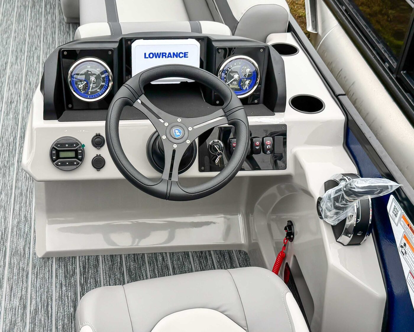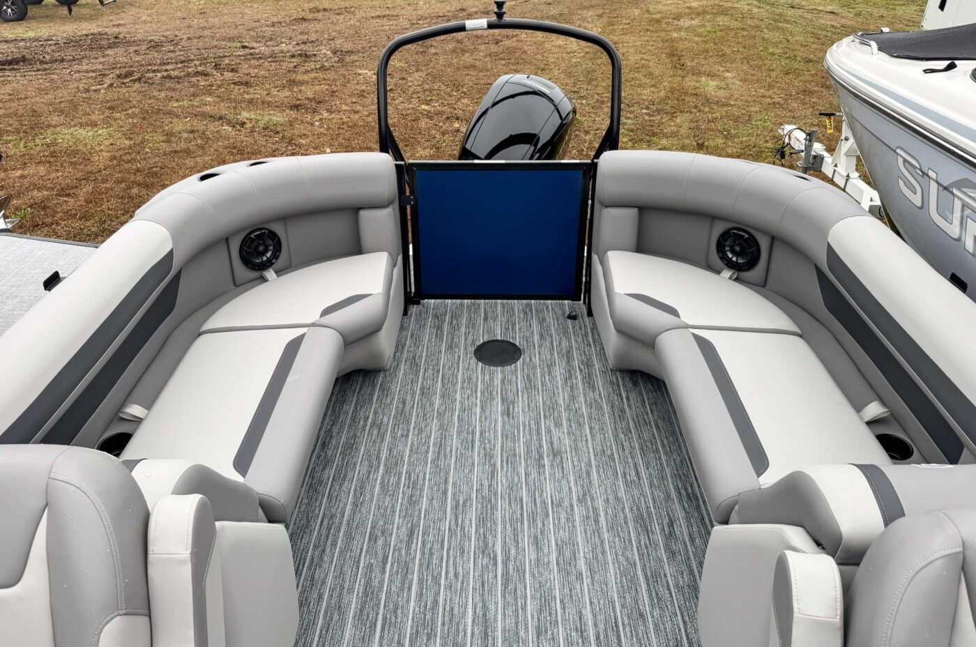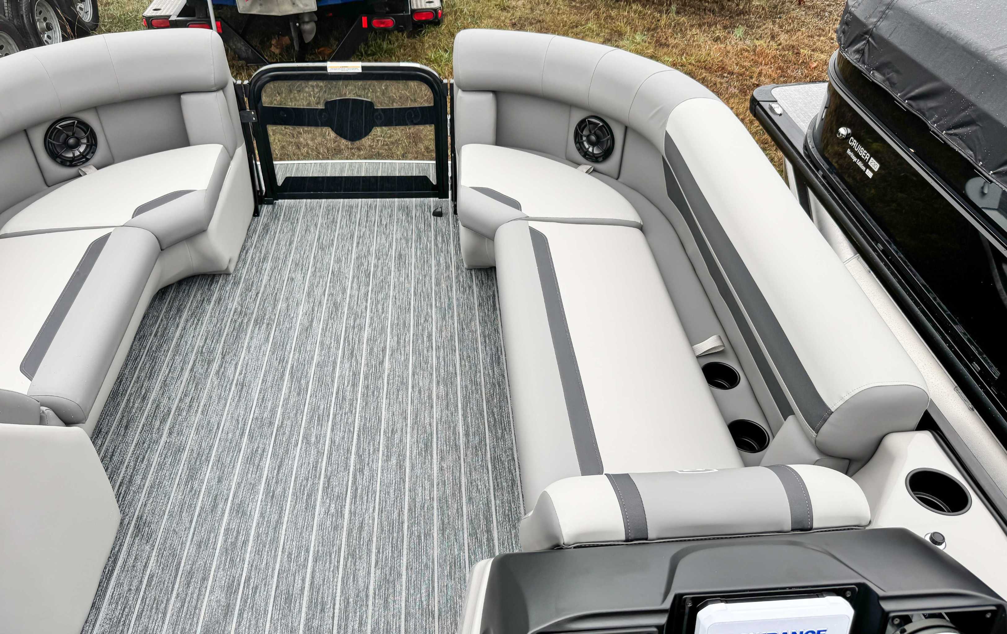 The 2026 Premier Sunscape 220 offers a compelling value proposition by including many sought-after amenities as standard features, breaking the traditional value mold. The pontoon is built with "built-for-battle" construction and luxurious Soft-Touch furniture designed for longevity and comfort. Key standard features include a 10' power bimini top for sun protection, a Wet Sounds audio system with four speakers for entertainment, and a telescoping four-step ladder for easy water access. These thoughtful in