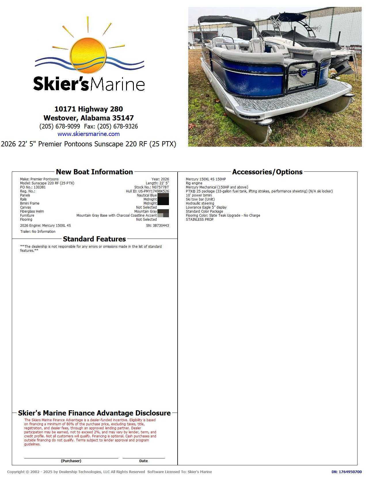 Skier's Marine is an award-winning ski boat, pontoon boat, and runabout sport boat dealer for brands like MasterCraft, Supra, Moomba, Chaparral, Harris, Premier, and Boston Whaler. We are not responsible for any pricing, options, specifications, or other listing errors on our site. Please contact us to confirm all details.