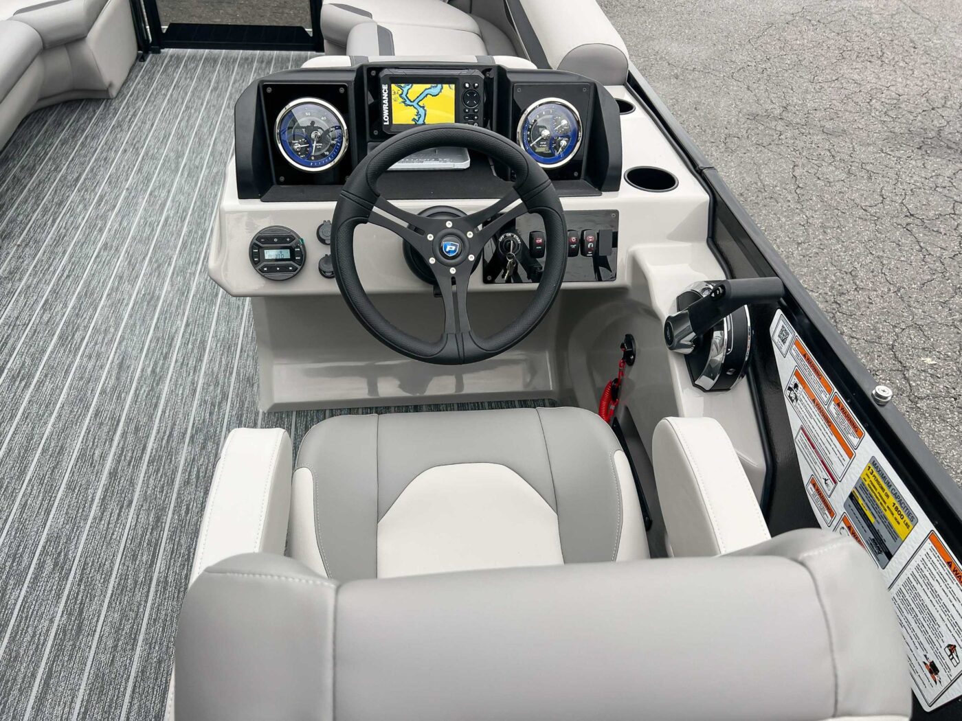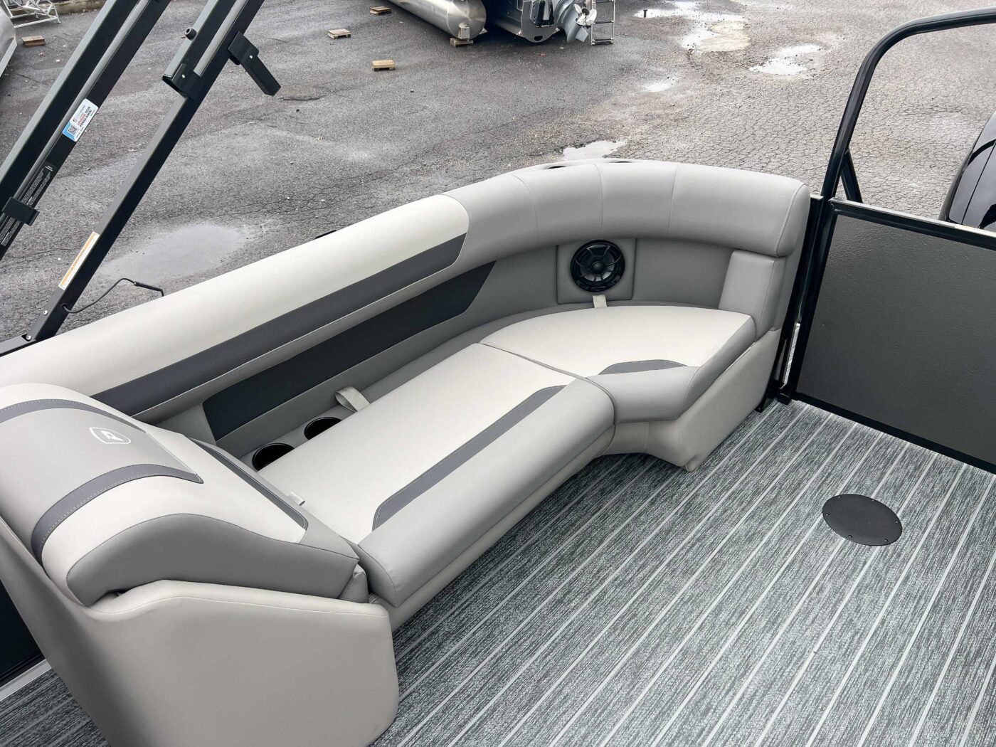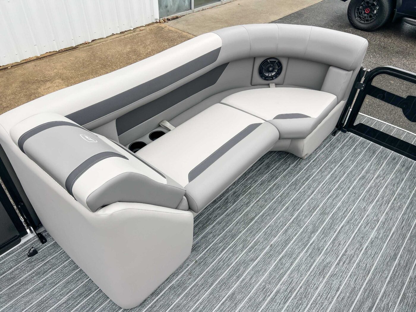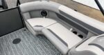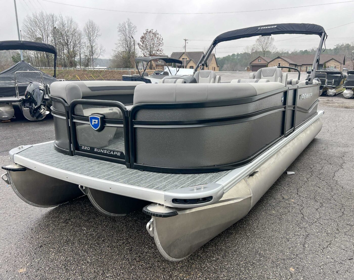 The 2026 Premier Sunscape 220 offers a compelling value proposition by including many sought-after amenities as standard features, breaking the traditional value mold. The pontoon is built with "built-for-battle" construction and luxurious Soft-Touch furniture designed for longevity and comfort. Key standard features include a 10' power bimini top for sun protection, a Wet Sounds audio system with four speakers for entertainment, and a telescoping four-step ladder for easy water access. These thoughtful in