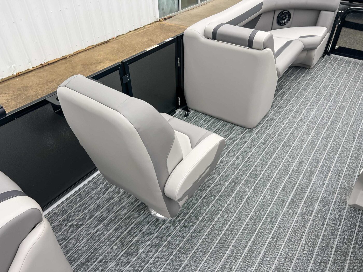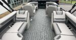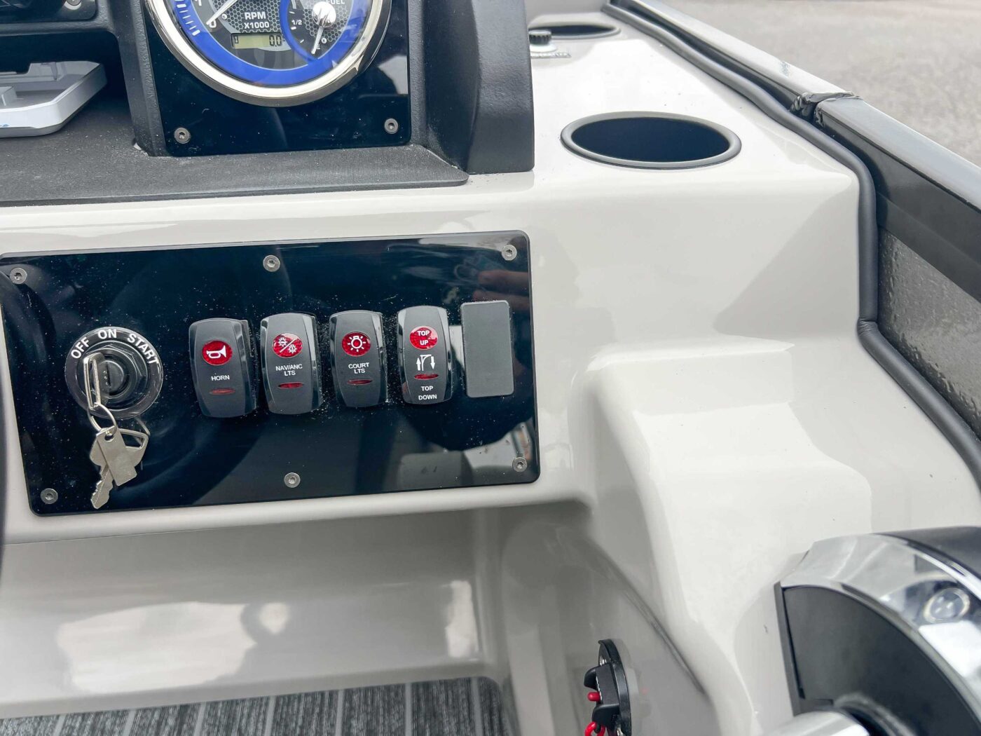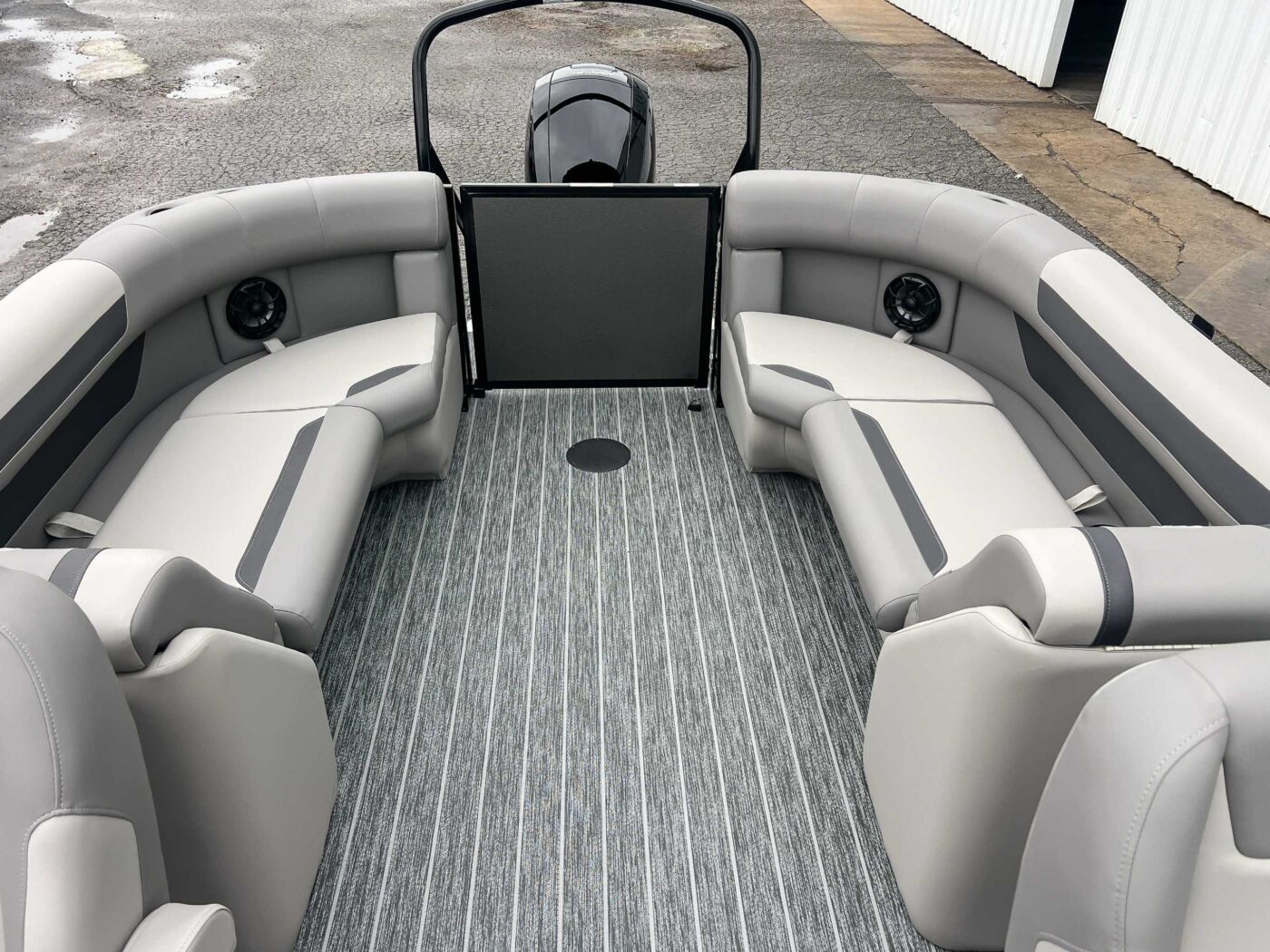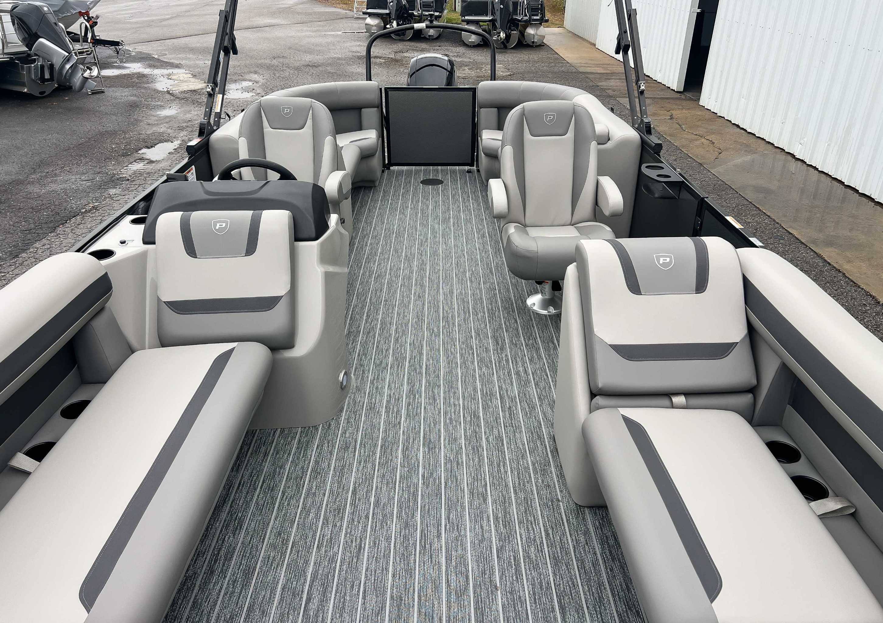 The 2026 Premier Sunscape 220 offers a compelling value proposition by including many sought-after amenities as standard features, breaking the traditional value mold. The pontoon is built with "built-for-battle" construction and luxurious Soft-Touch furniture designed for longevity and comfort. Key standard features include a 10' power bimini top for sun protection, a Wet Sounds audio system with four speakers for entertainment, and a telescoping four-step ladder for easy water access. These thoughtful in