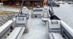 The 2026 Premier Sunscape 220 offers a compelling value proposition by including many sought-after amenities as standard features, breaking the traditional value mold. The pontoon is built with "built-for-battle" construction and luxurious Soft-Touch furniture designed for longevity and comfort. Key standard features include a 10' power bimini top for sun protection, a Wet Sounds audio system with four speakers for entertainment, and a telescoping four-step ladder for easy water access. These thoughtful in