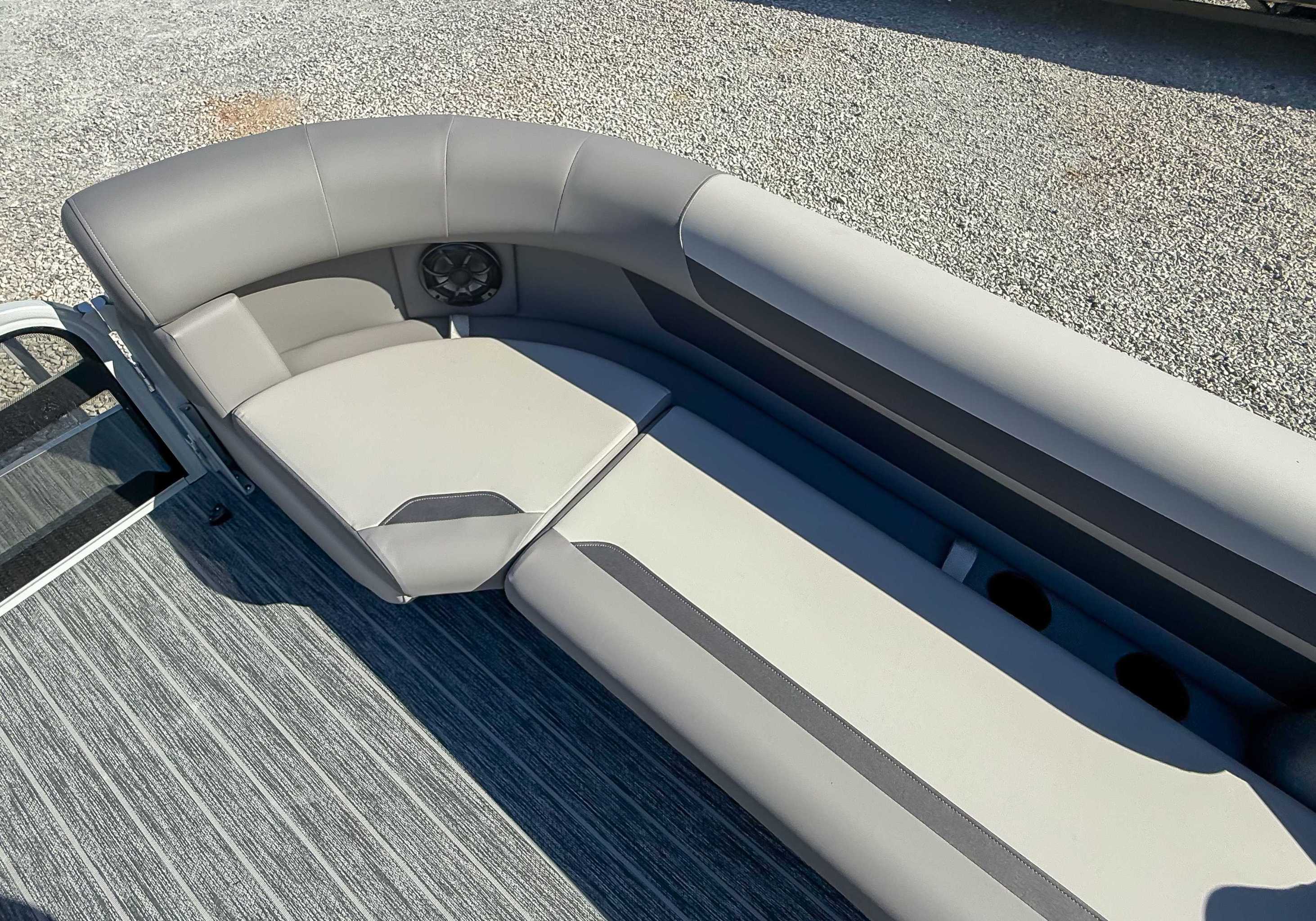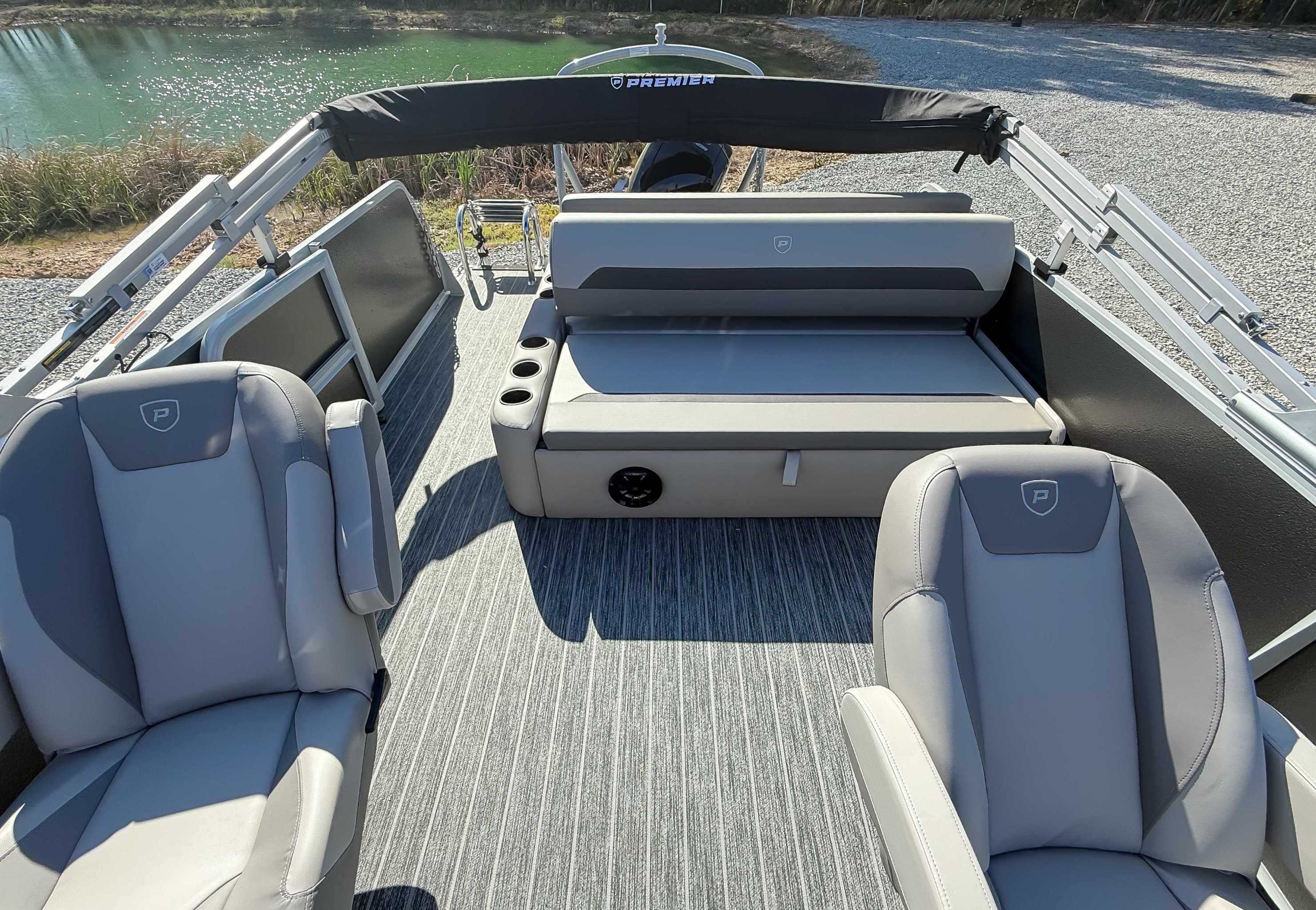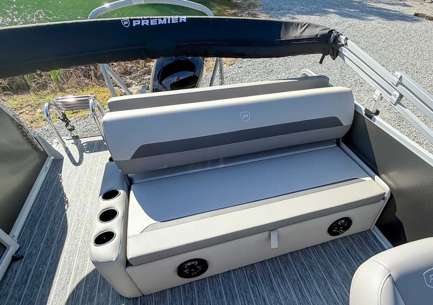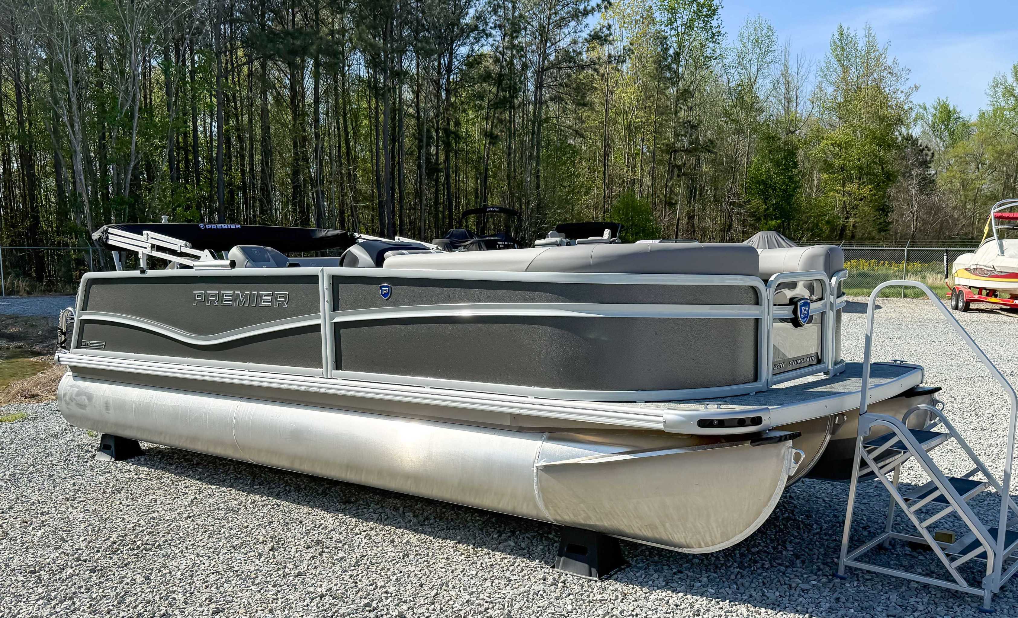 The 2026 Premier Sunscape 220 offers a compelling value proposition by including many sought-after amenities as standard features, breaking the traditional value mold. The pontoon is built with "built-for-battle" construction and luxurious Soft-Touch furniture designed for longevity and comfort. Key standard features include a 10' power bimini top for sun protection, a Wet Sounds audio system with four speakers for entertainment, and a telescoping four-step ladder for easy water access. These thoughtful in