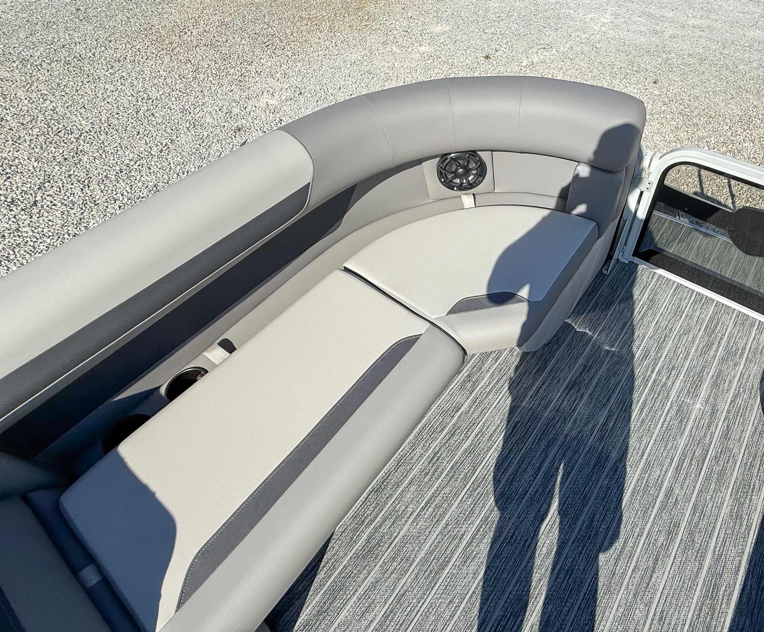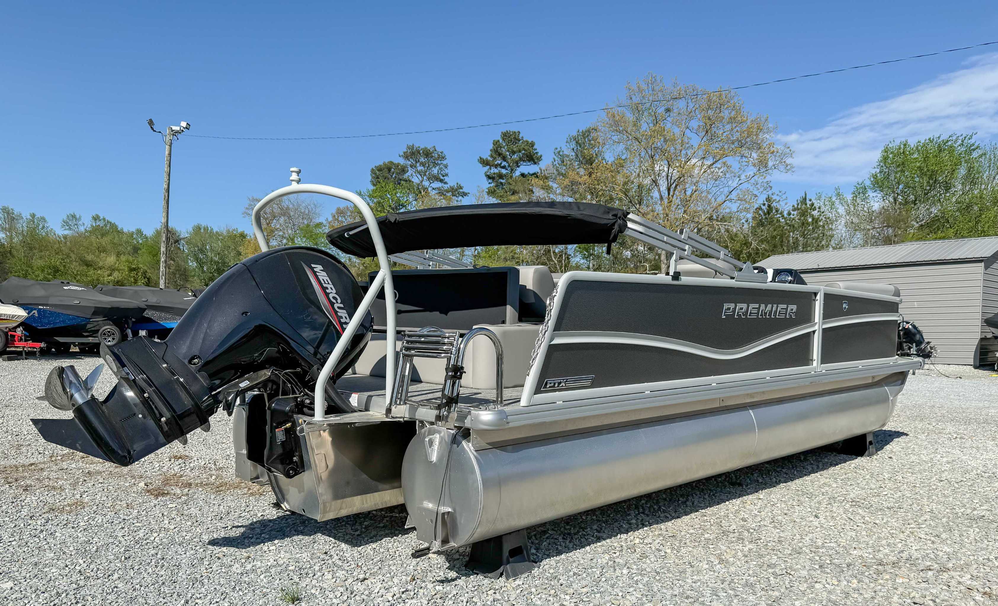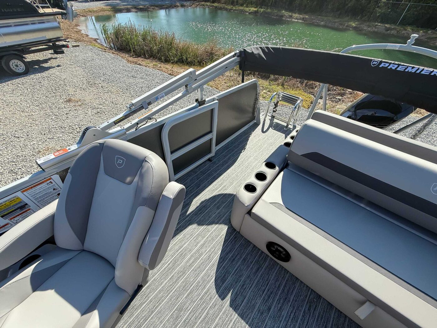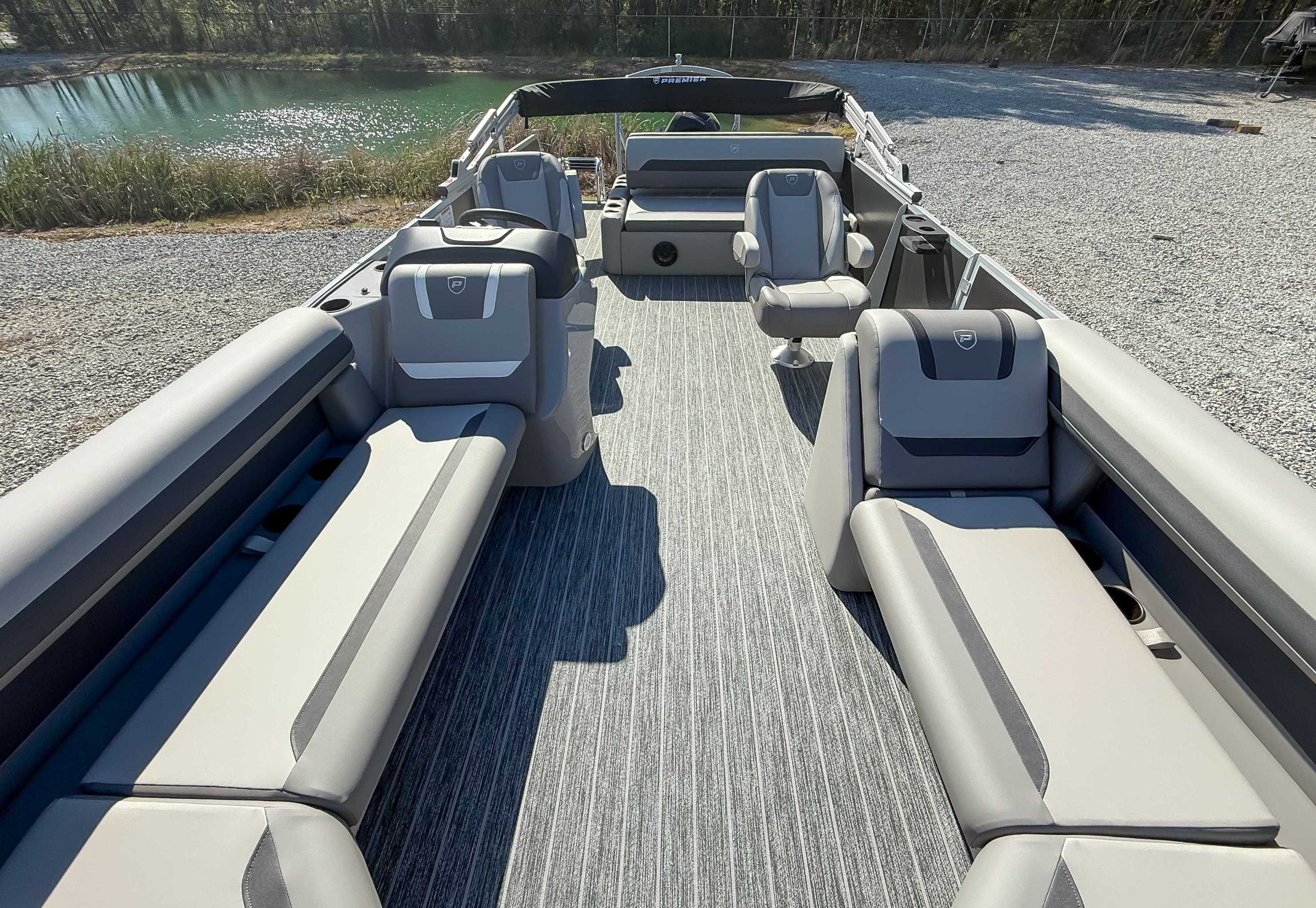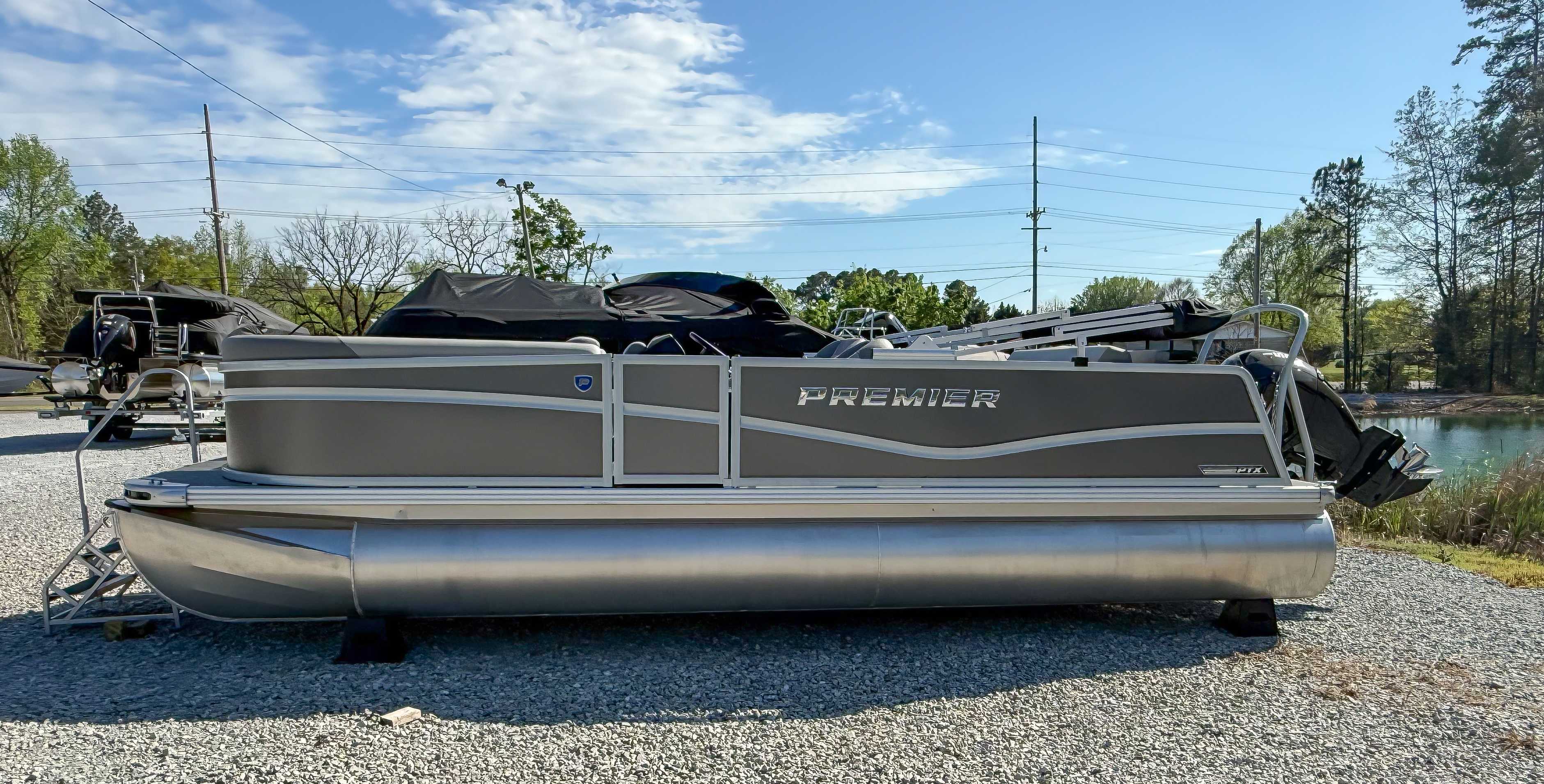 The 2026 Premier Sunscape 220 offers a compelling value proposition by including many sought-after amenities as standard features, breaking the traditional value mold. The pontoon is built with "built-for-battle" construction and luxurious Soft-Touch furniture designed for longevity and comfort. Key standard features include a 10' power bimini top for sun protection, a Wet Sounds audio system with four speakers for entertainment, and a telescoping four-step ladder for easy water access. These thoughtful in